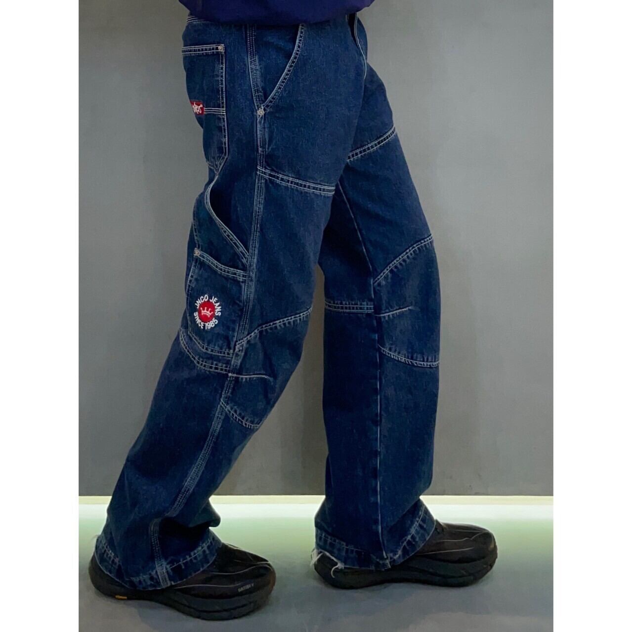 90s- JNCO jeans blue cotton motarcycle datail denim pants