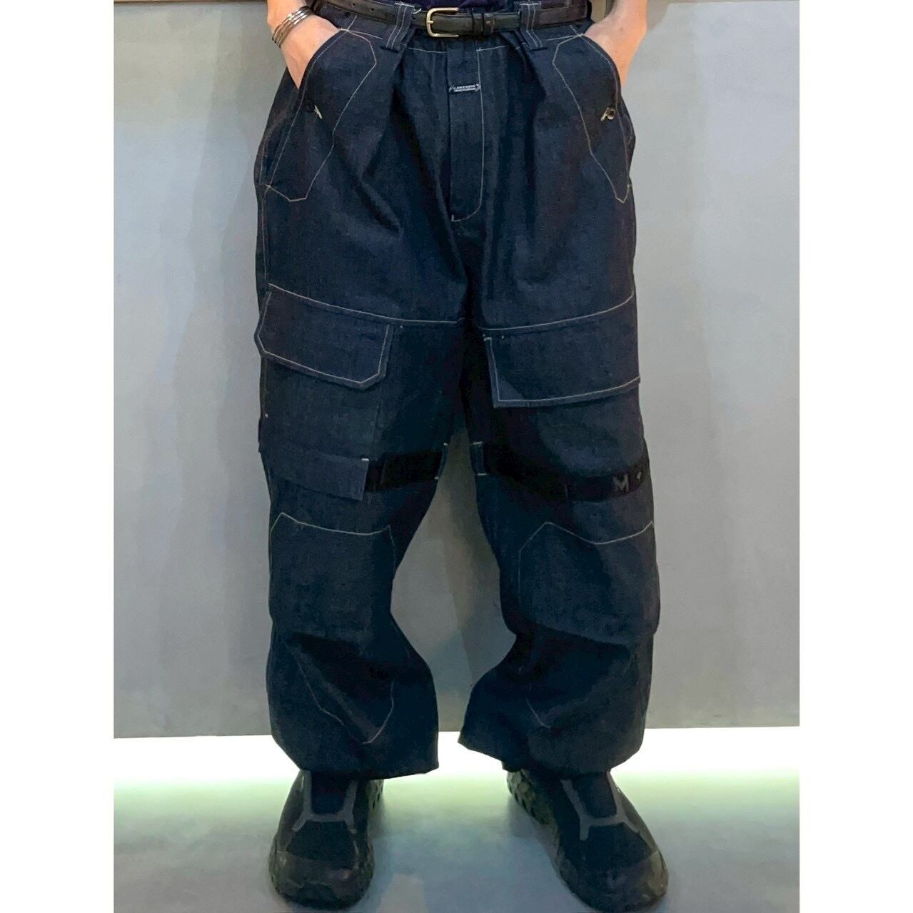 Marithé François Girbaud "shuttle denim pants" dark navy cotton denim velcro detail buggy silhouette cargo pants