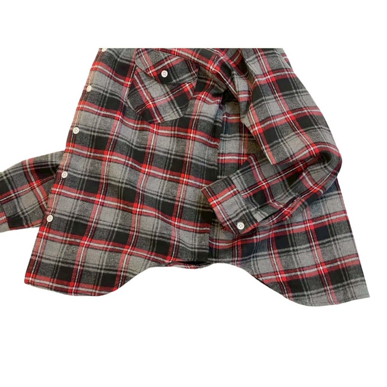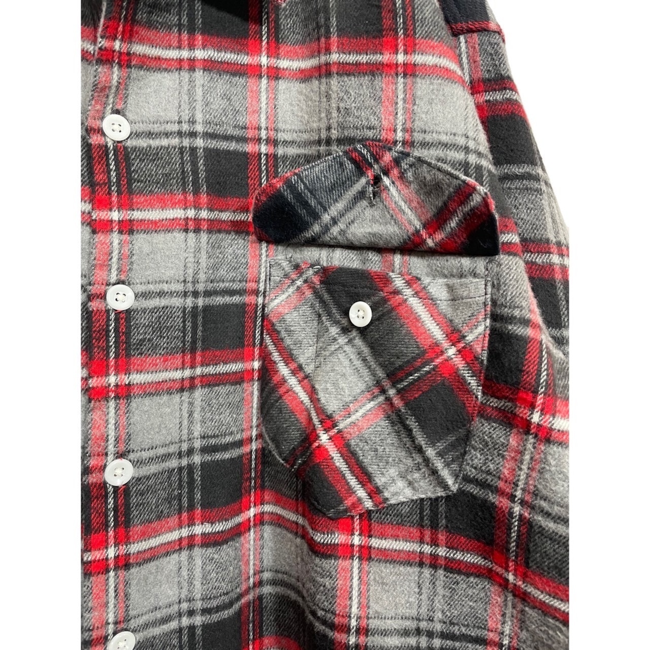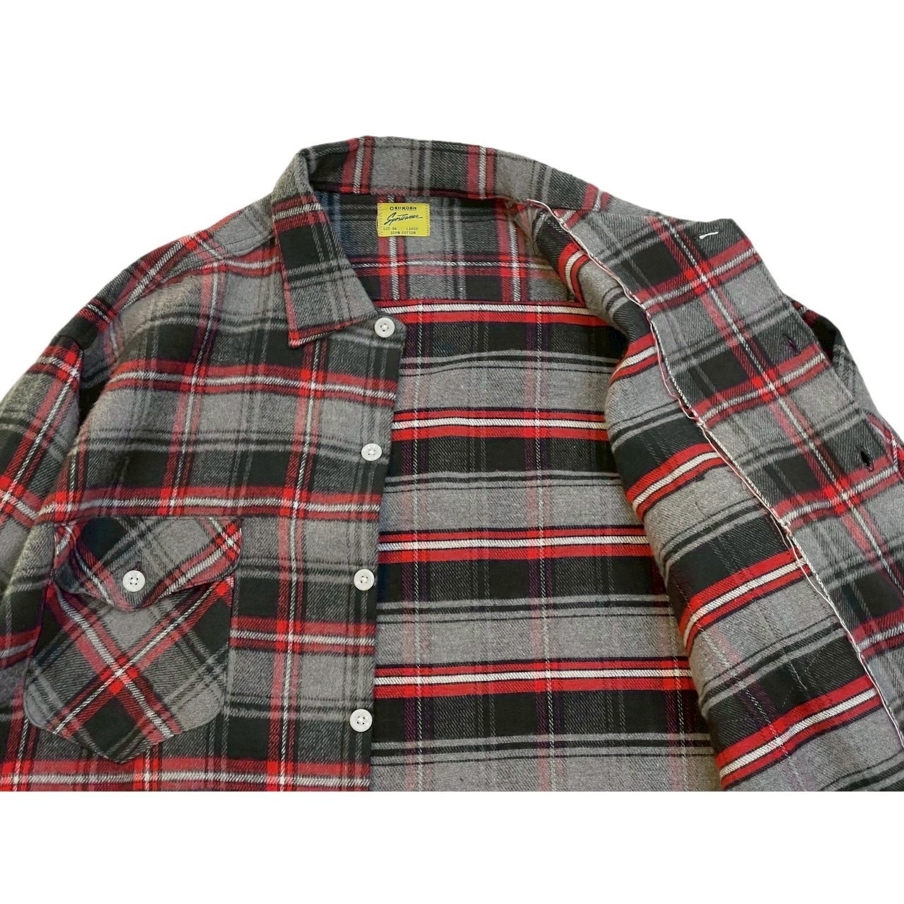 60s OshKosh black/grey/red plaid cotton heavy flannel open collar work shirt