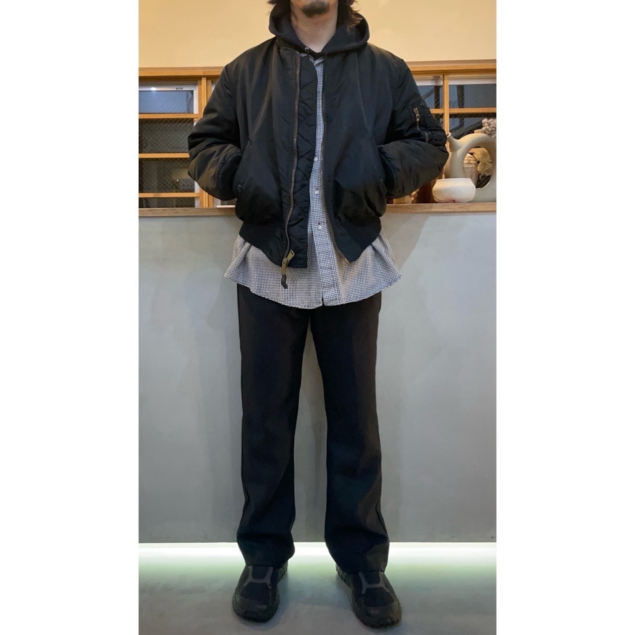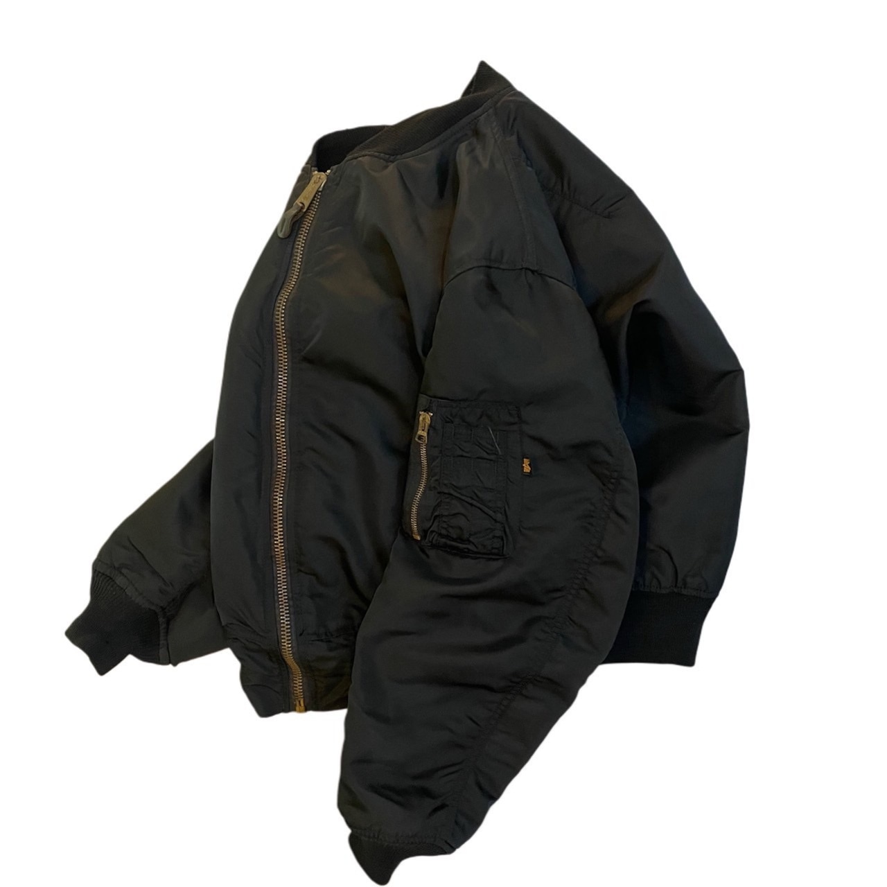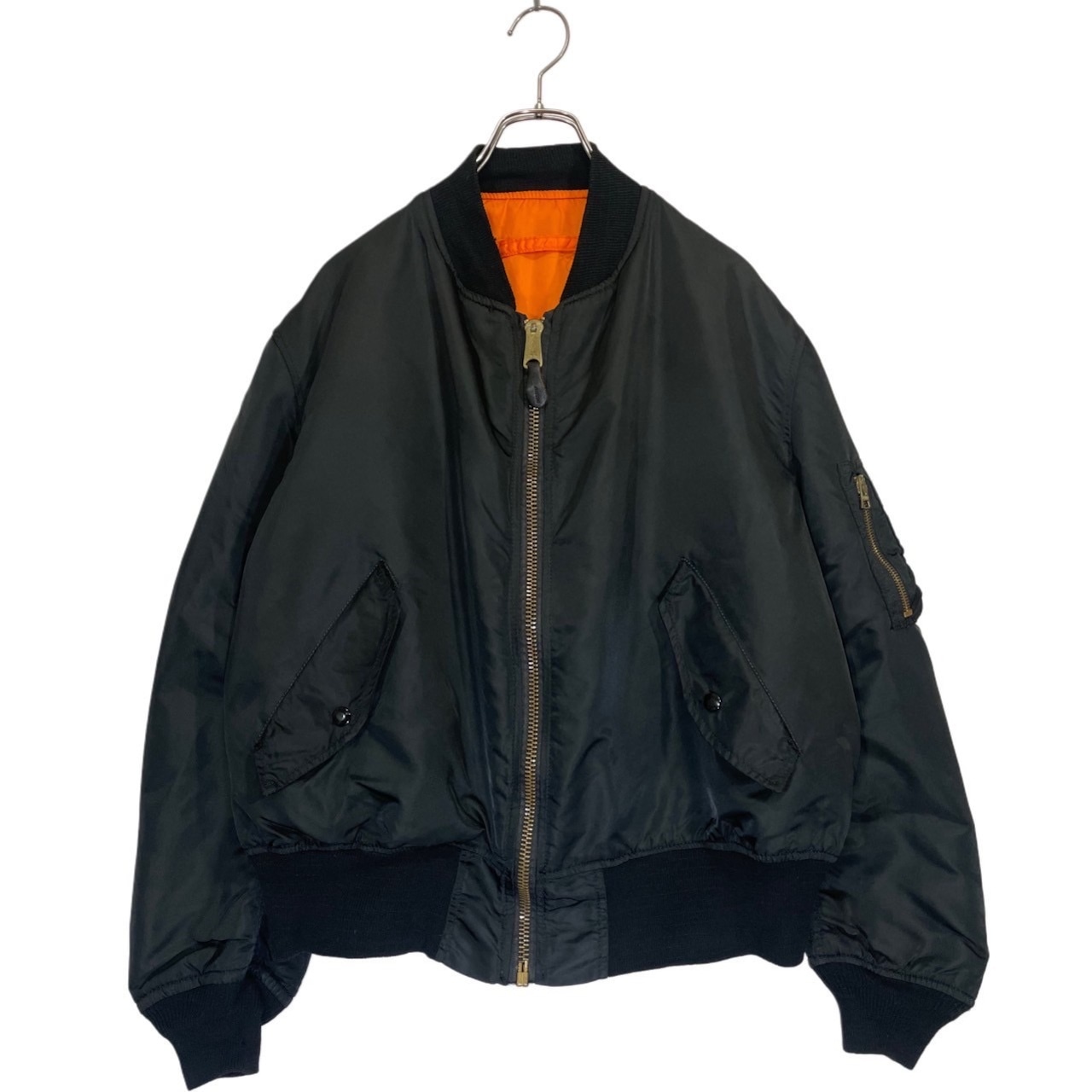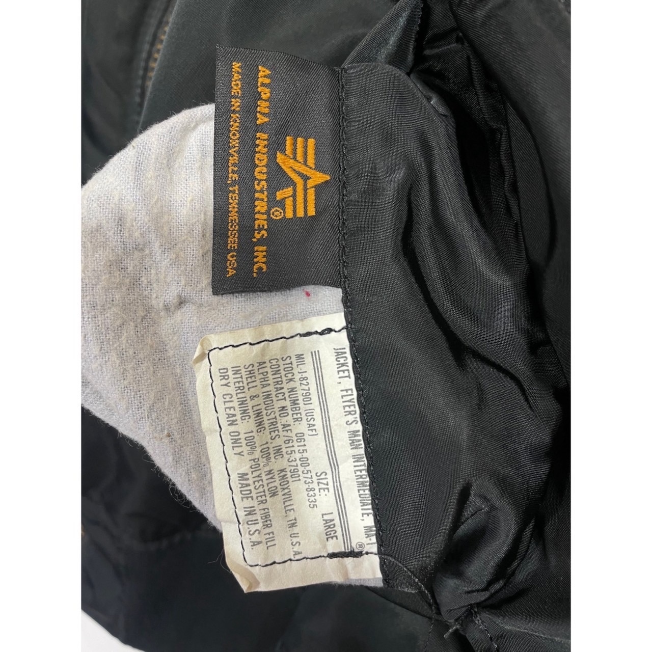 90s ALPHA INDUSTRIES "JACKET FLYER'S MAN INTERMADIATE MA-1" black nylon padding zip up flight jacket