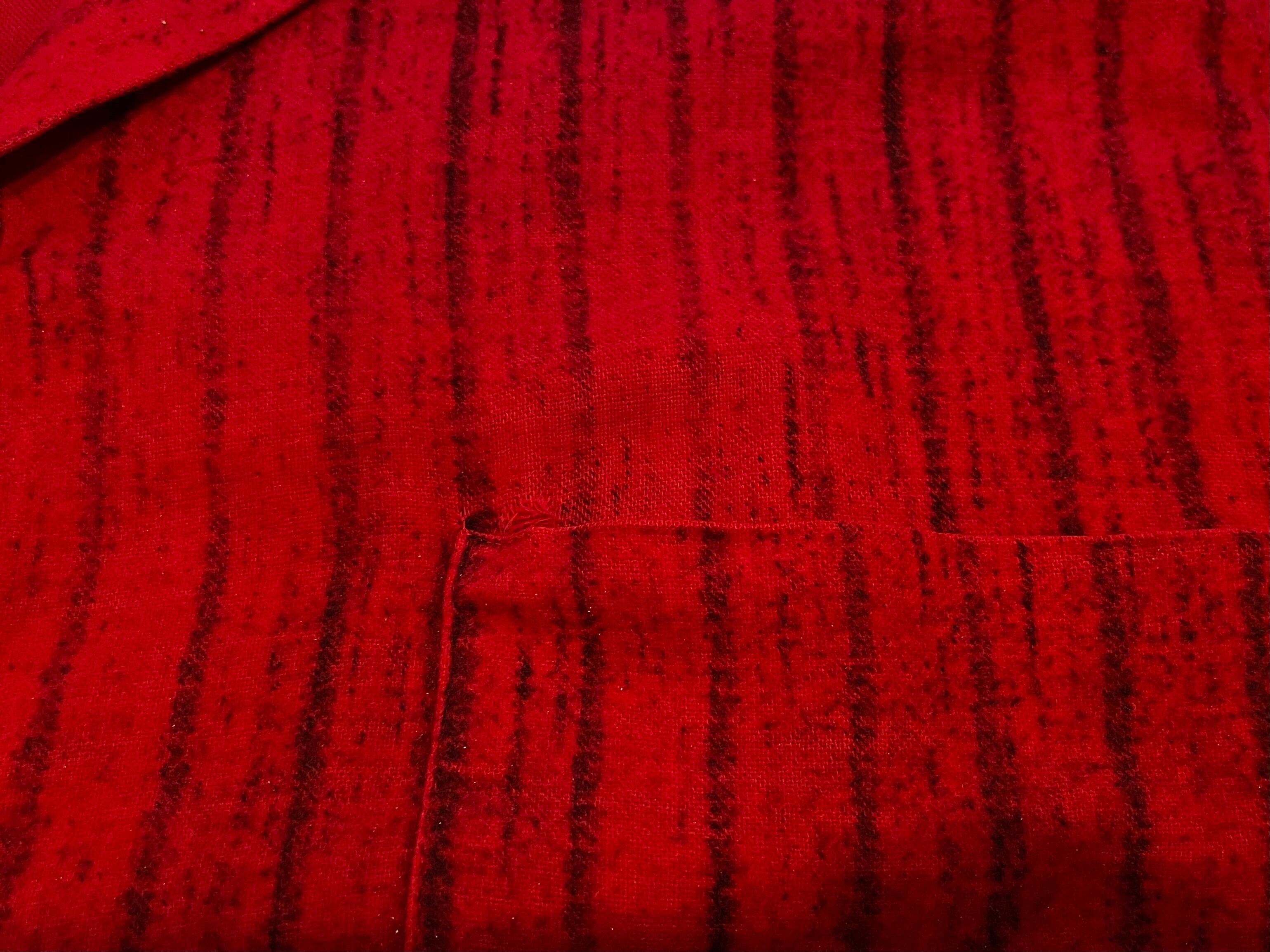 綺麗な赤にかすれたストライプがプリントされたコットンフランネル素材