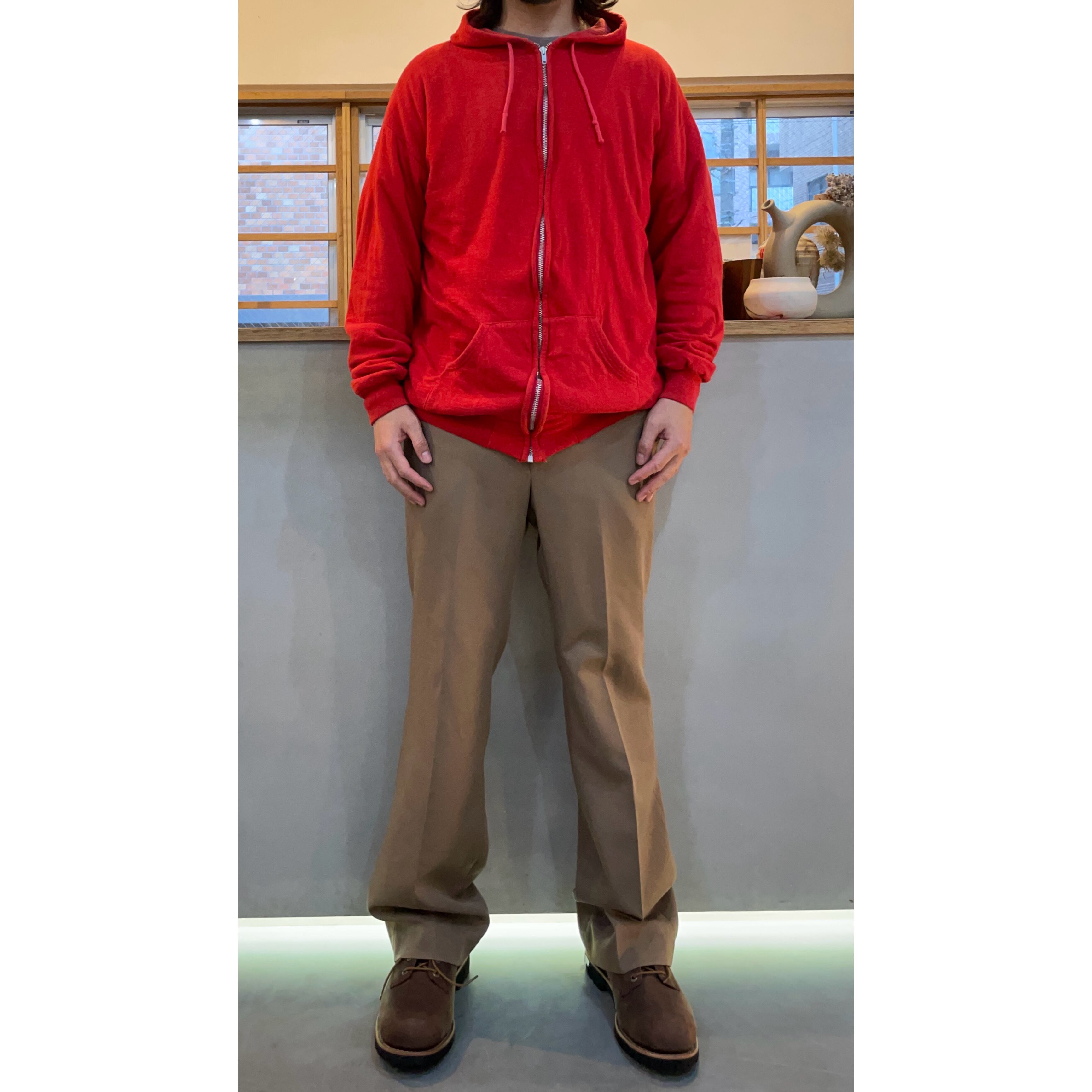 60s-70s faded red cotton jersey fabric/cotton thermal double face zip uq hooded parka