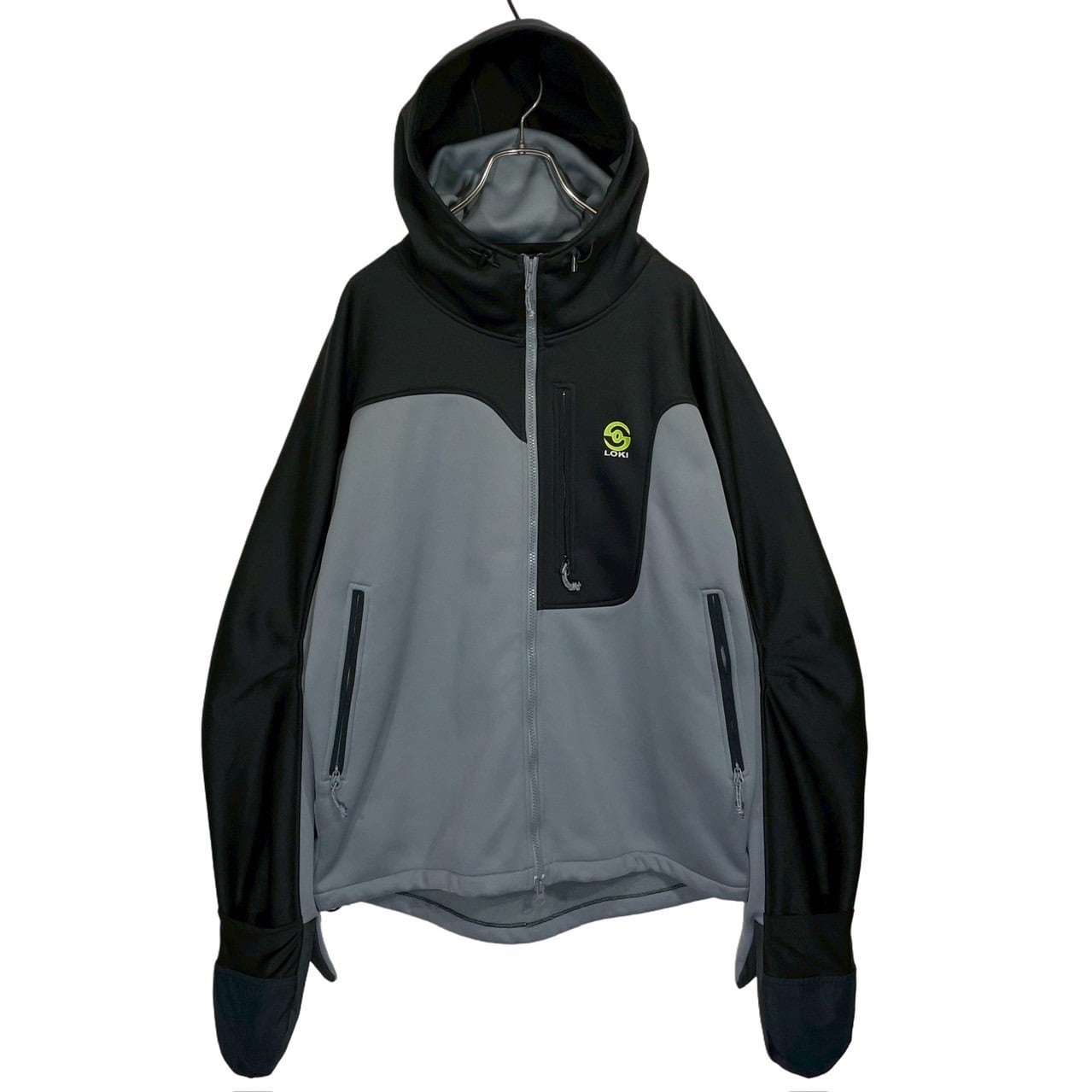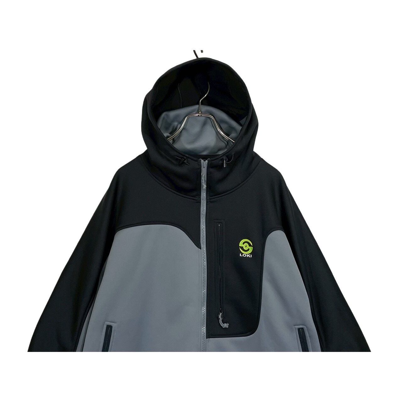 ロキブラックグレーソフトシェルジップアップフーデットジャケット