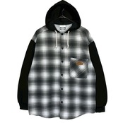 80sオンブレチェック切り替えスウェットフーデットシャツ