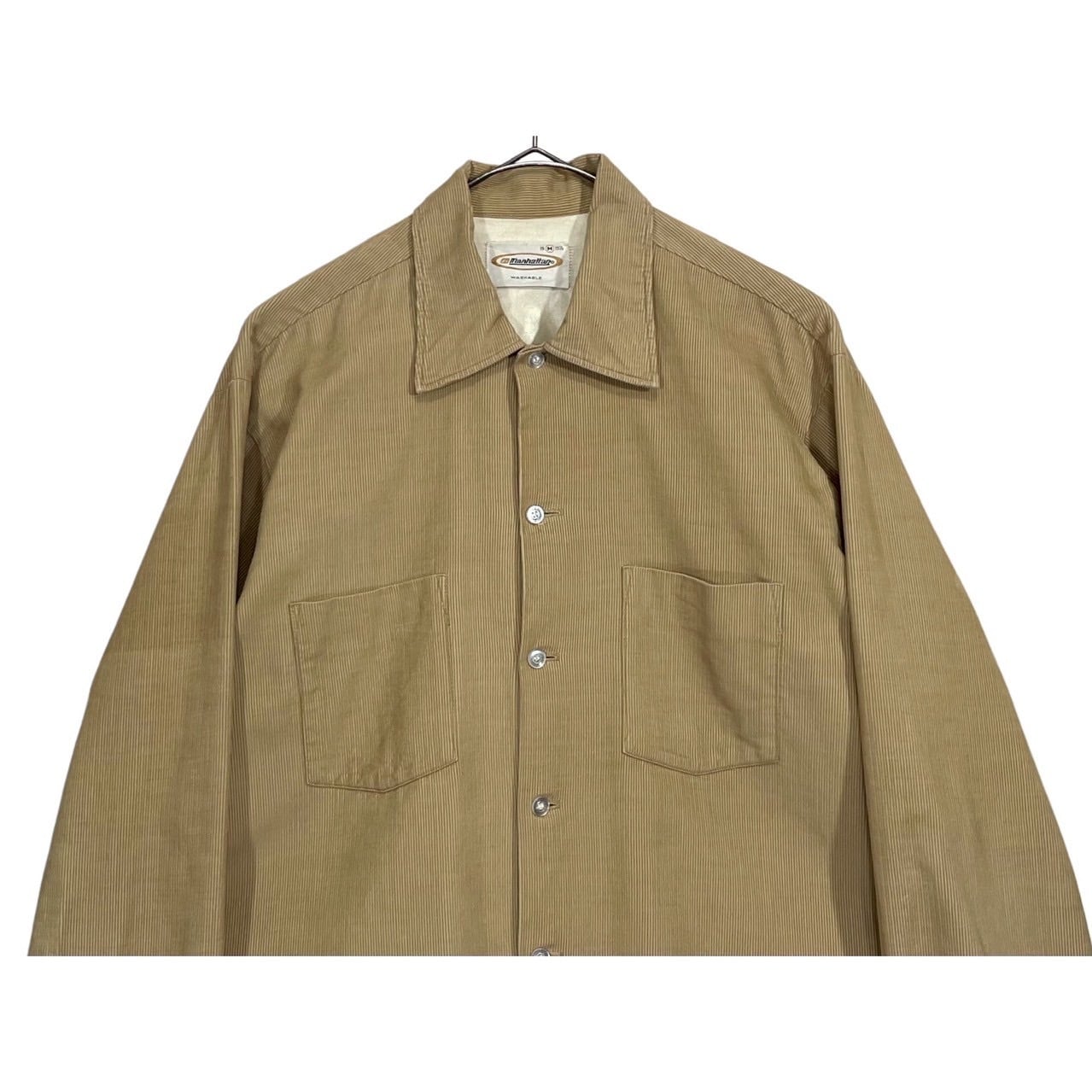 60s Manhattan beige cotton cords box silhouette open collar shirt