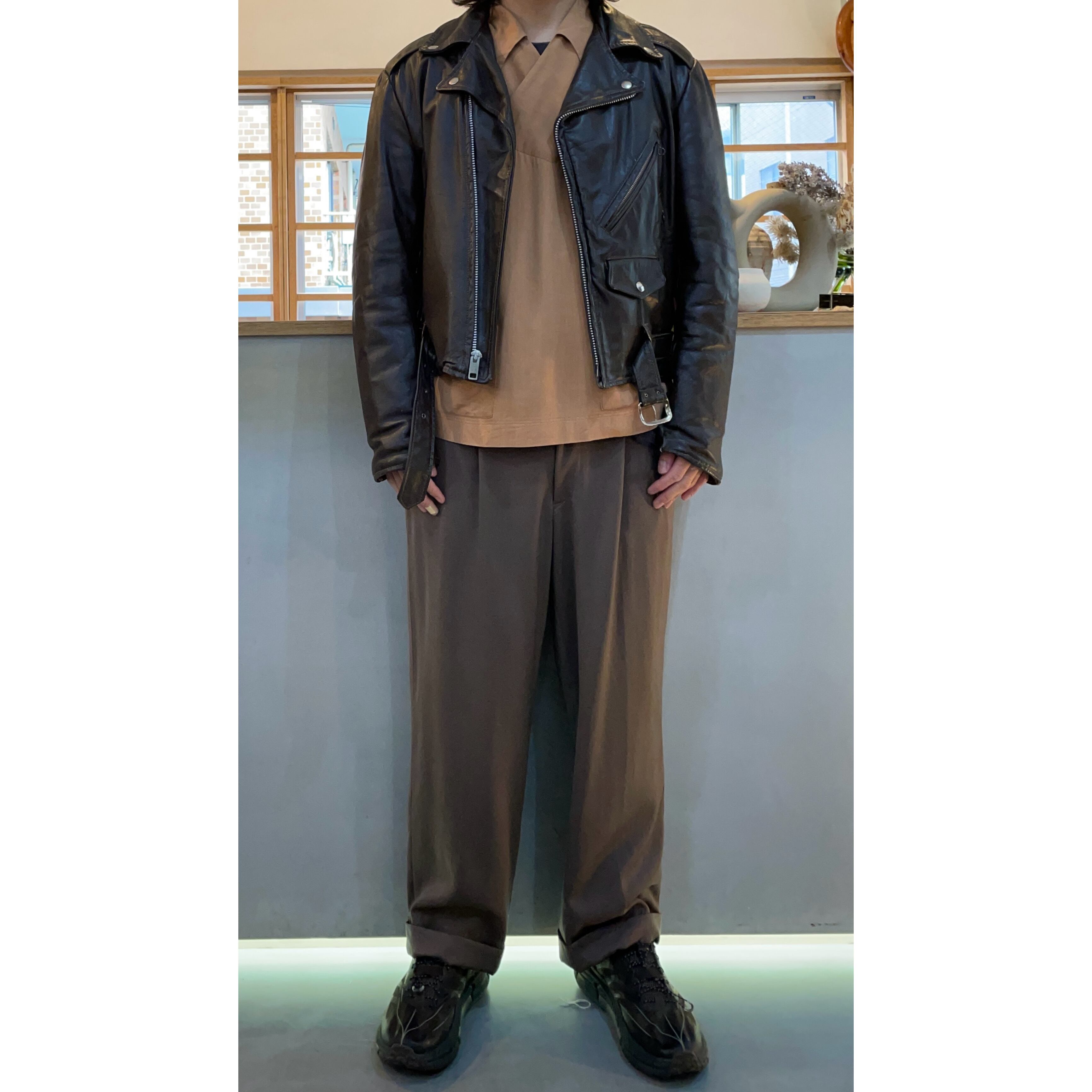 70s ブラウンレザーダブルライダースジャケット