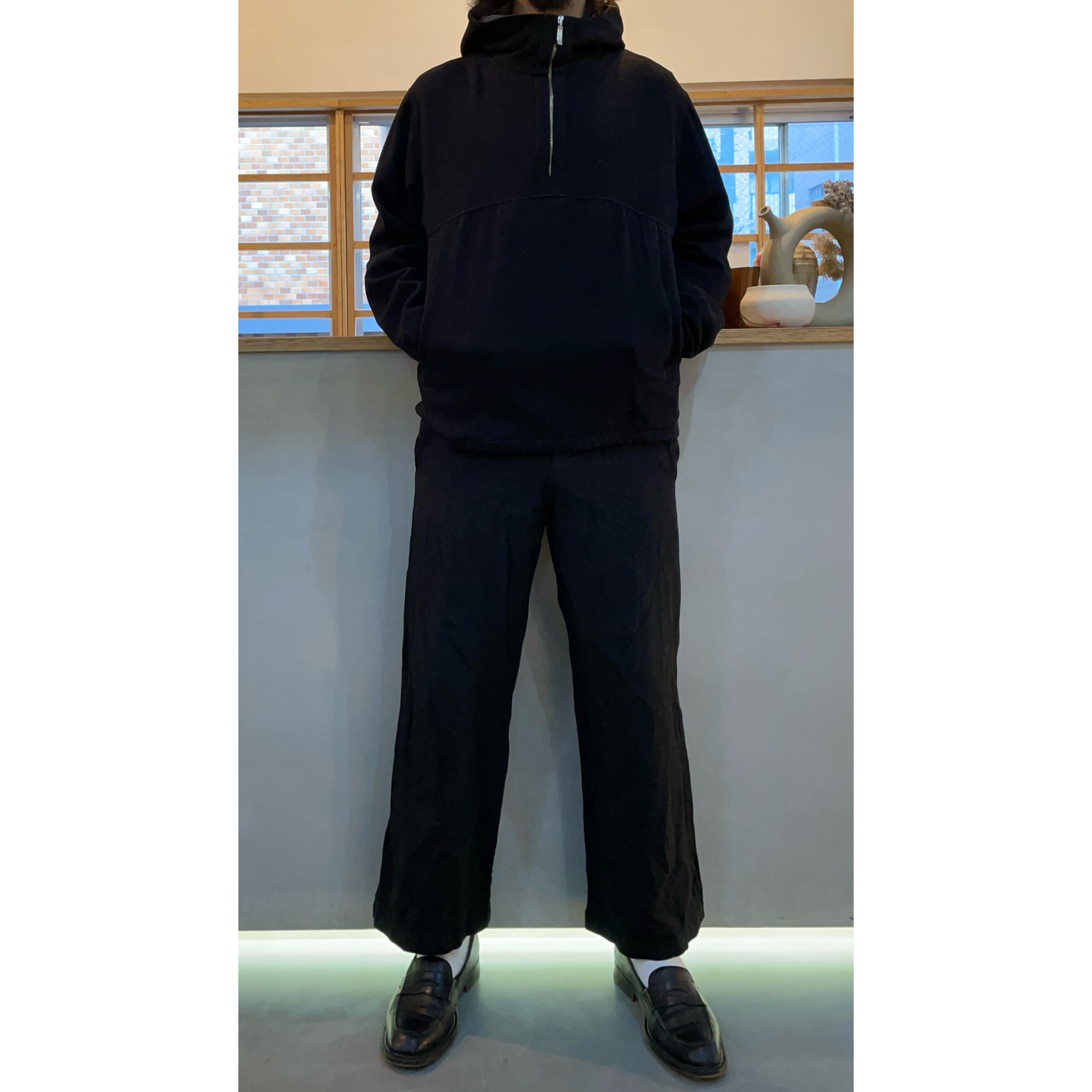 ブラックウールナイロンカシミヤソフトメルトン素材でアノラック型