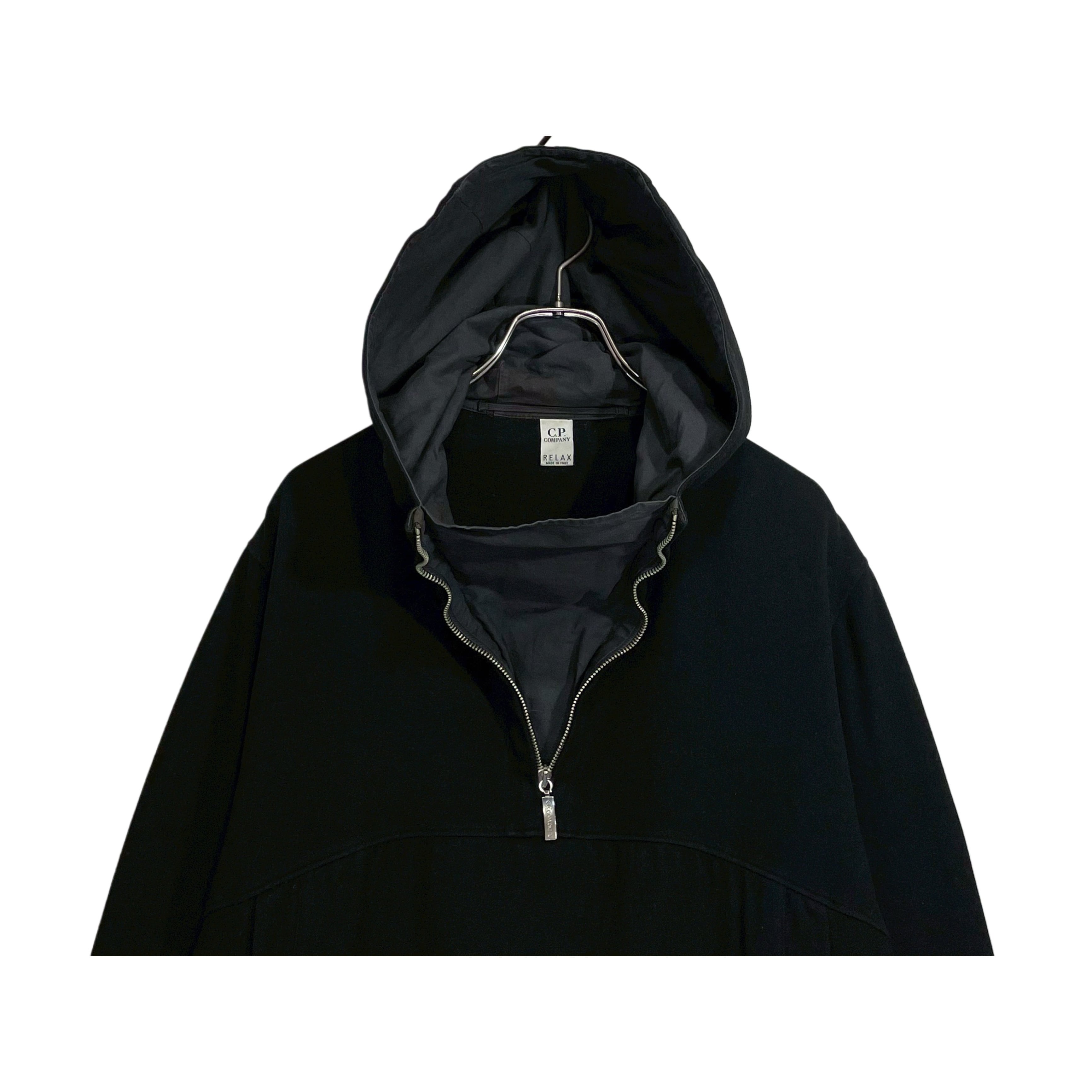 00s C.P. COMPANY RELAX black woolxnylonxcashmere blend soft melton half zip hooded anolak pullover
