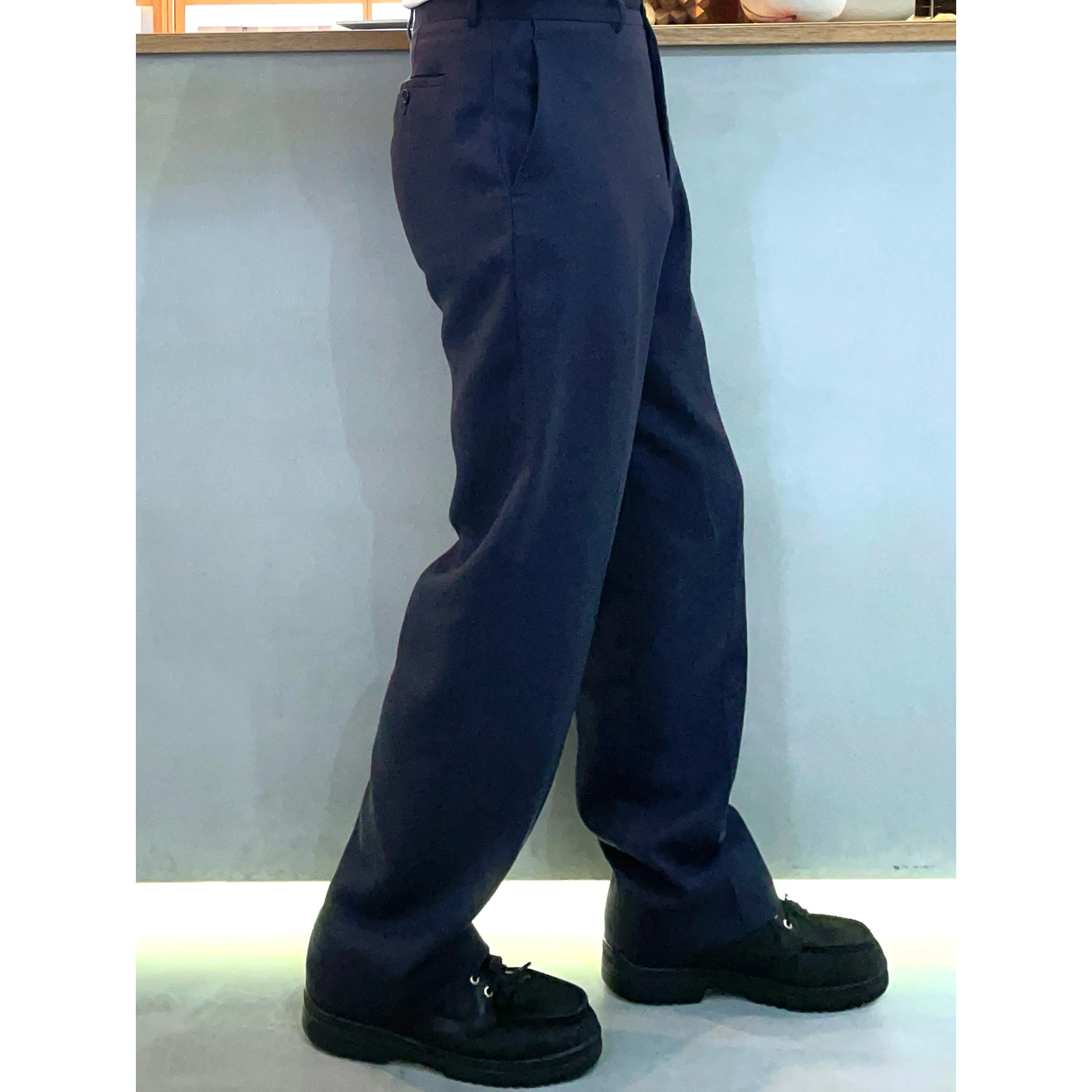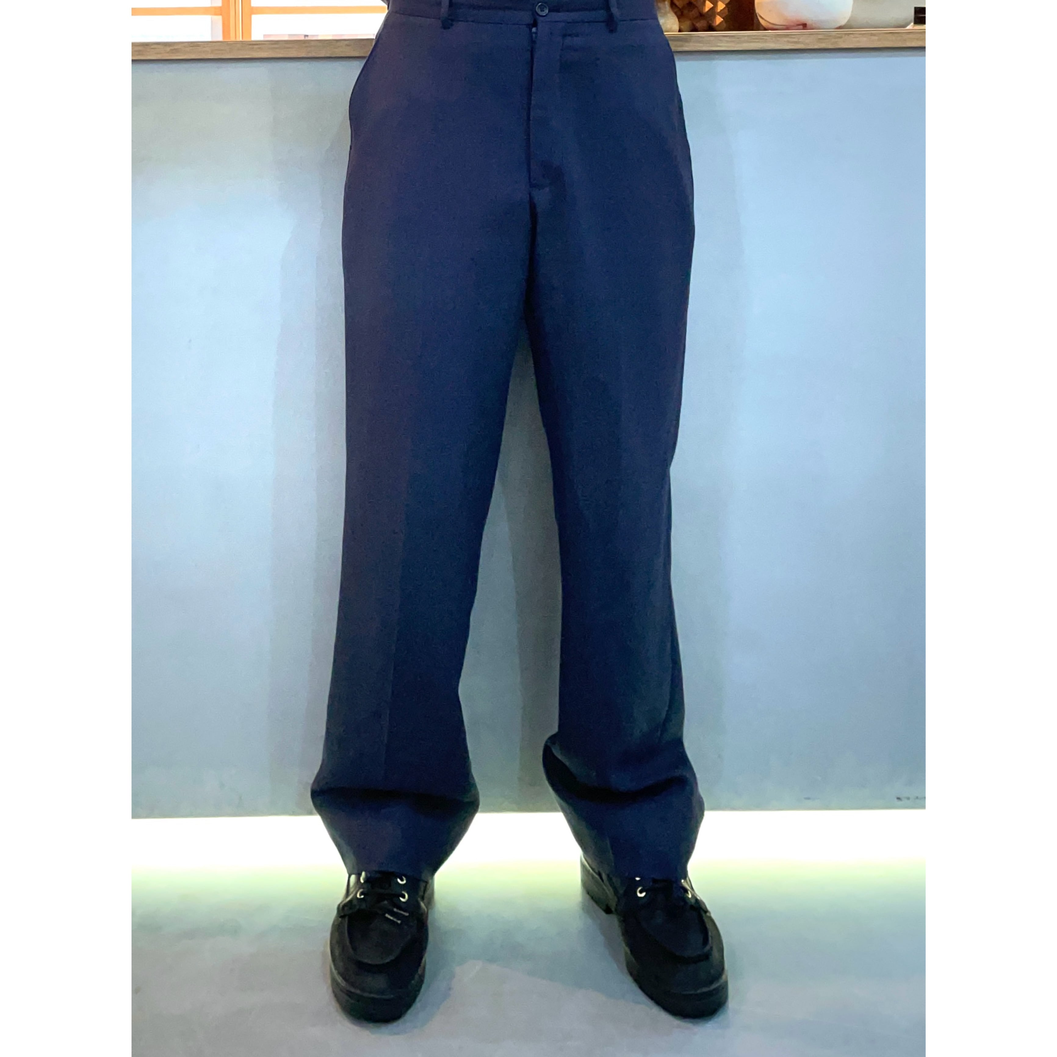 アルマーニネイビールーズストレートスラックス
