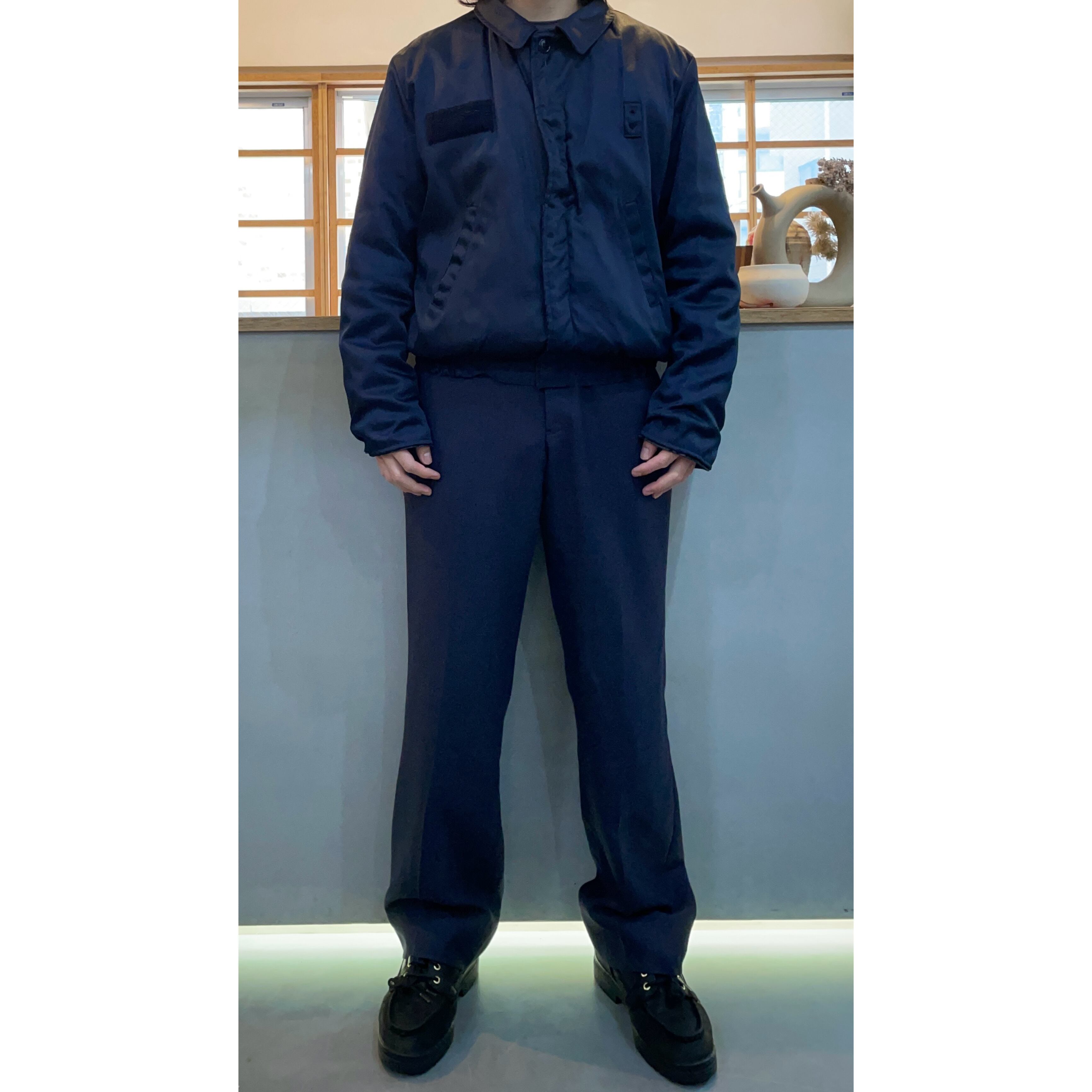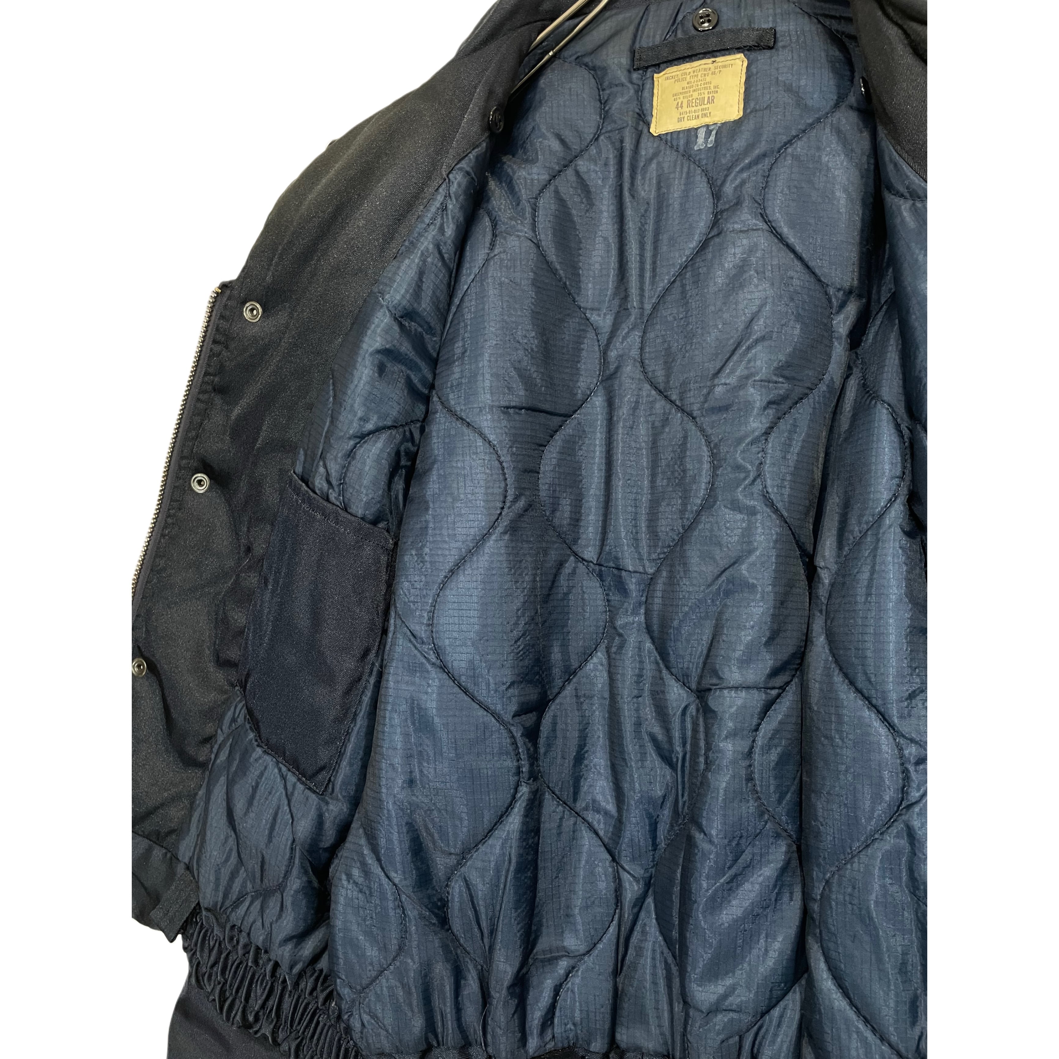 70s US military "JACKET, COLD WEATHER, SECURITY POLICE TYPE CWU 46/P" navy nylonxrayon quilted liningshort length zip up jacket
