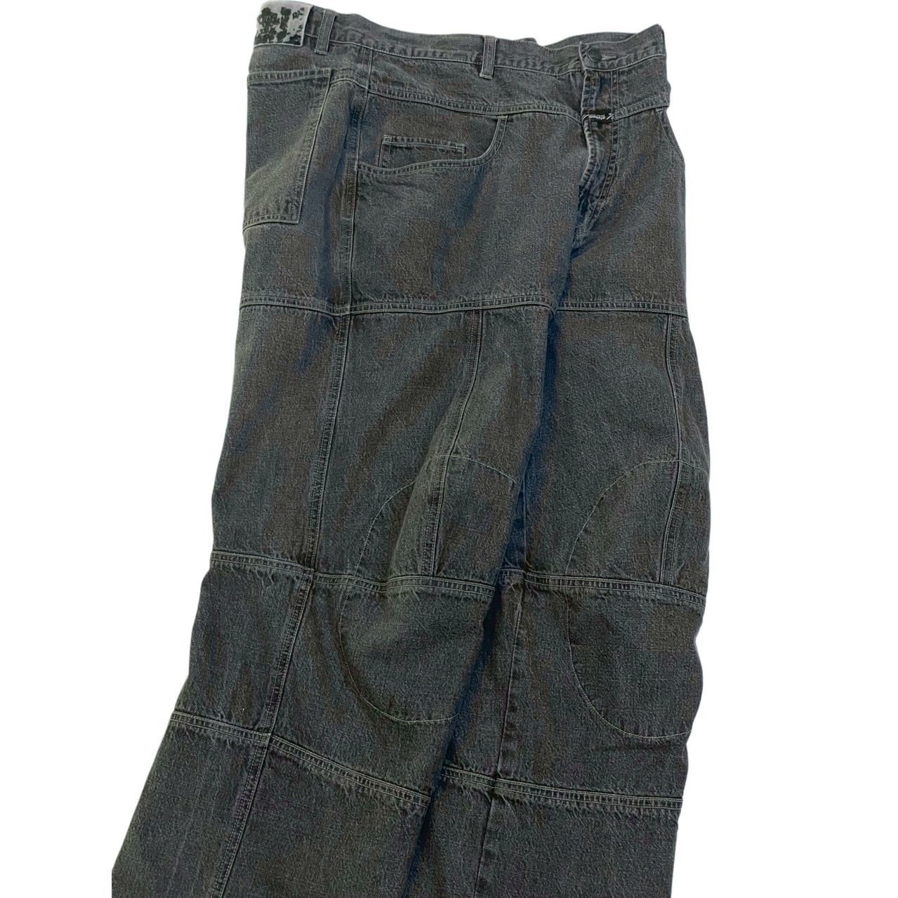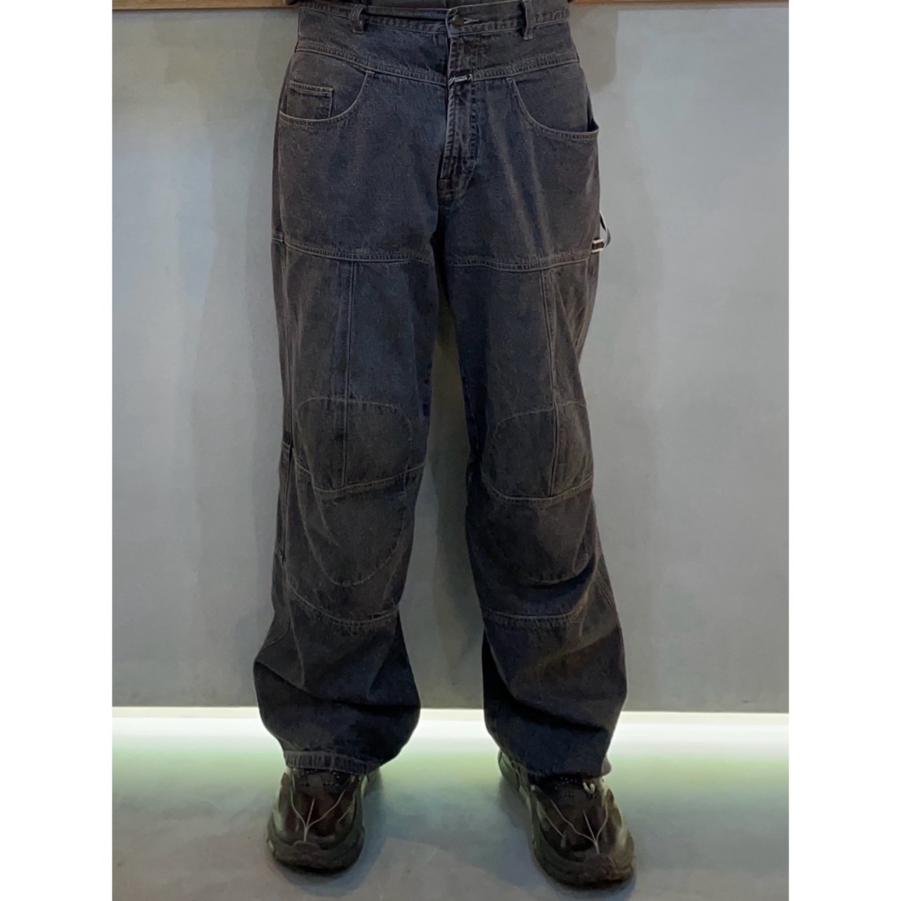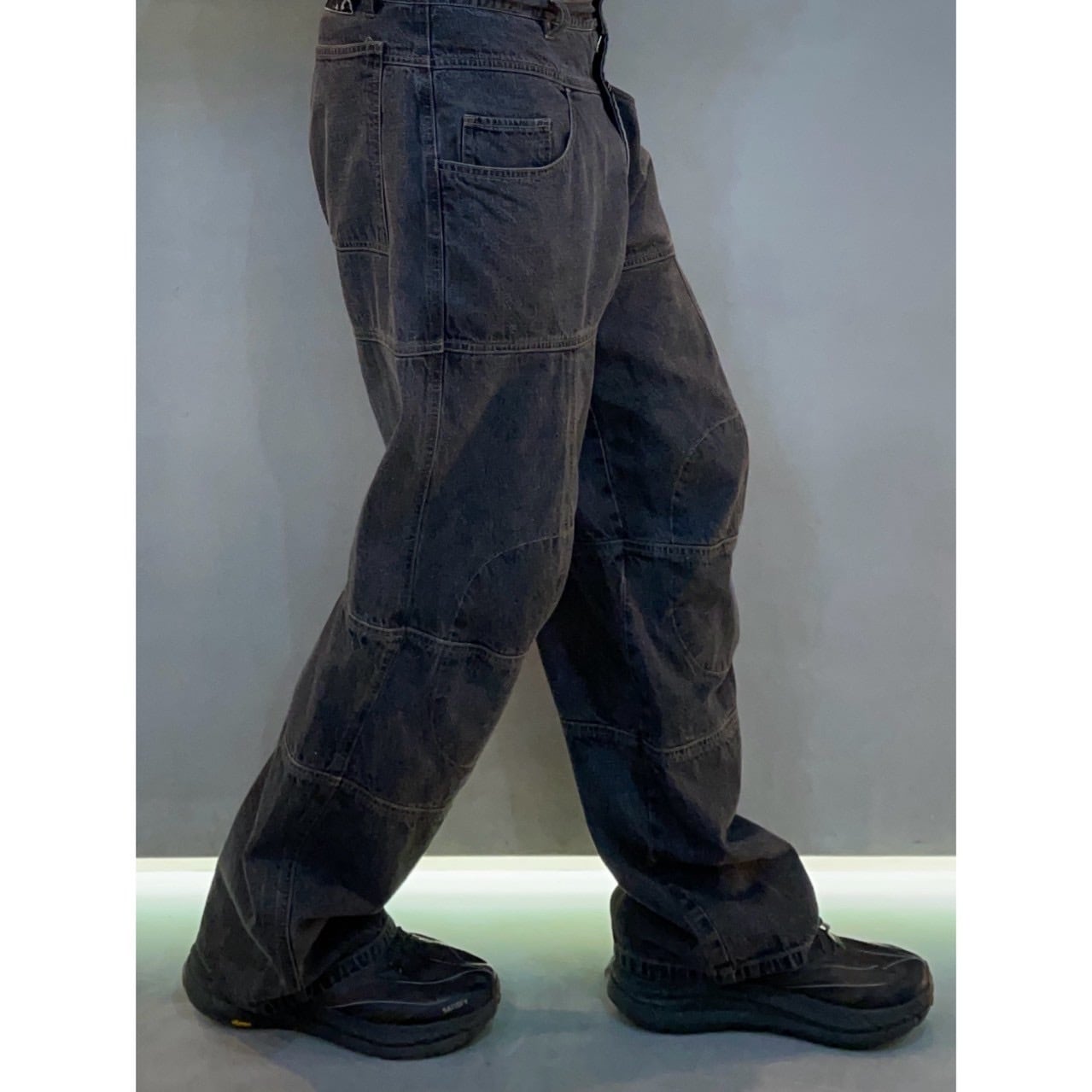 - 00s Marithé François Girbaud washed black cotton knee patched design buggy denim pants