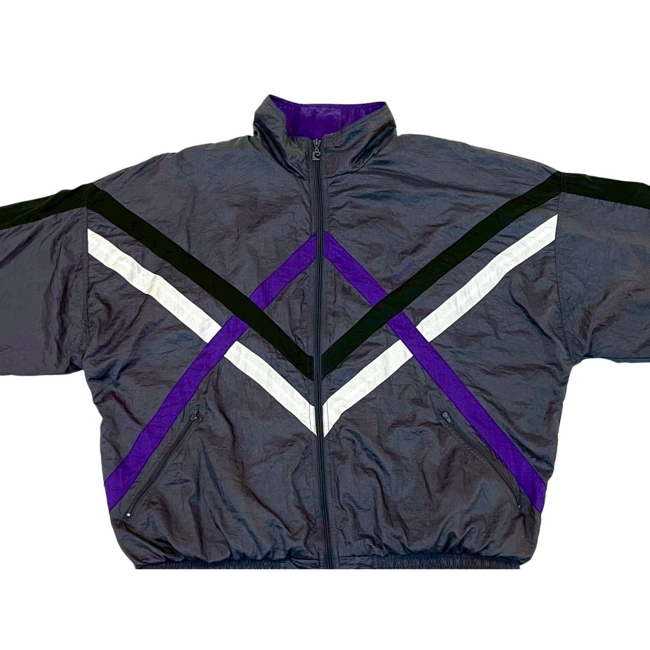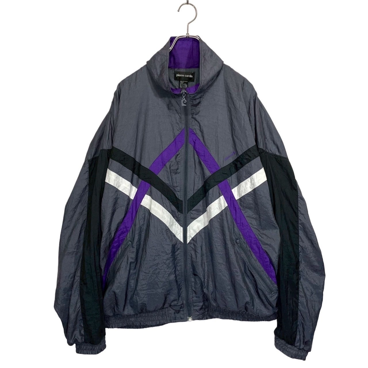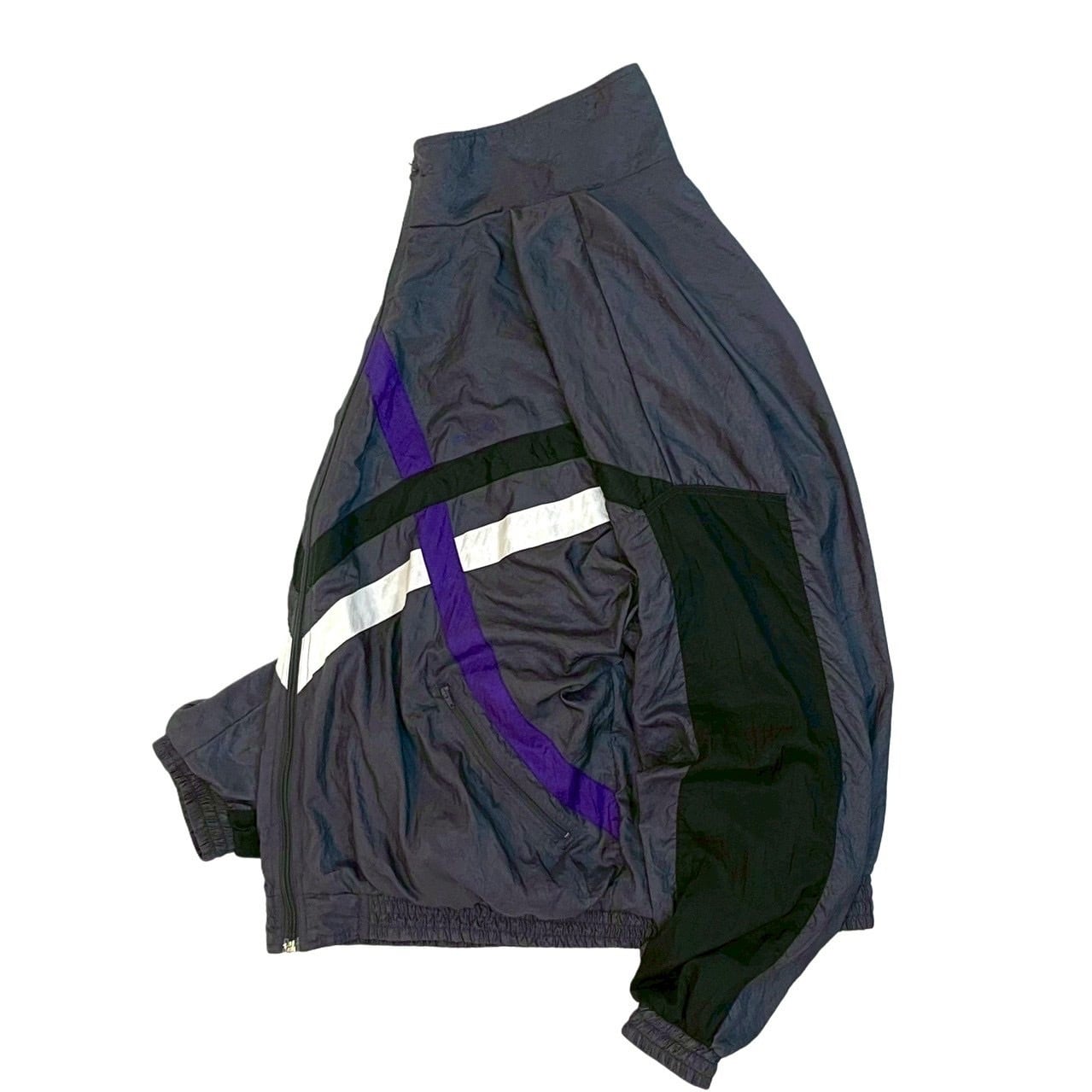 80-90s Pierre Cardin grey/black/purple/ white nylon lined hi neck zip up track top jacket