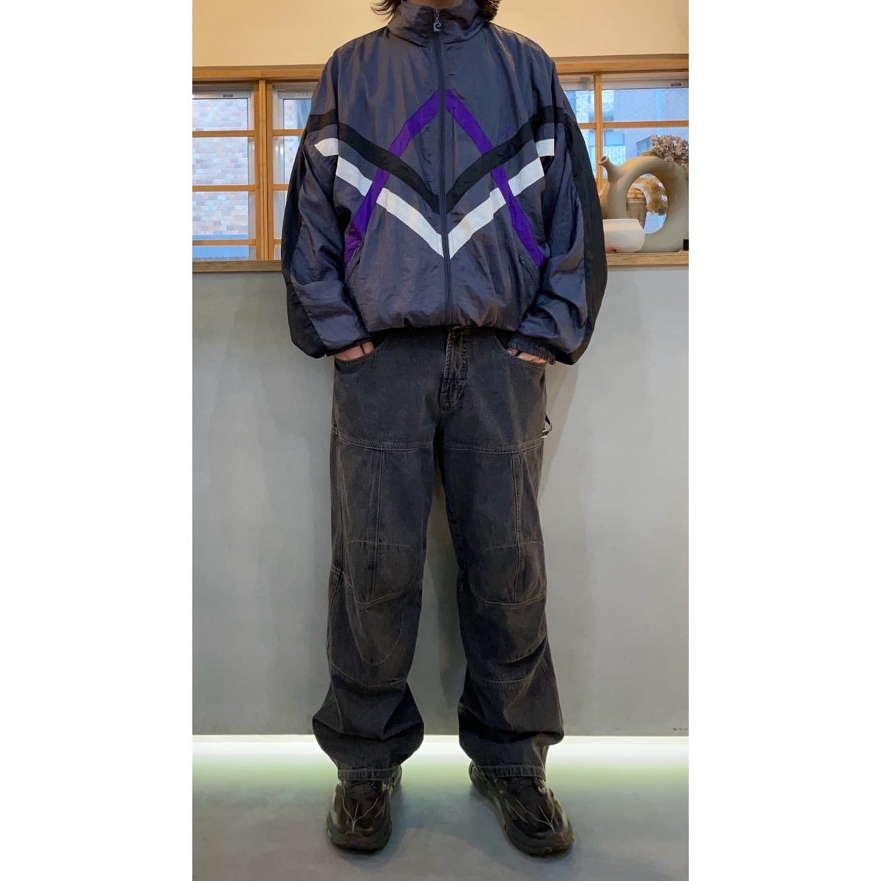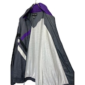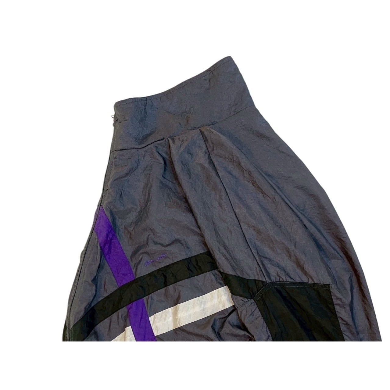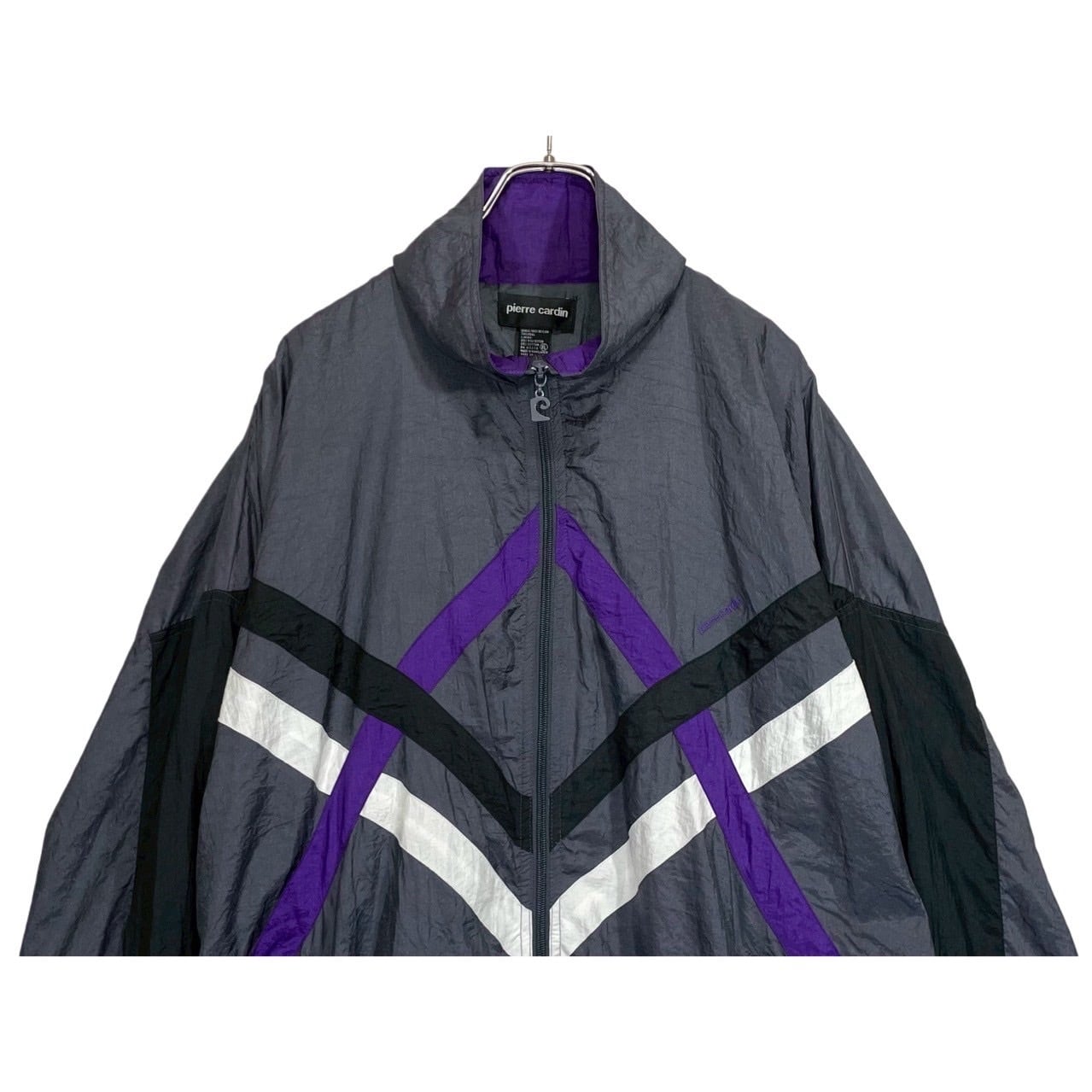 80-90s Pierre Cardin grey/black/purple/ white nylon lined hi neck zip up track top jacket