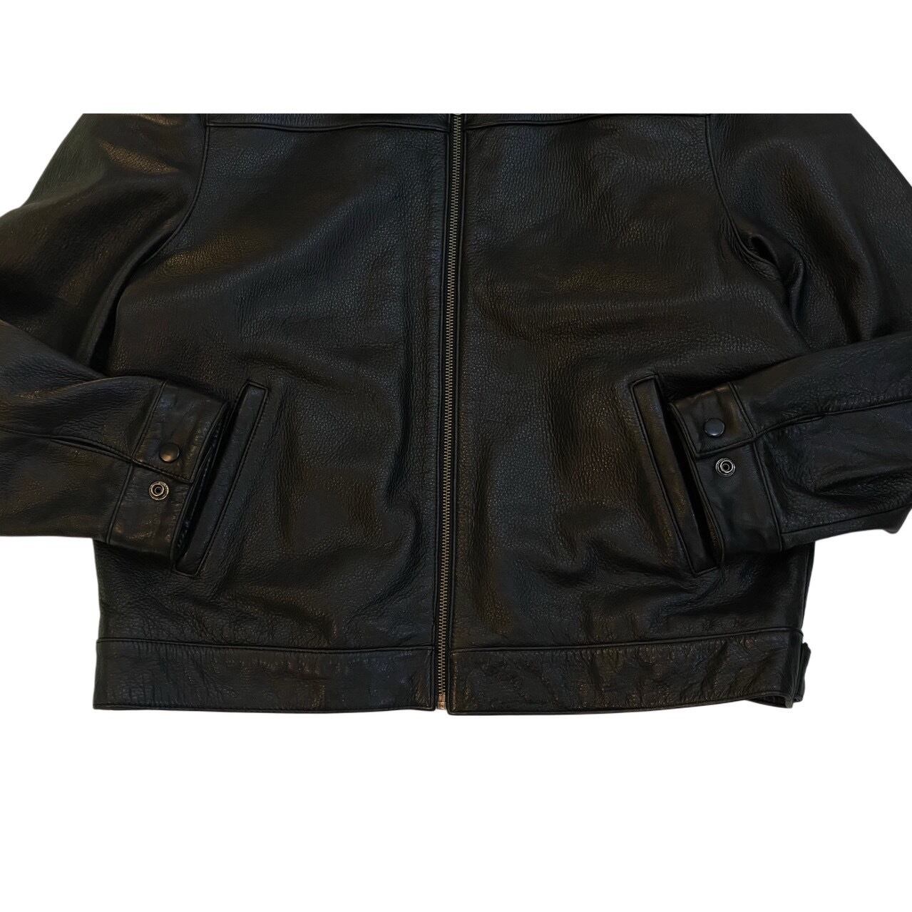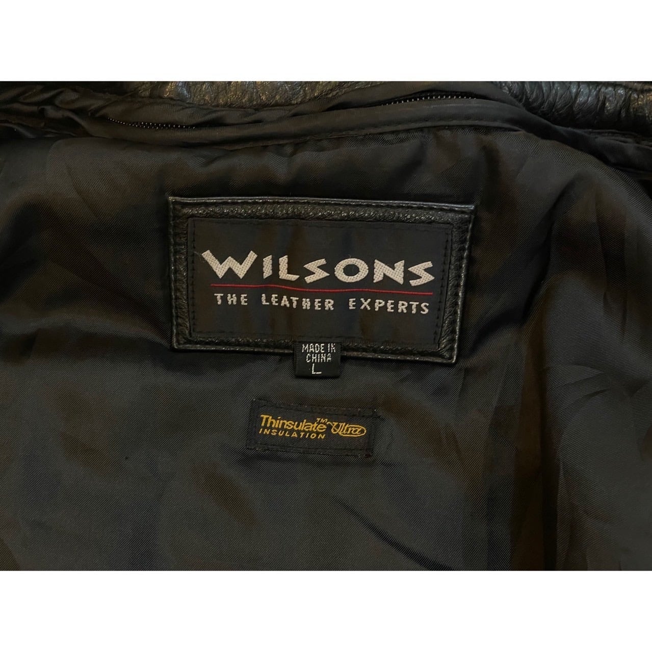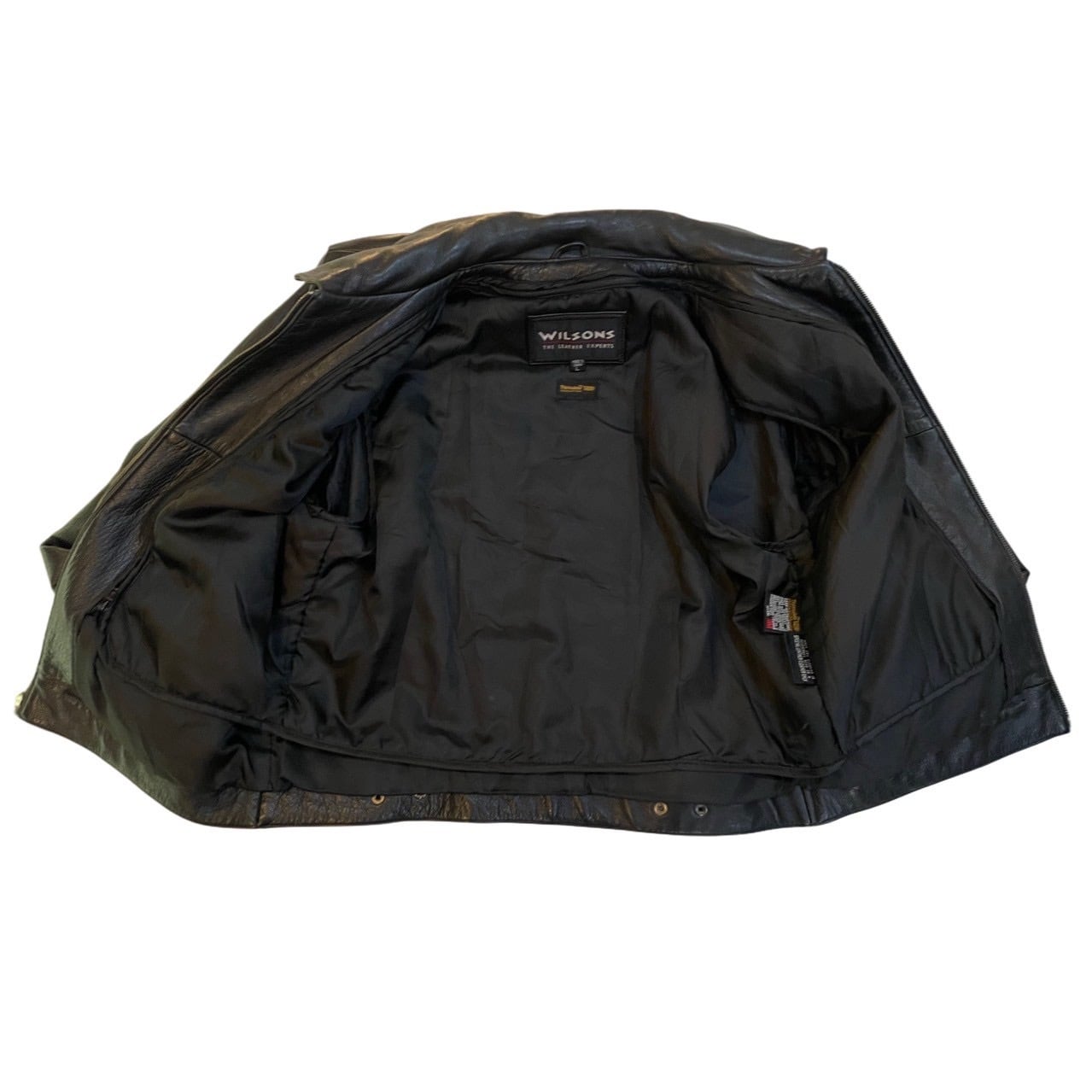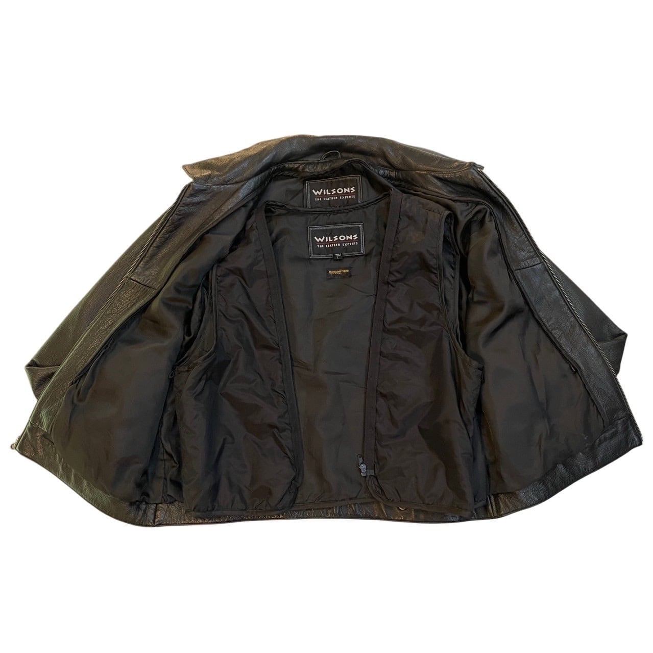 WILSONS LEATHER black cow leather box silhouette zip up jacket with detachable thinsalate liner vest