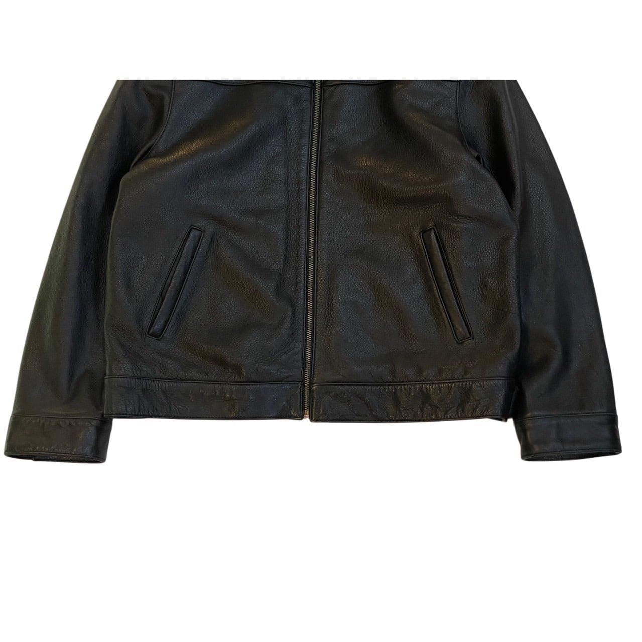 フロントジップのデニムジャケットをレザーで作った様なルックス