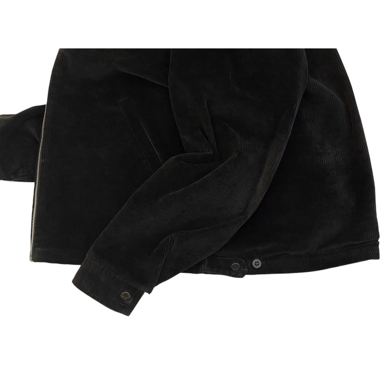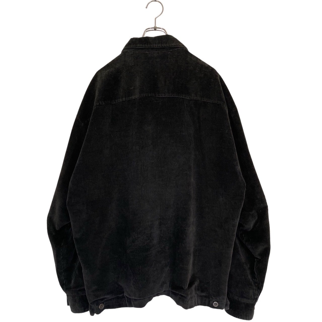 90s- KIK WEAR black wide wale cotton cords embroidery logo box silhouette zip up jacket