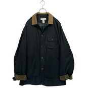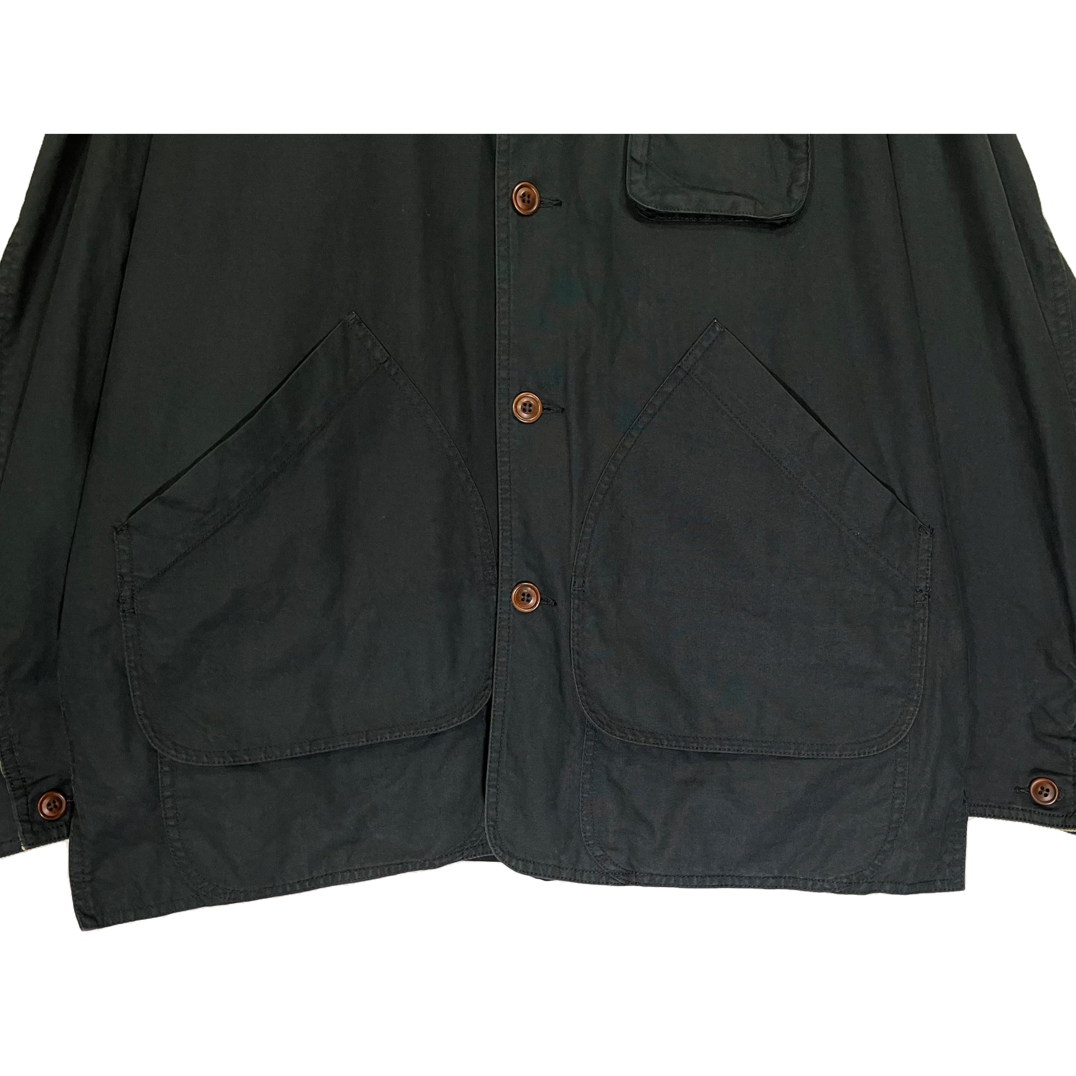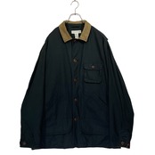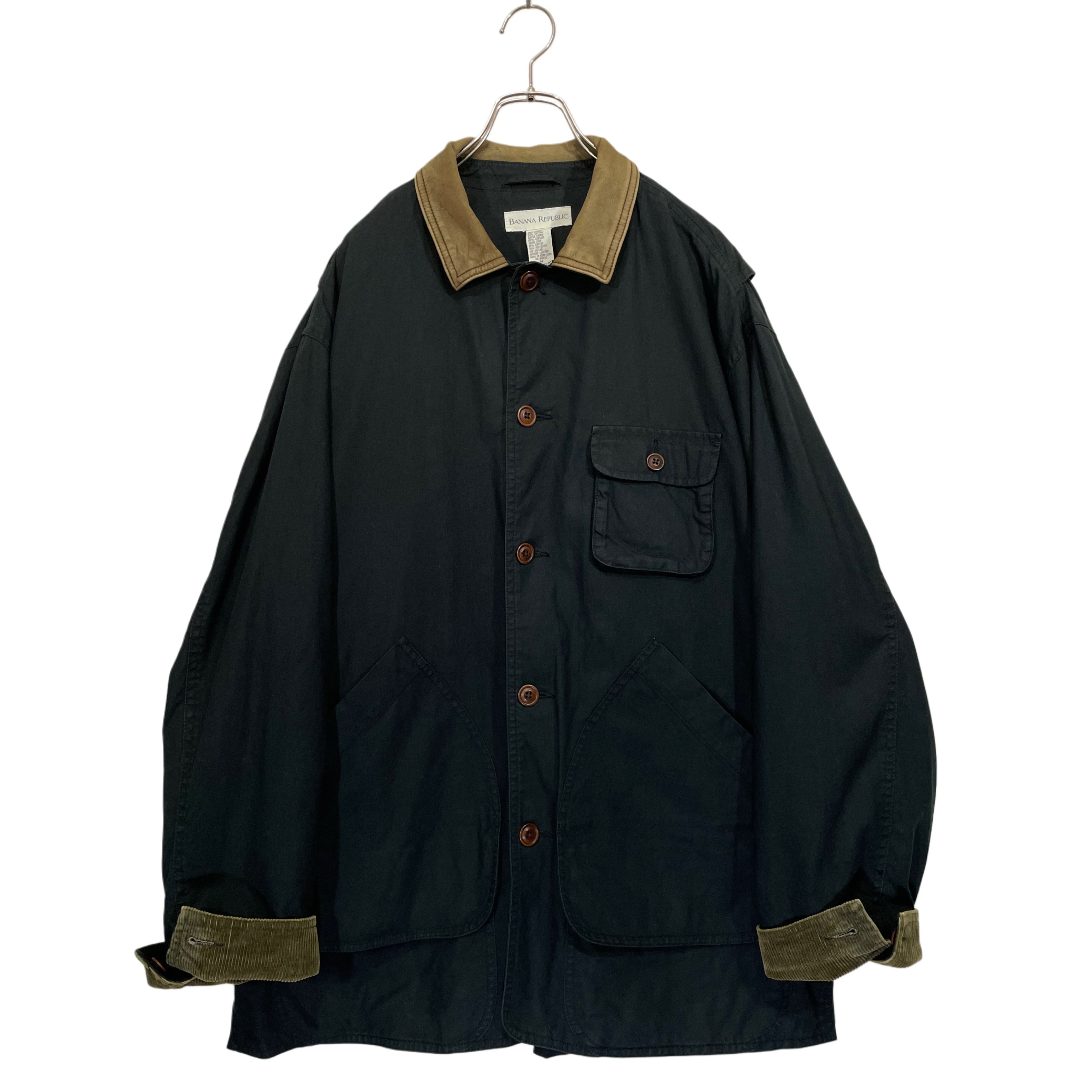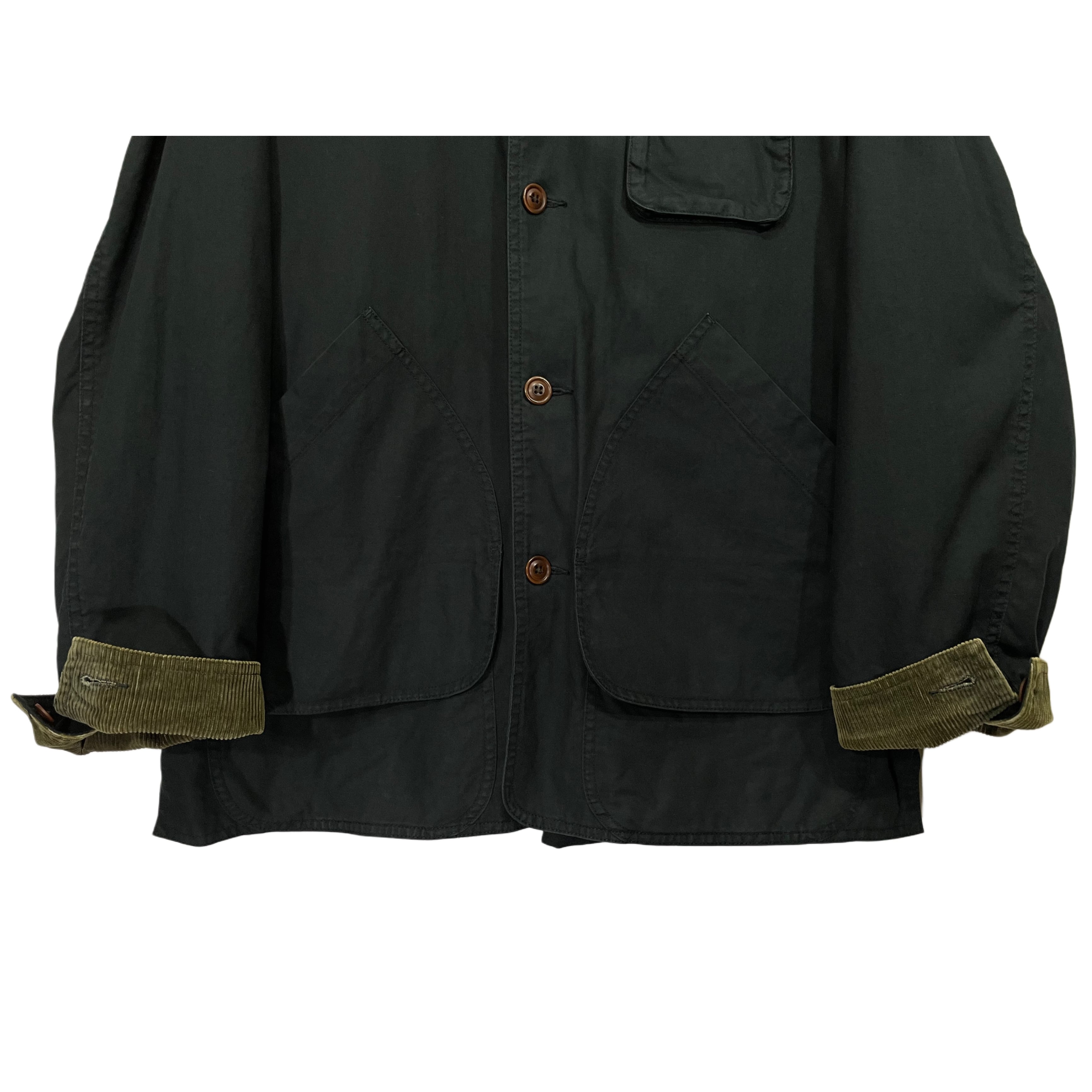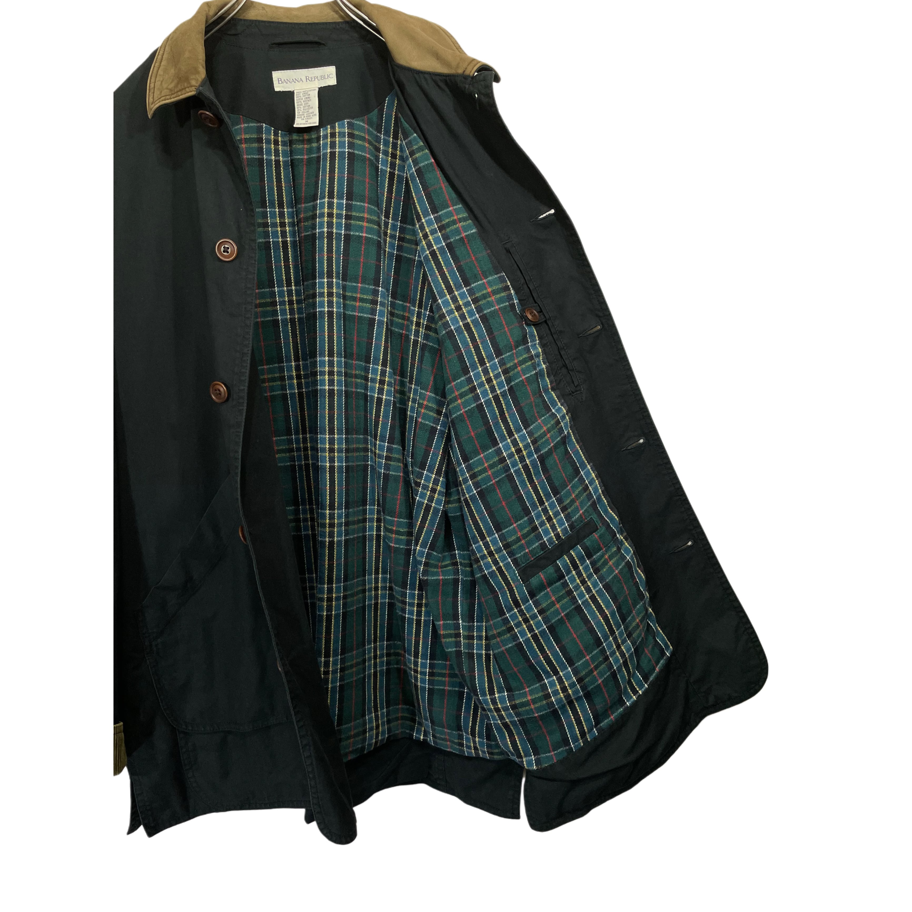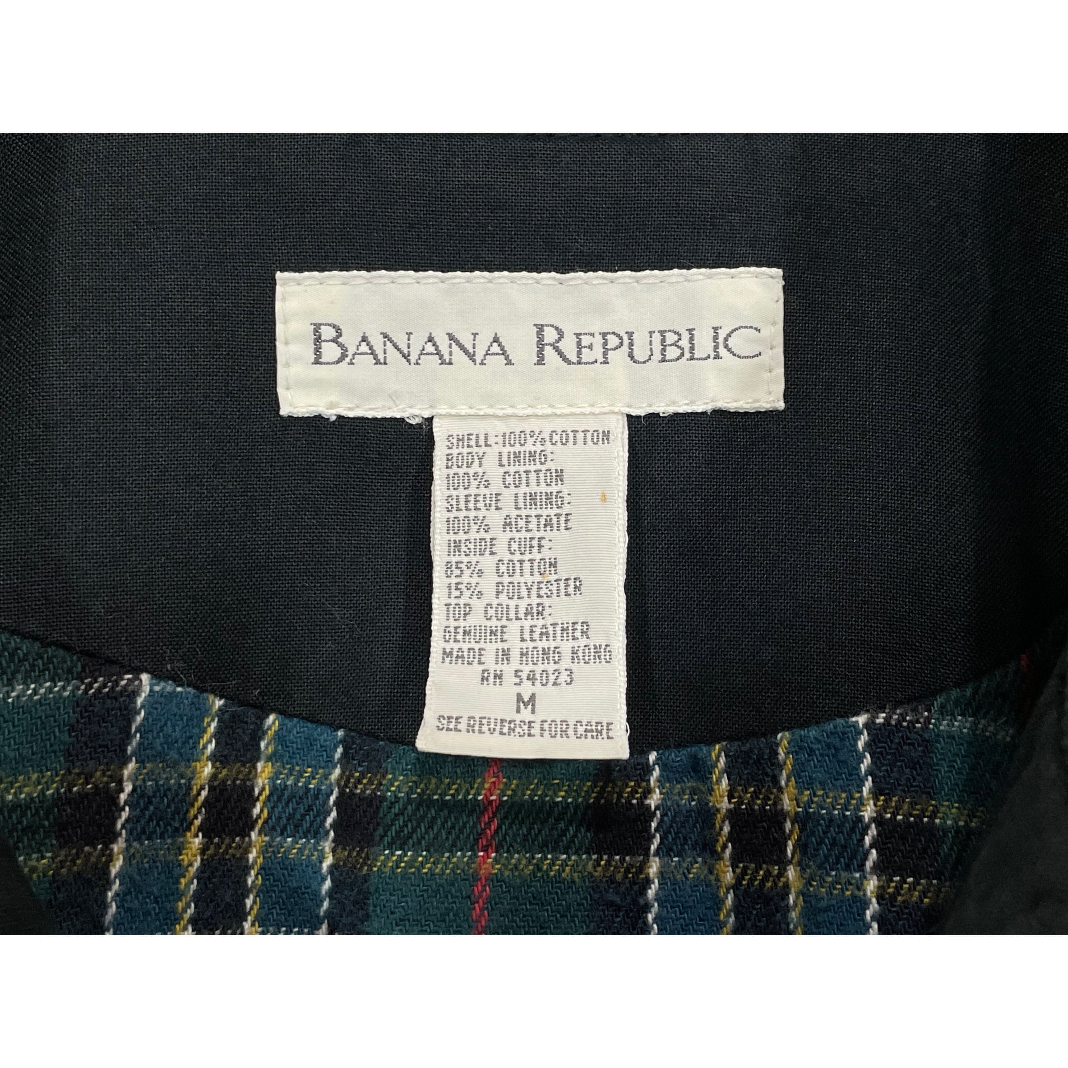 -90s BANANA REPUBLIC black cotton/brown leather plaid cotton flannel and cotton cords lined work jacket