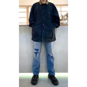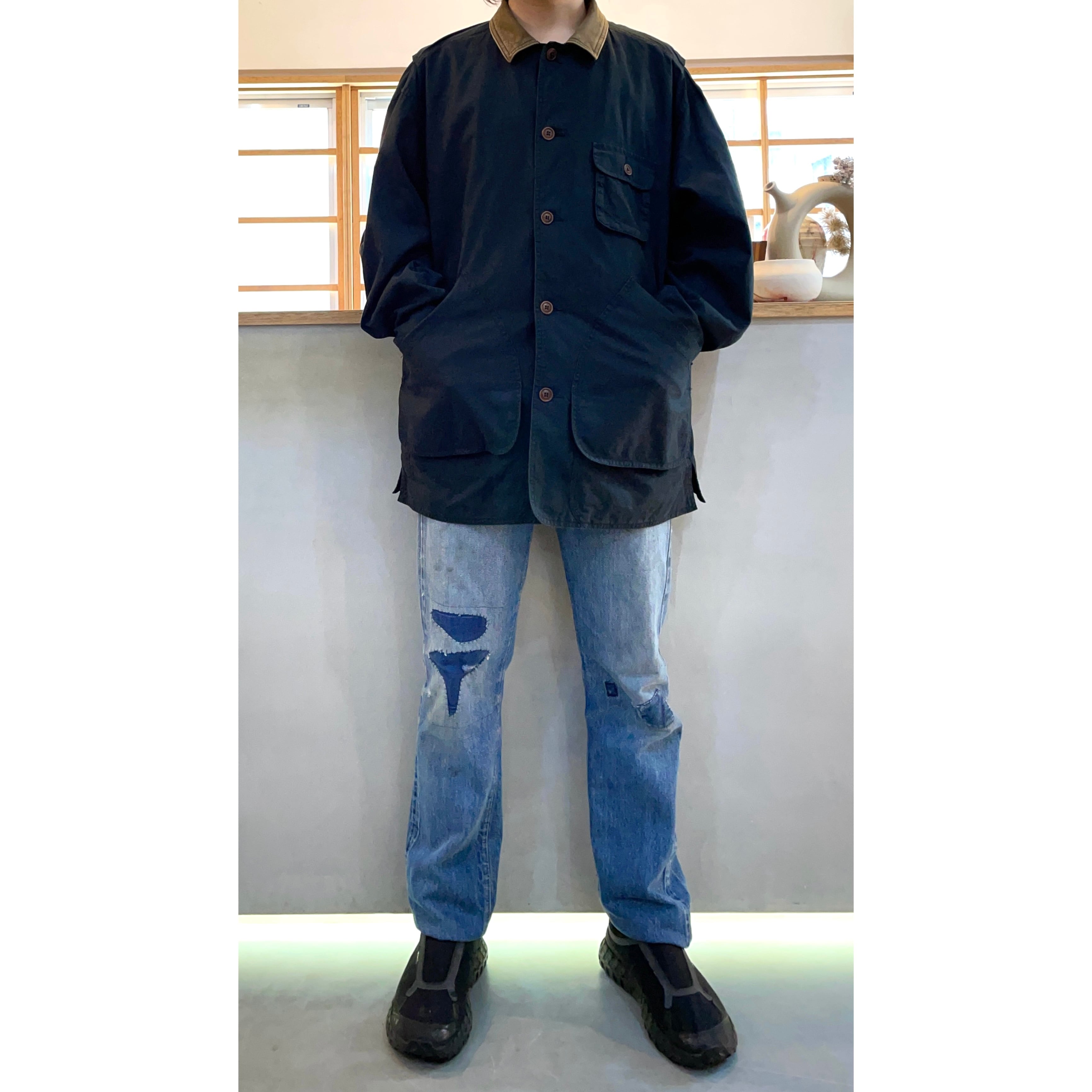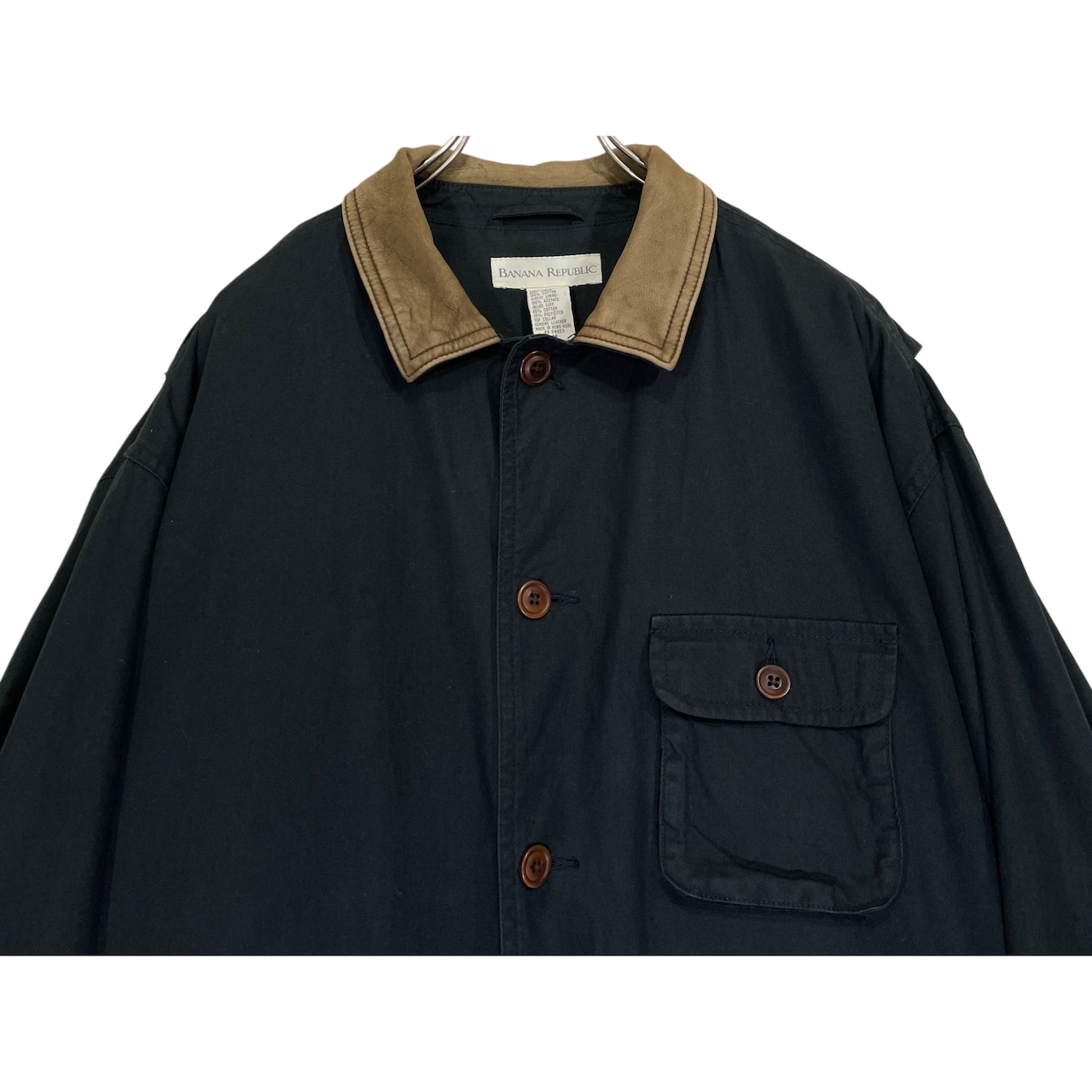 ブラックコットンシェルに襟ブラウンレザー切り替え