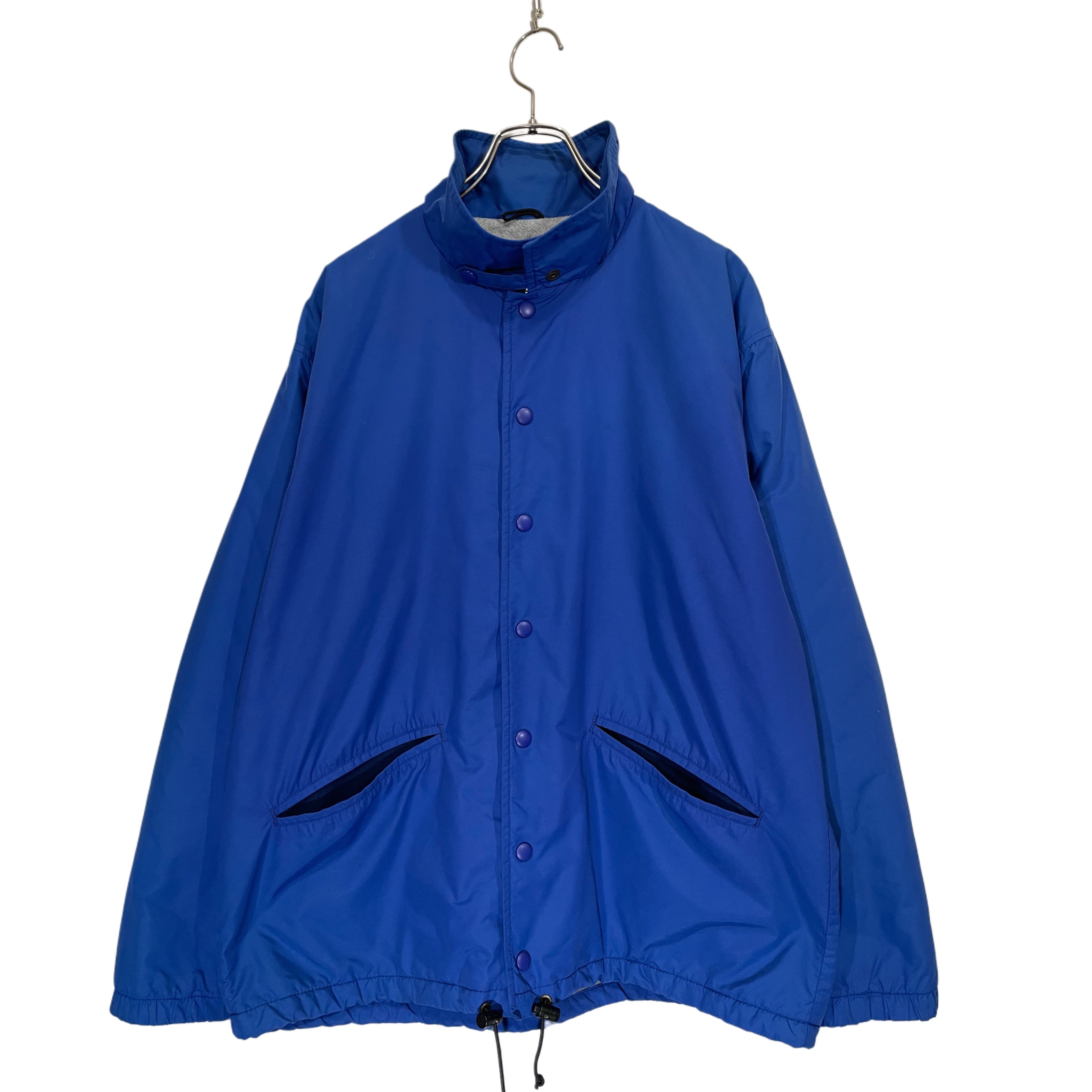 -90s LL. Bean blue nylon grey fleece lined snap botton coach.jacket with neck strap