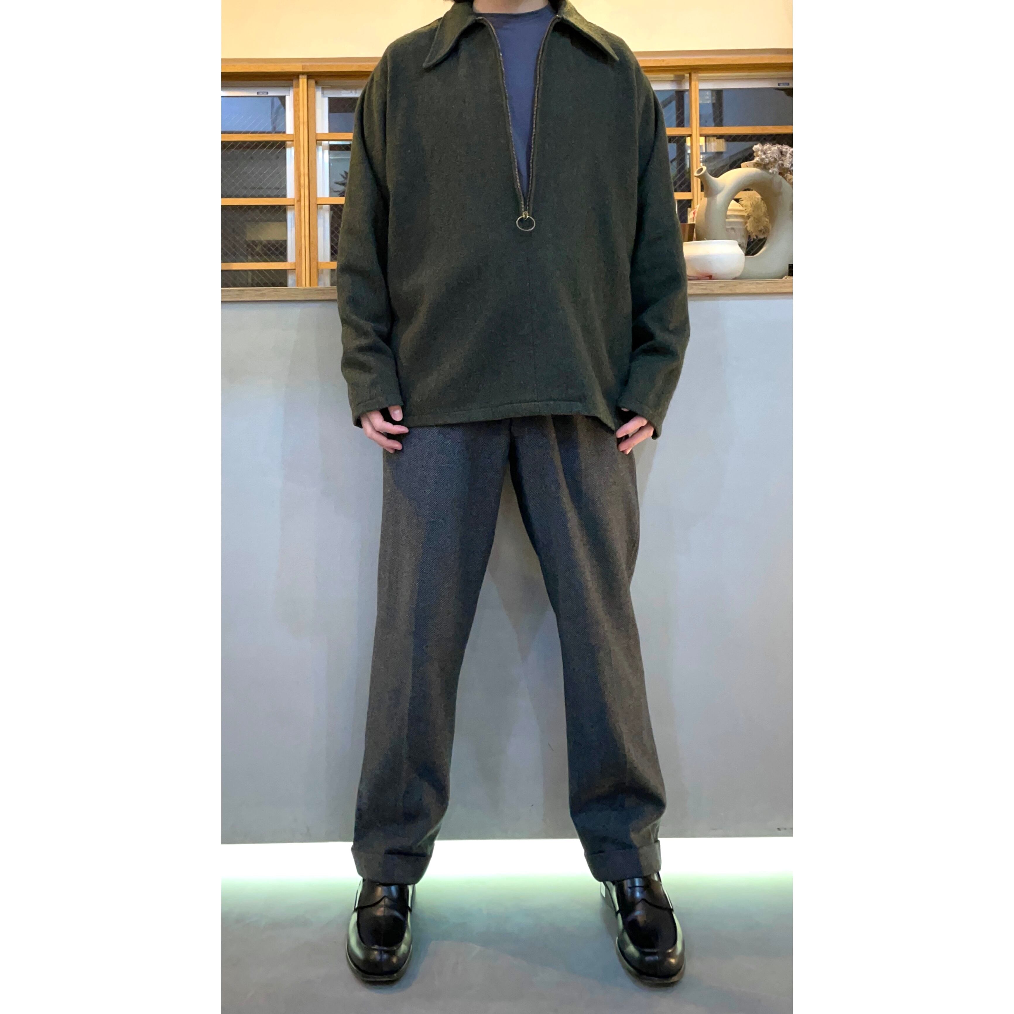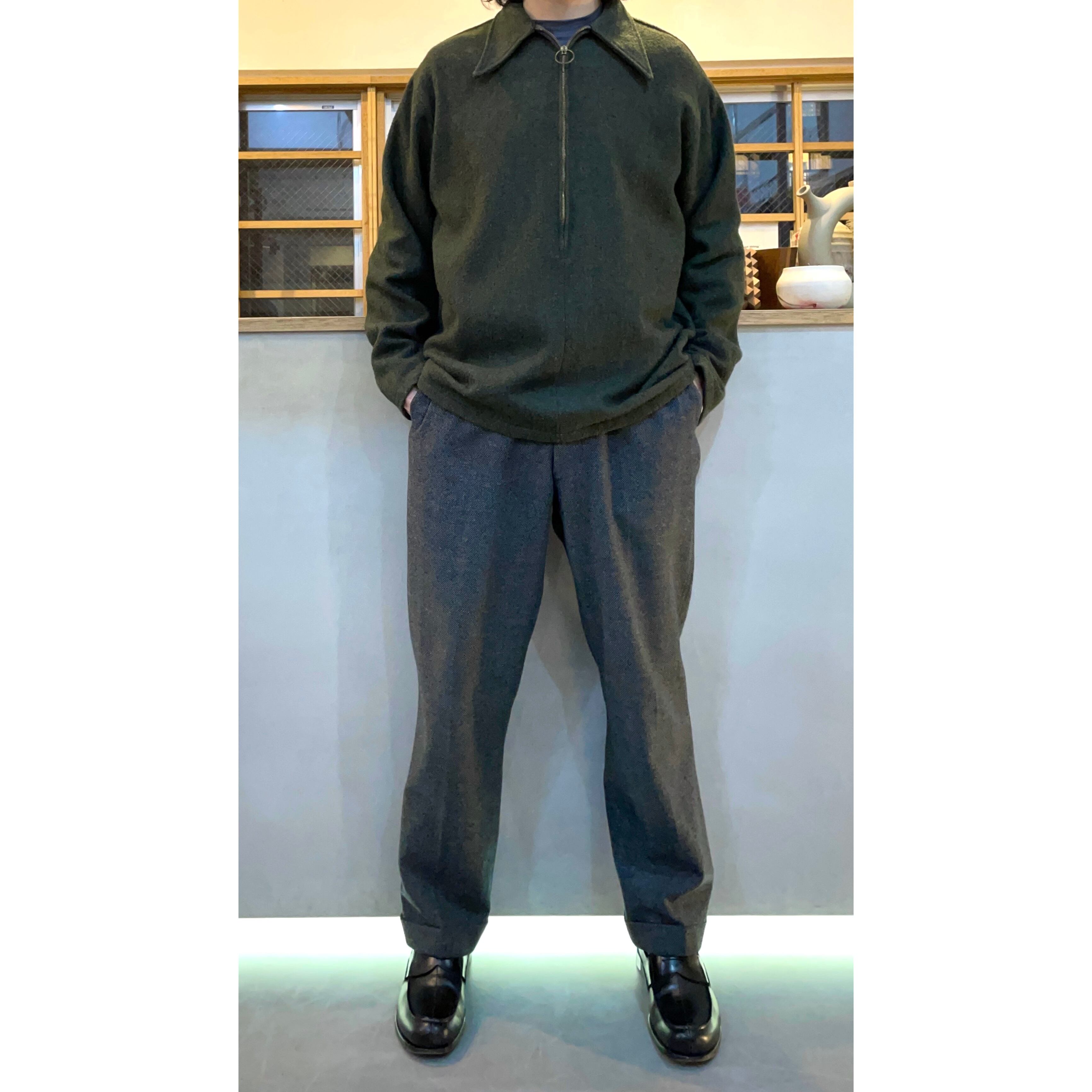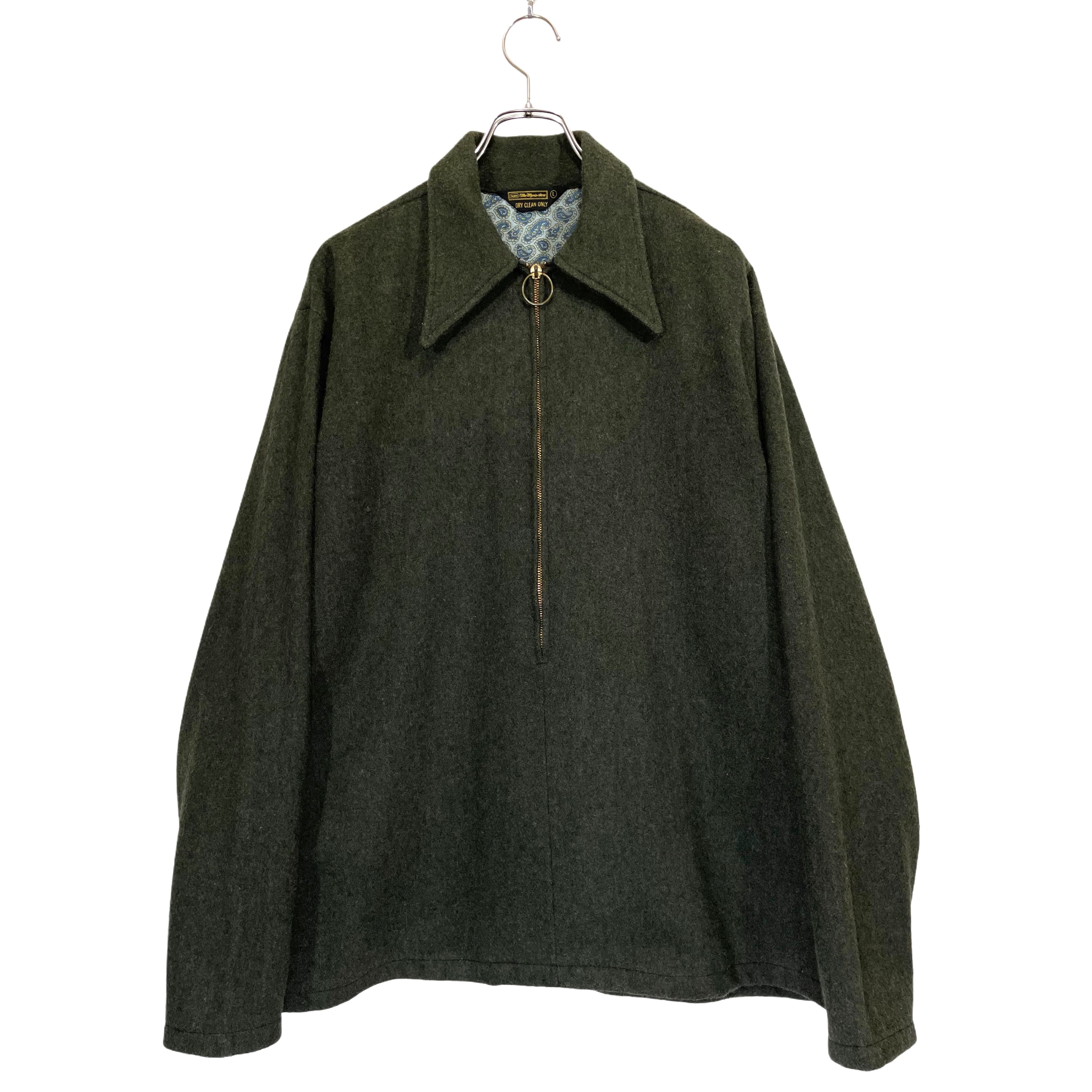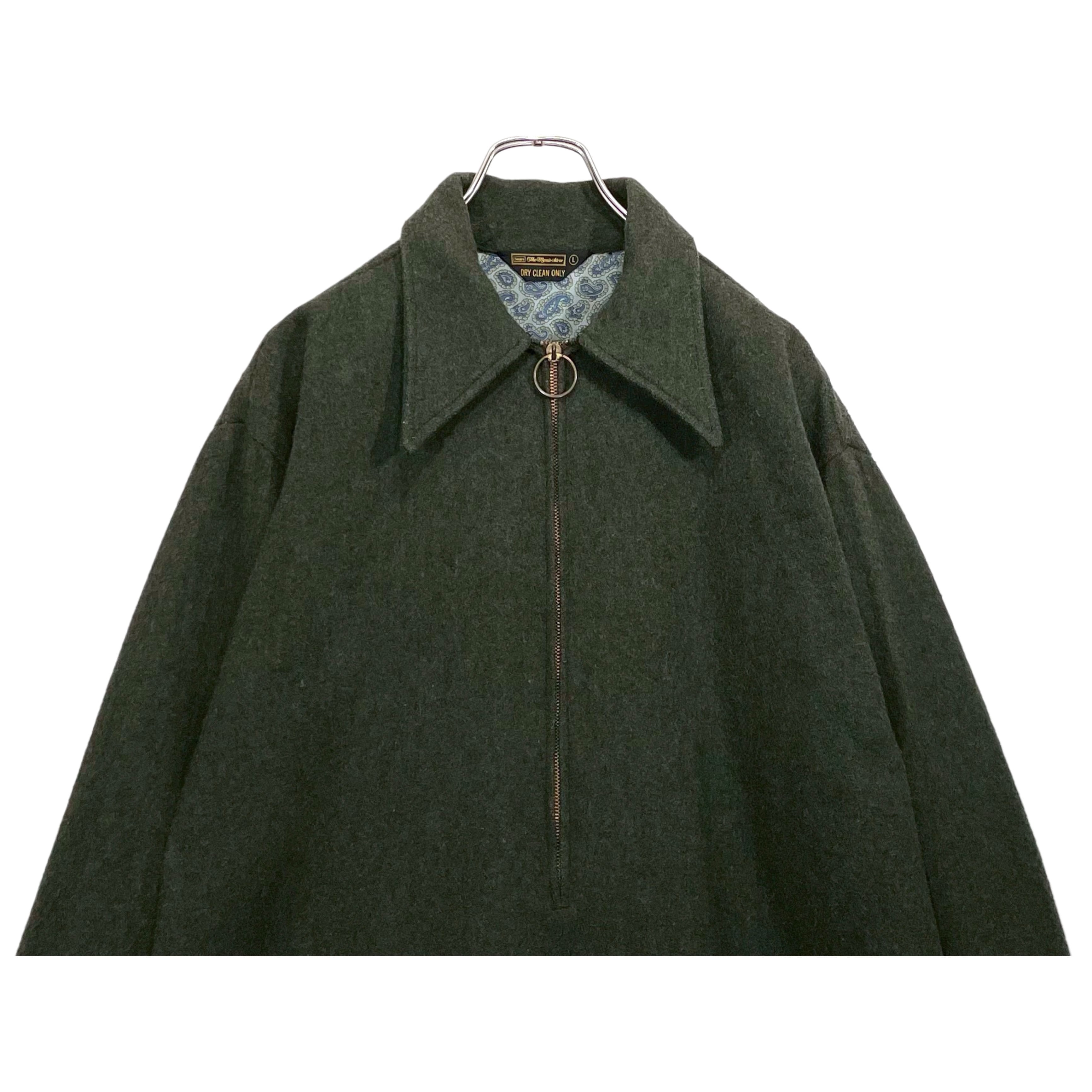 70s Sears The Men's store olive wool melton ring half zip box silhouette pullover shirt