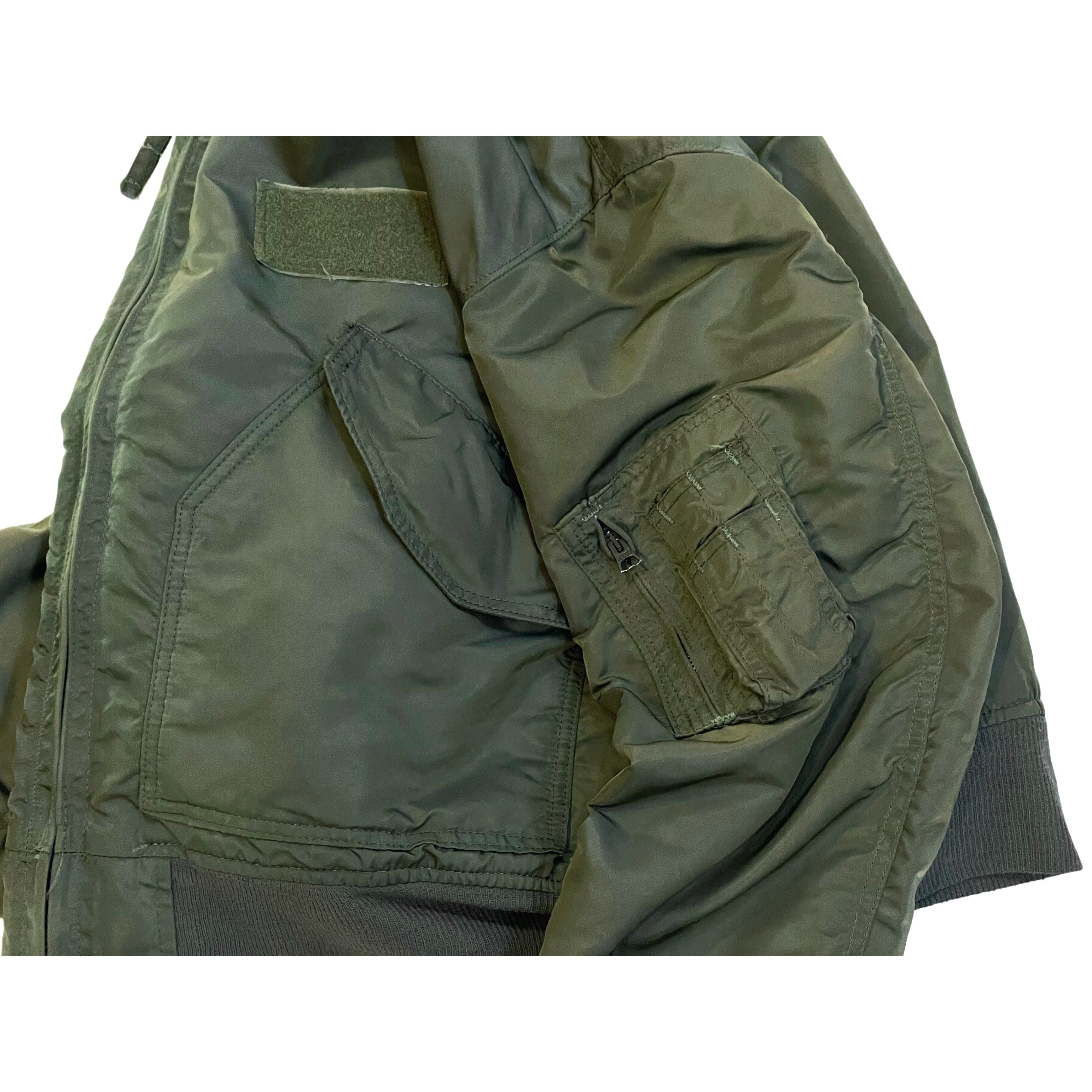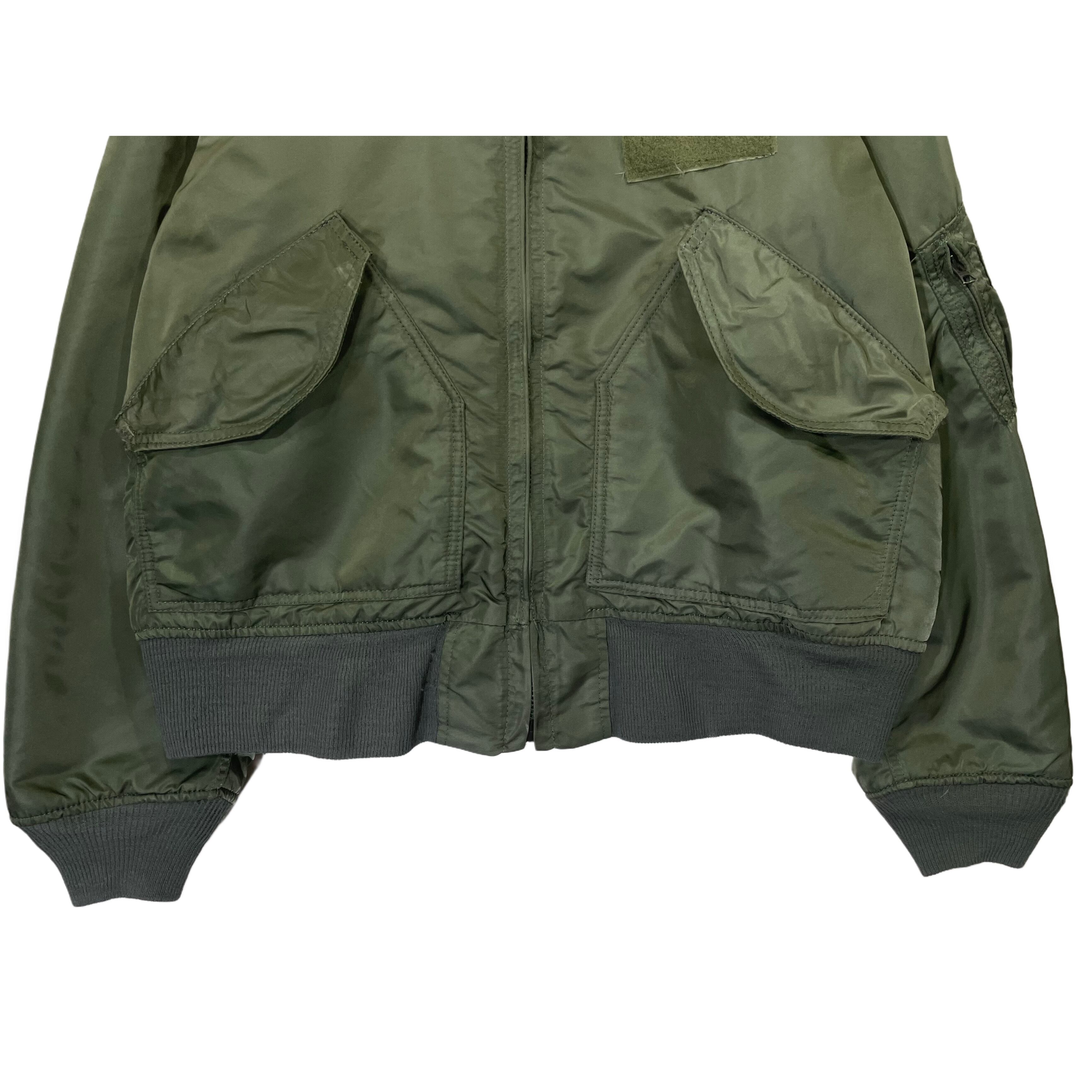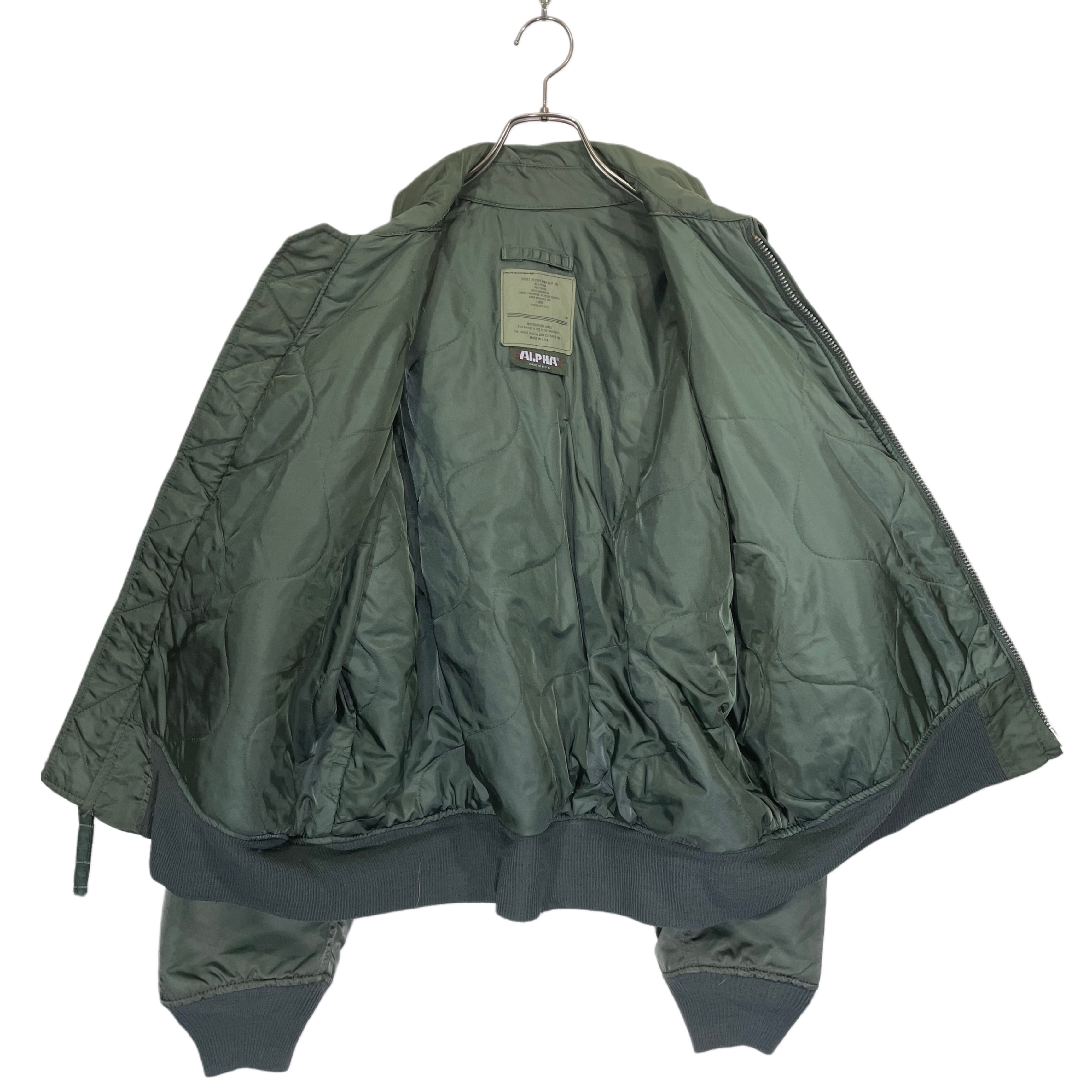 80s ALPHA INDUSTRIES "JACKET FLYER'S MAN CWU-45/P" olive nylon quilted lining zip up flight jacket