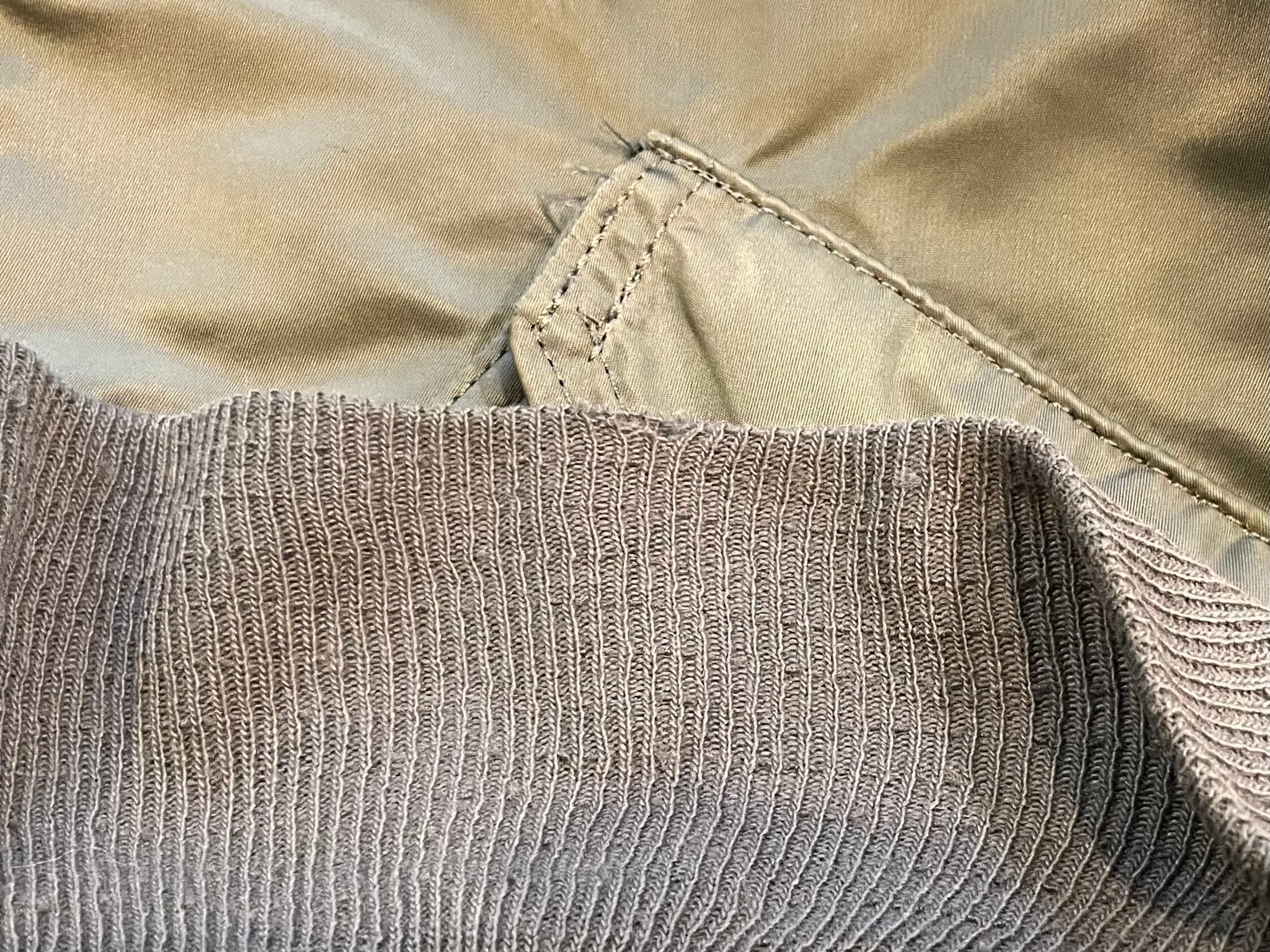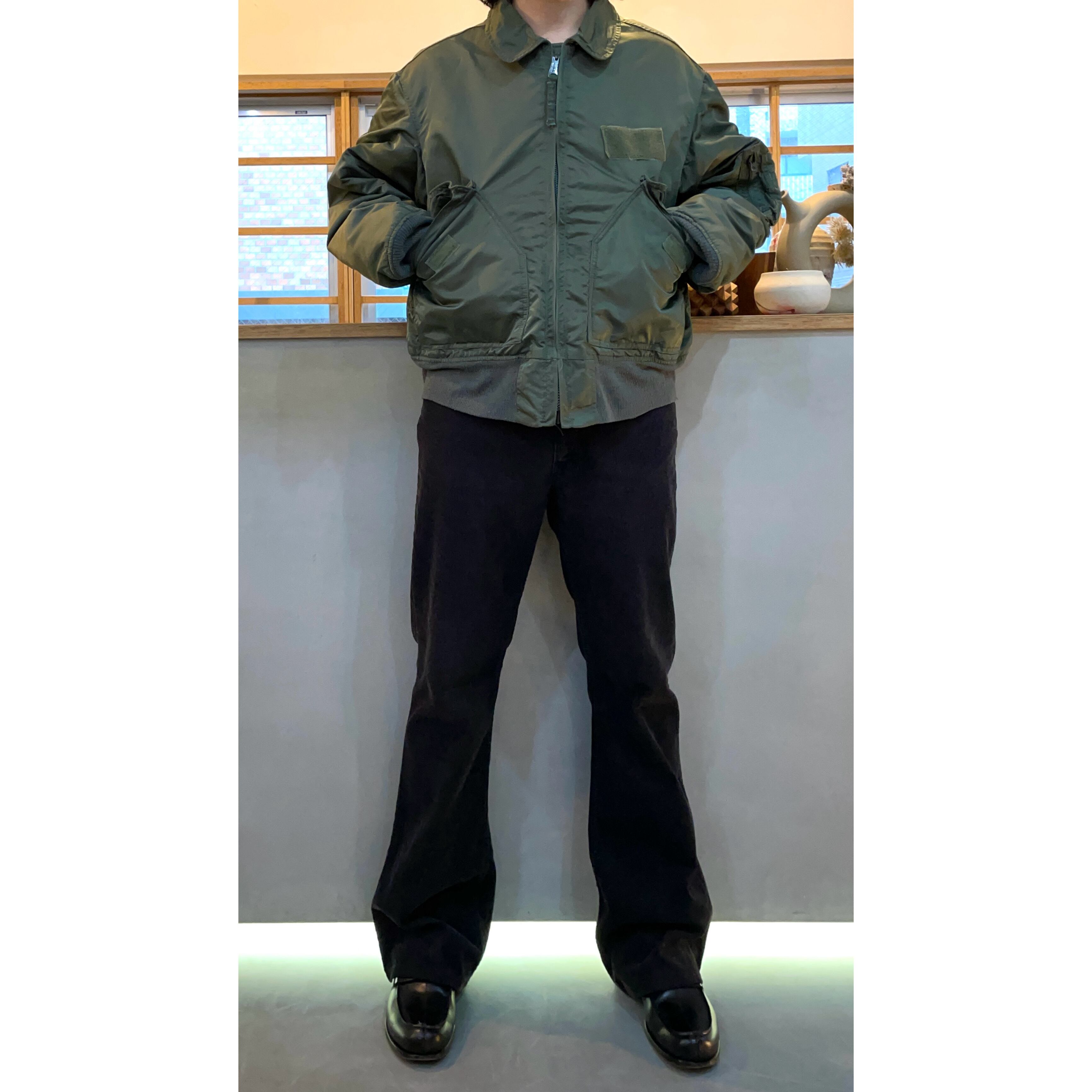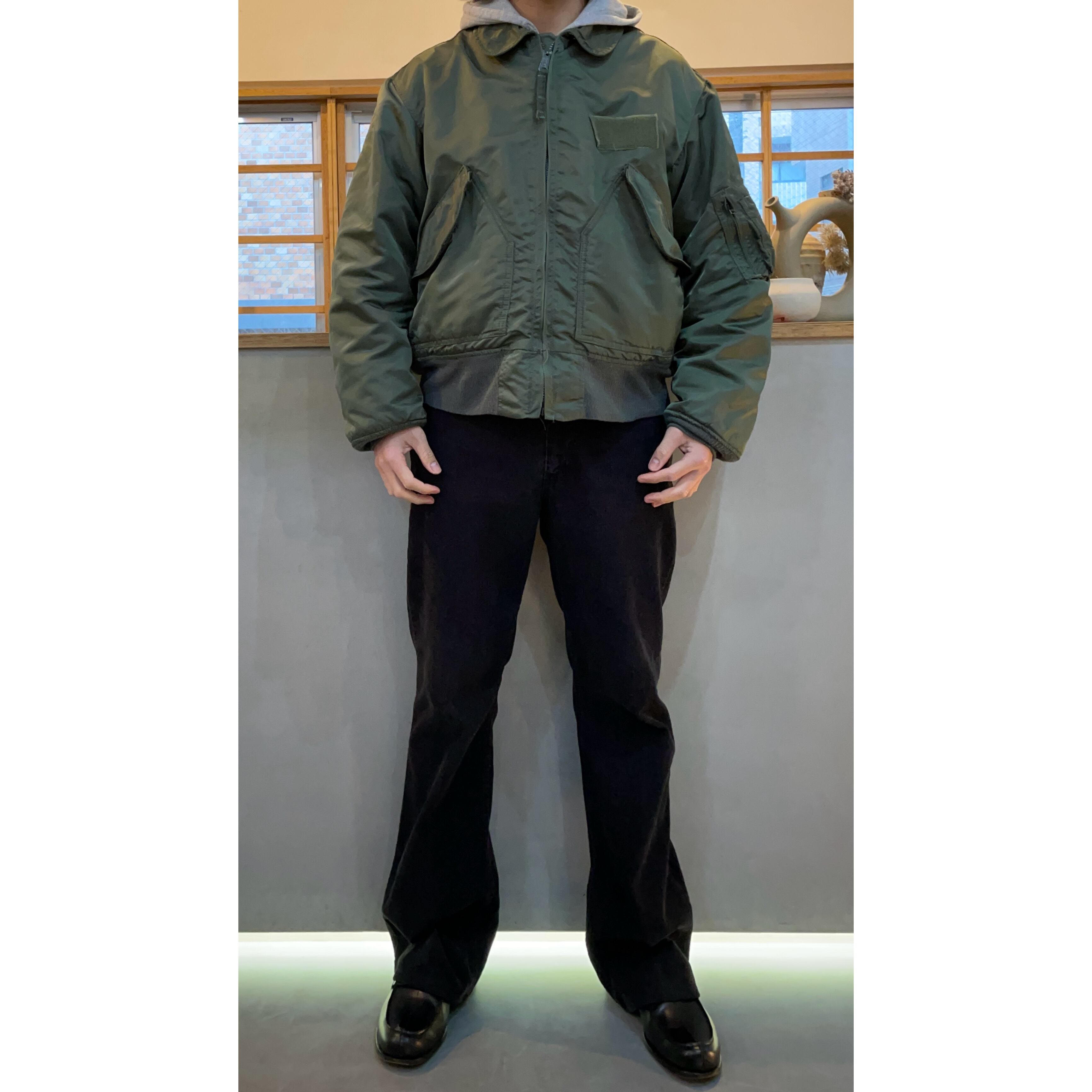 80s ALPHA INDUSTRIES "JACKET FLYER'S MAN CWU-45/P" olive nylon quilted lining zip up flight jacket