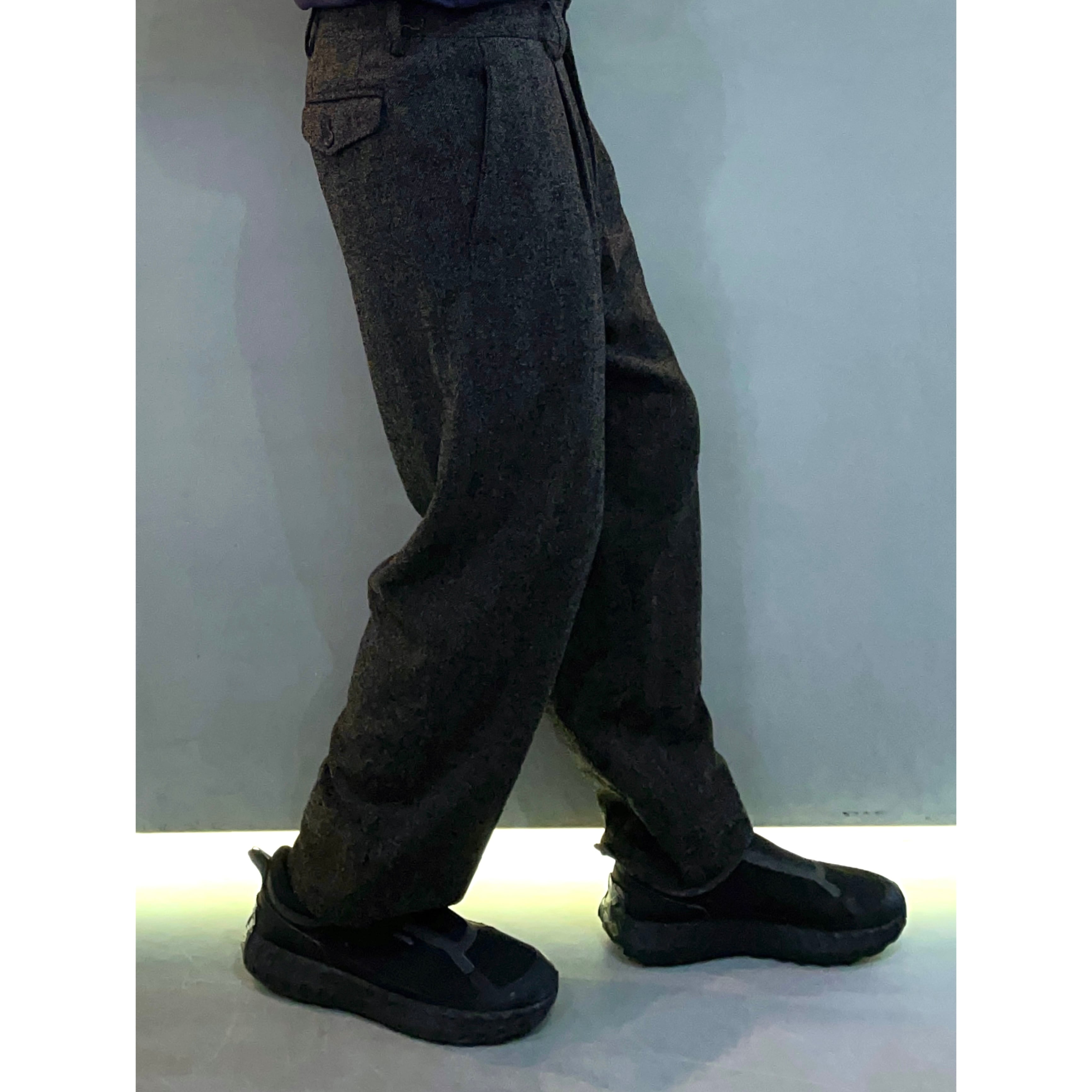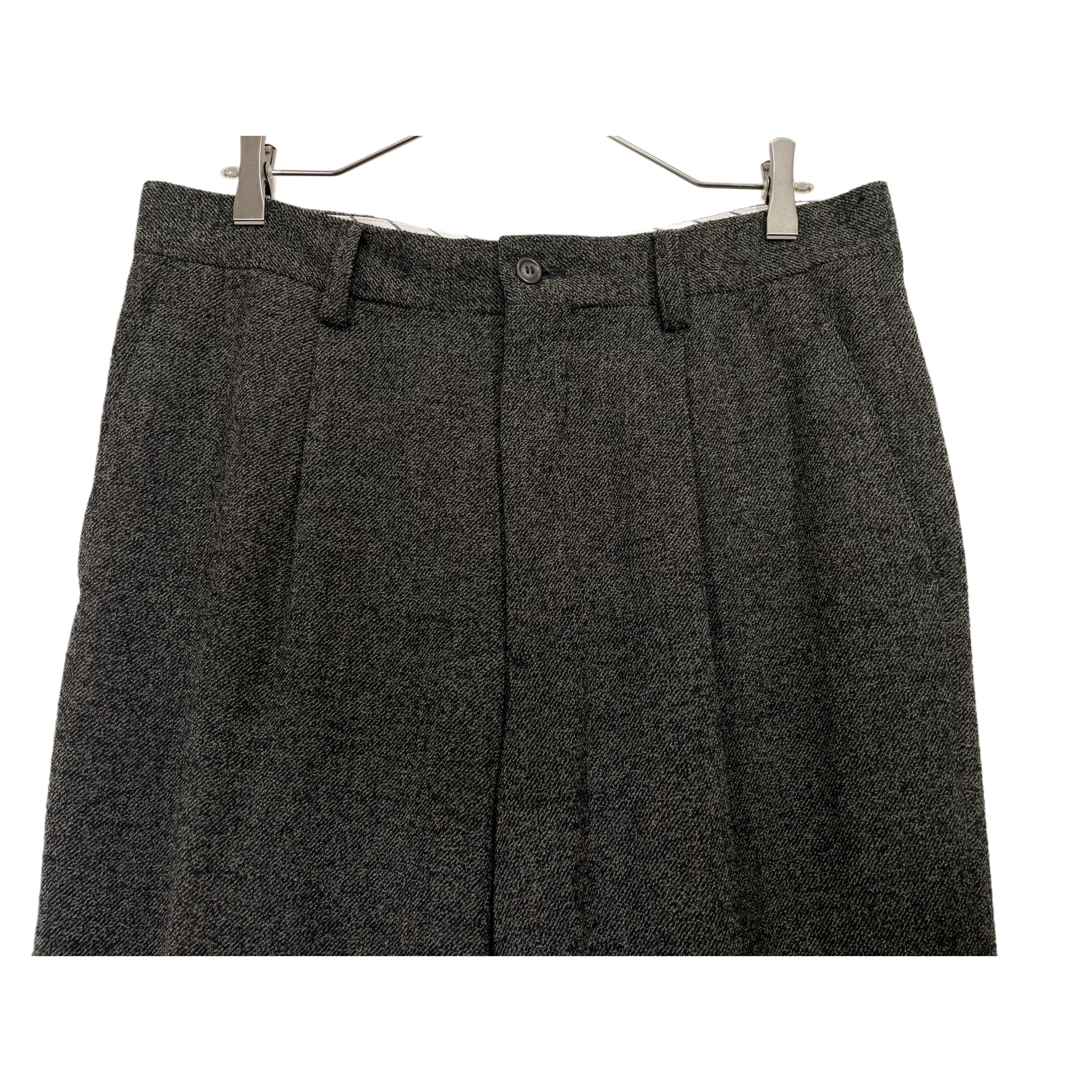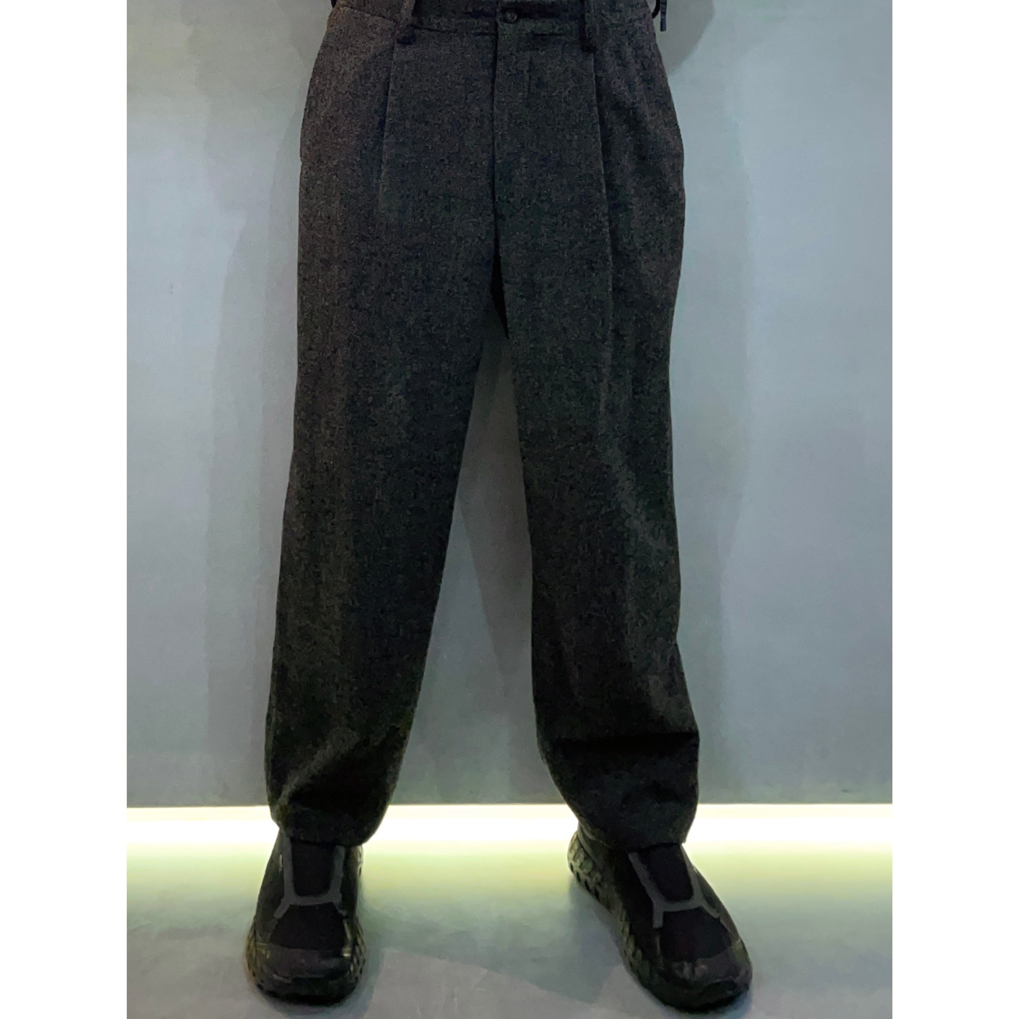 90s ISSEY MIYAKE MEN black×grey mix woolxnylon tweed tuck wide pants