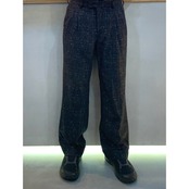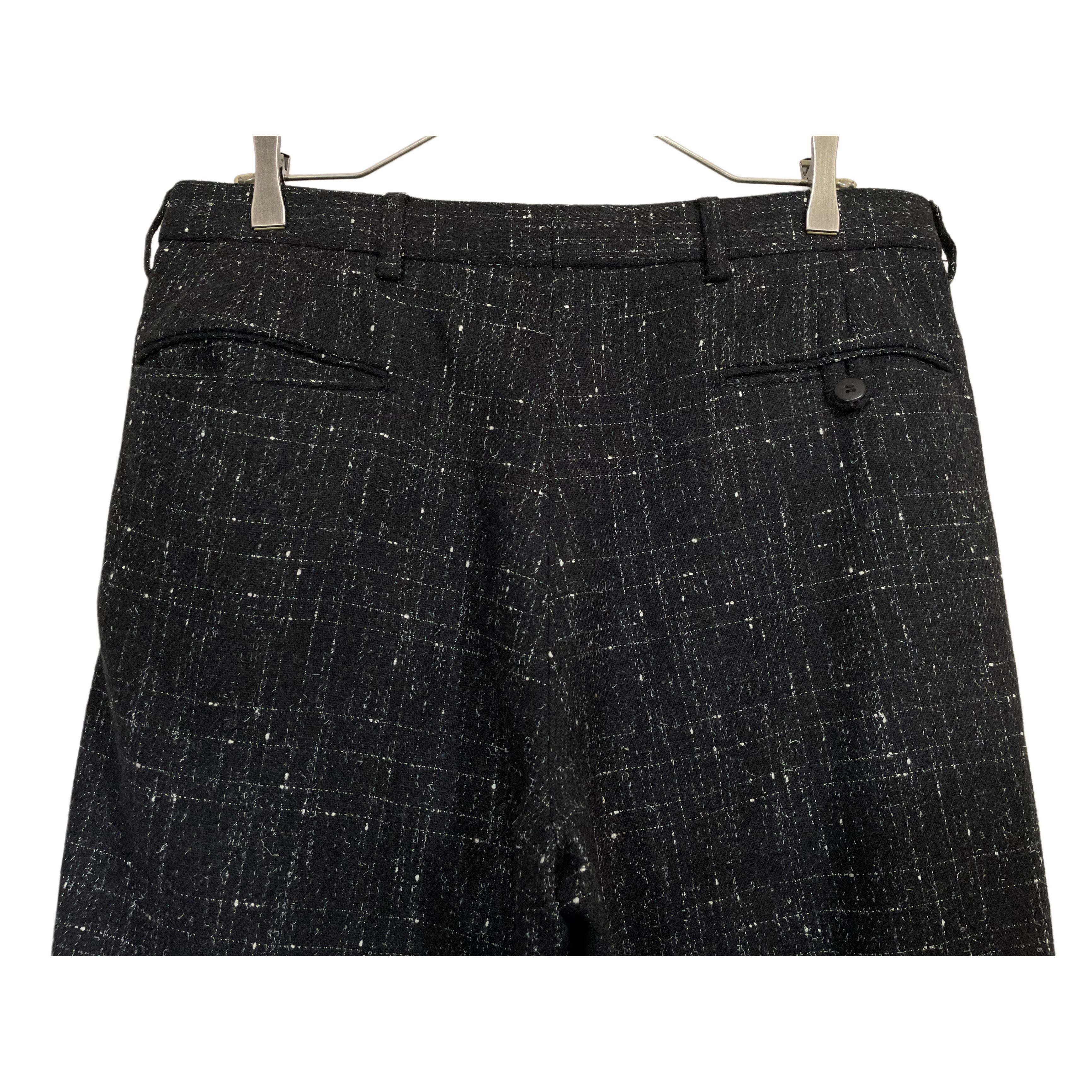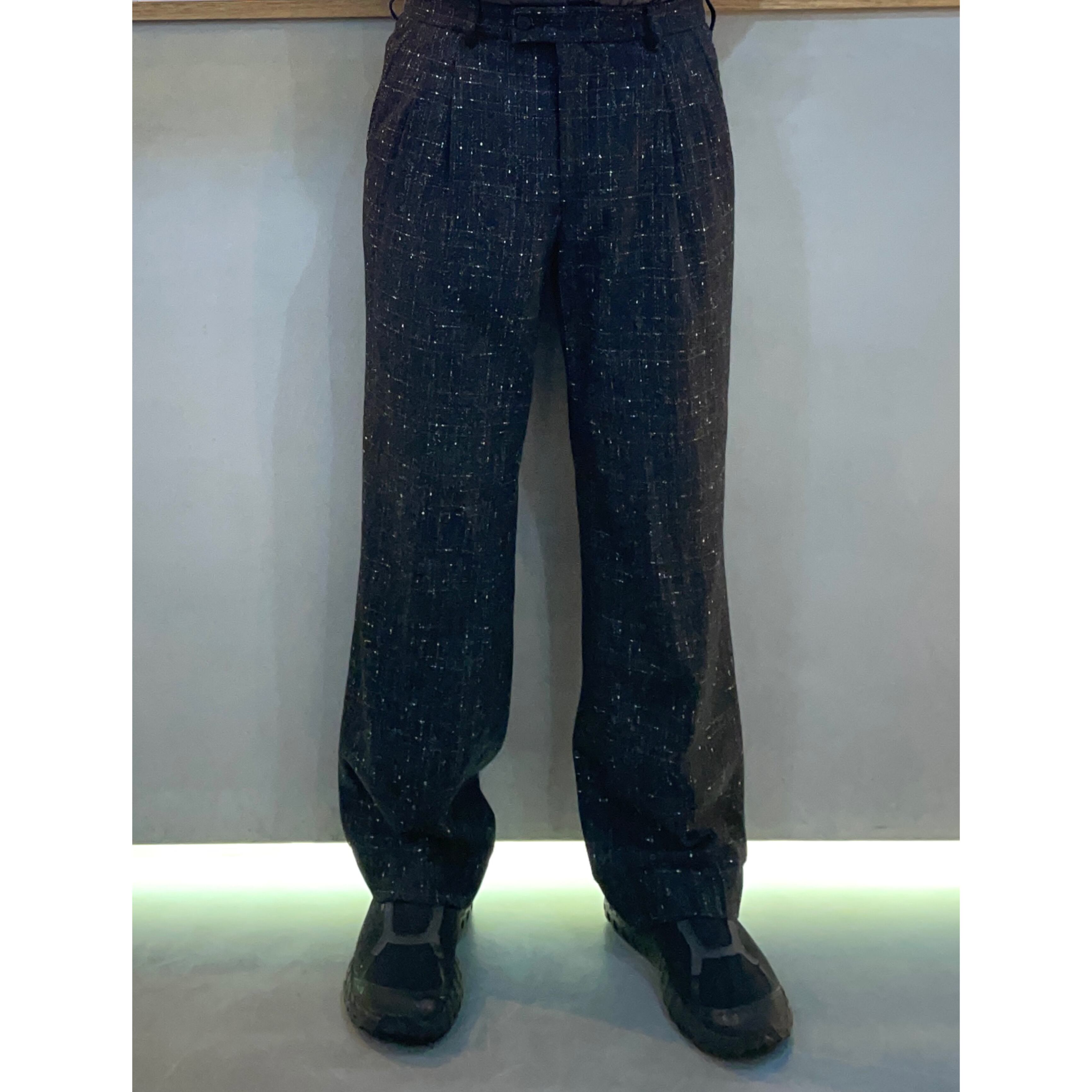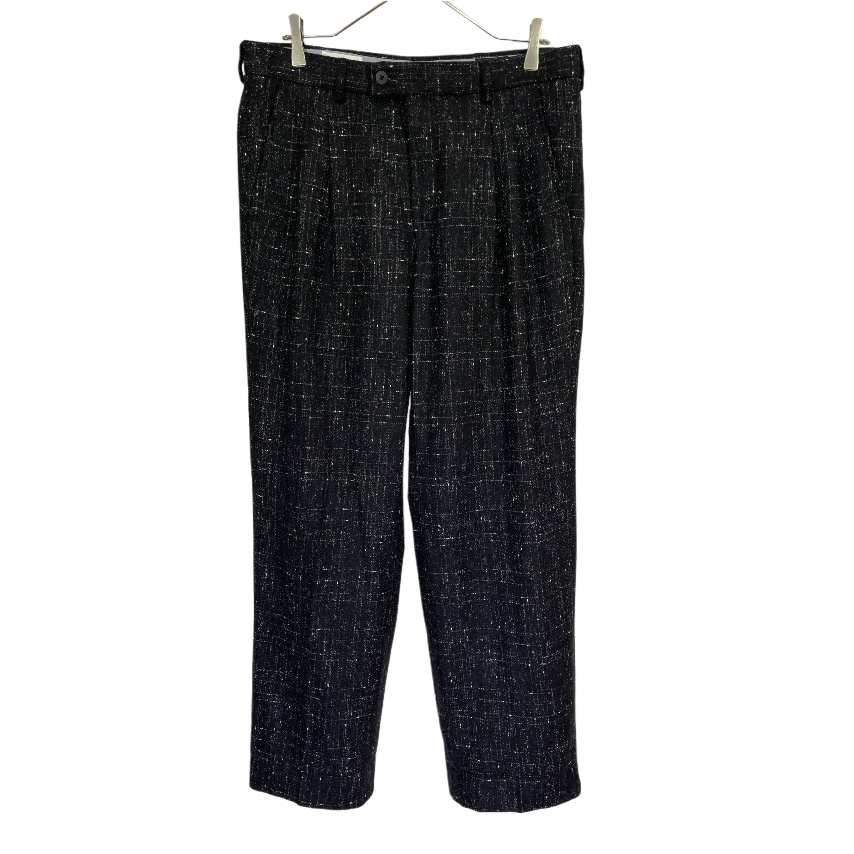 80s Bachrach black×white kasuri yerned wool tuck wide pants