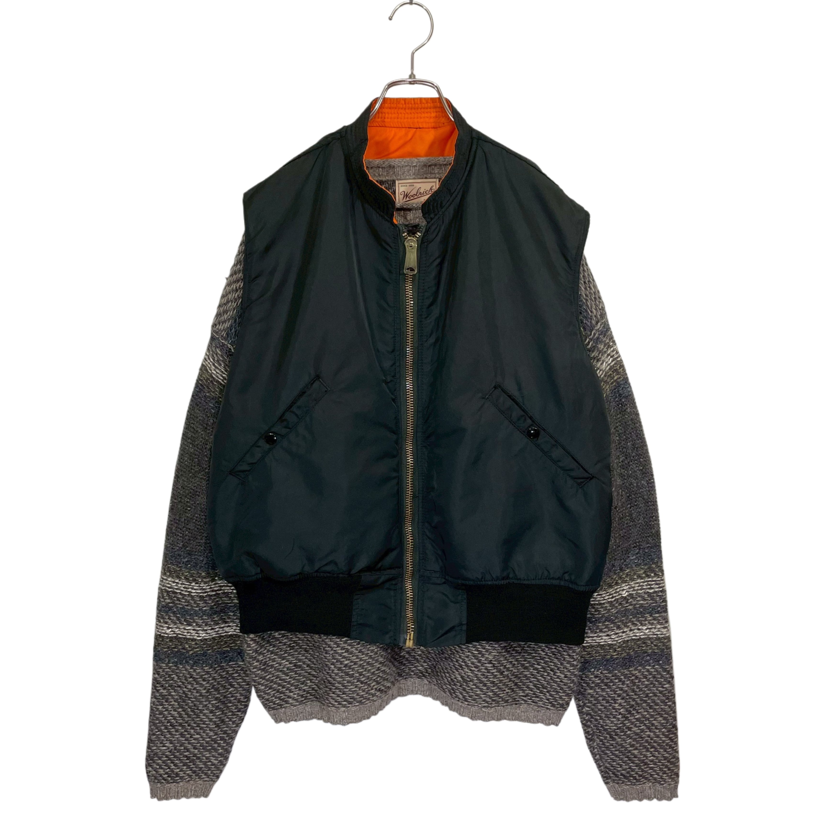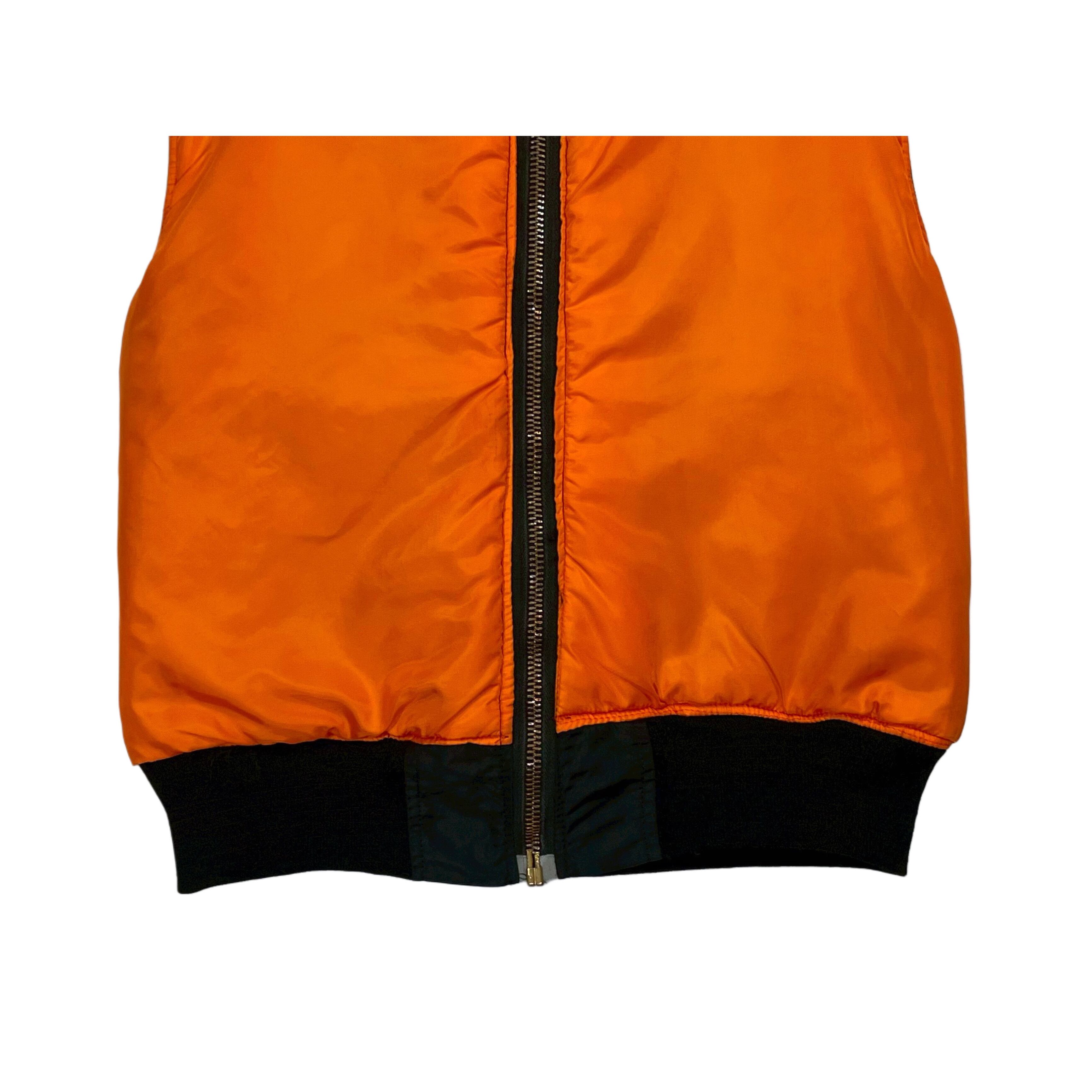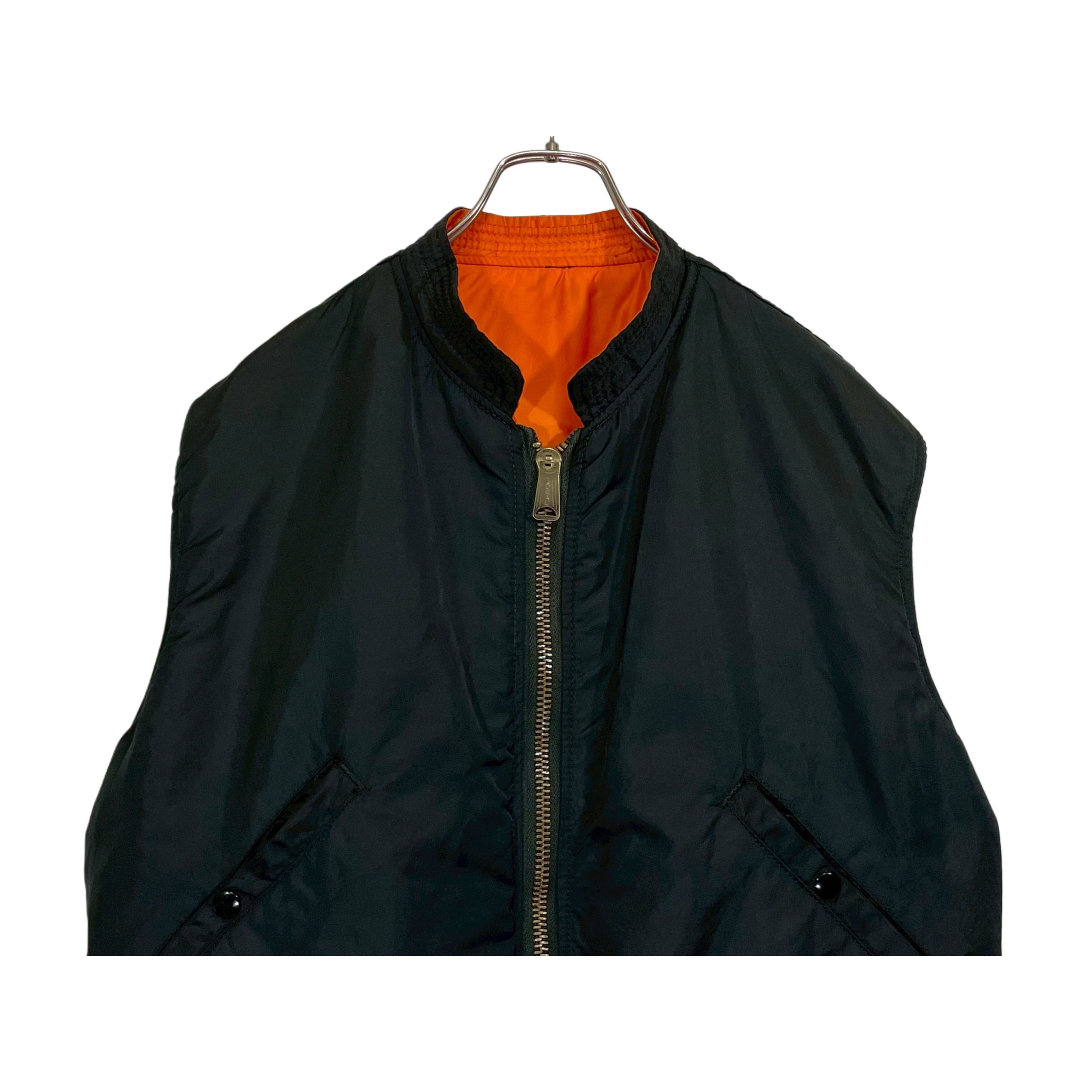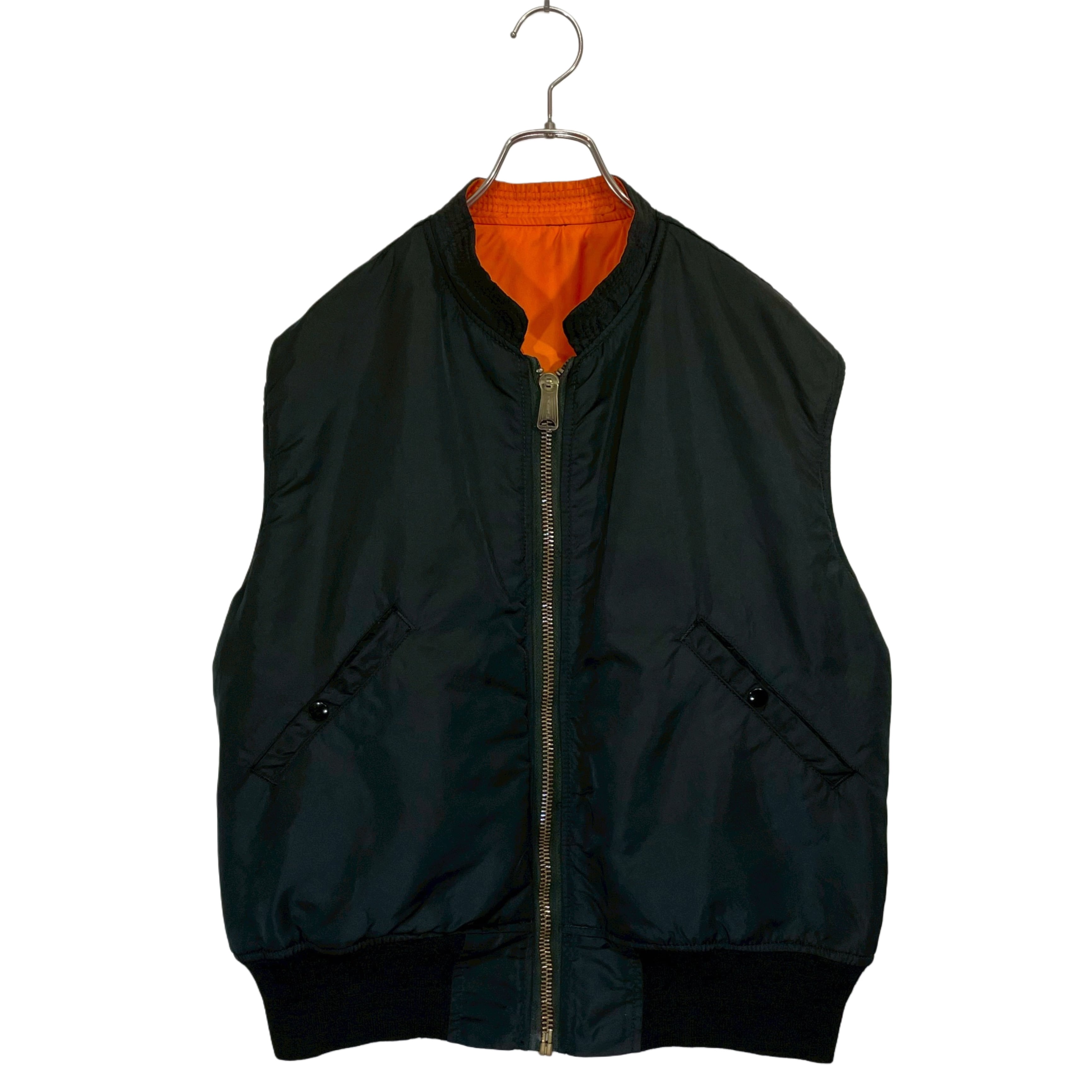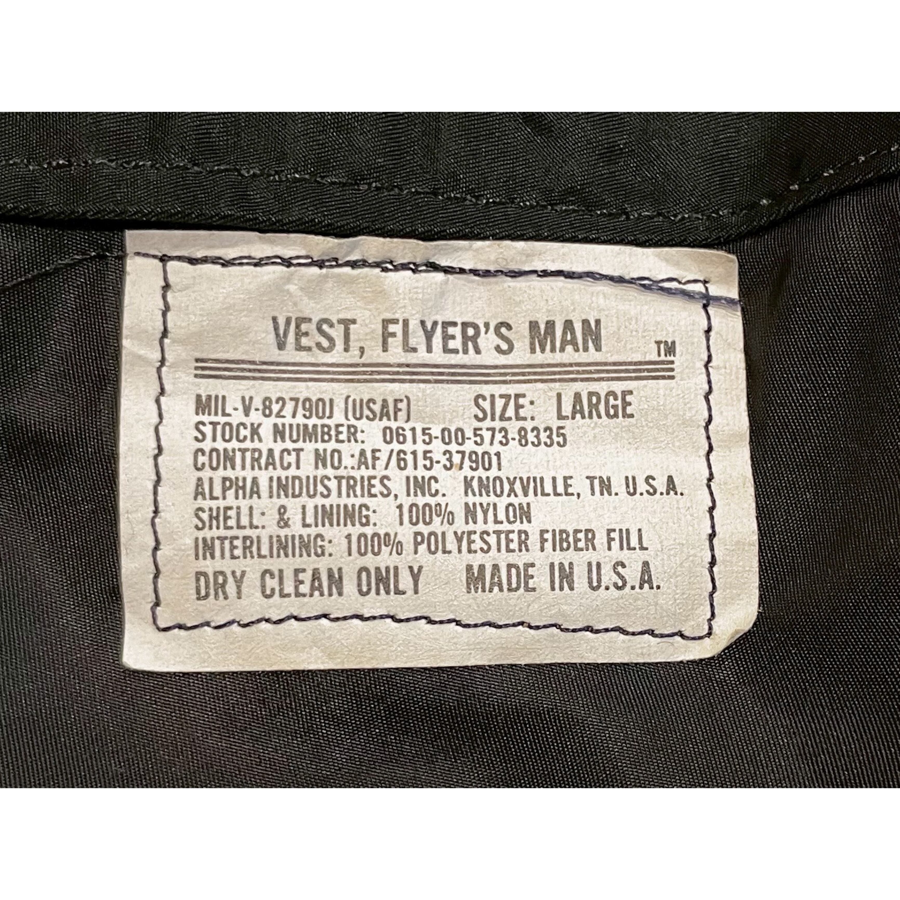 90s ALPHA INDUSTRIES "VEST FLYERS MAN" black nylon padded stand collar sleeveless flight jacket
