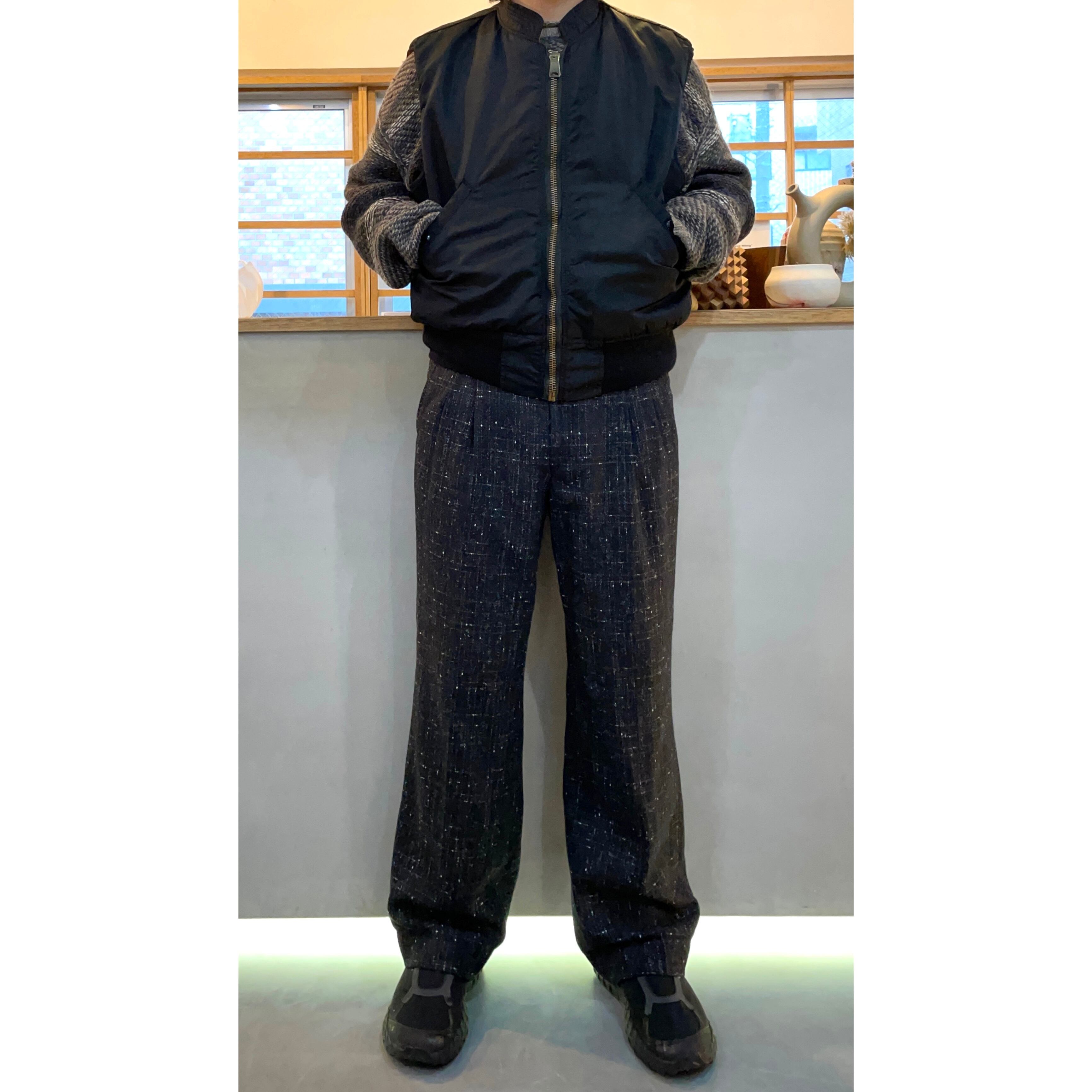 ニットやその他と重ねるだけで、異素材切り替え的なルックスに