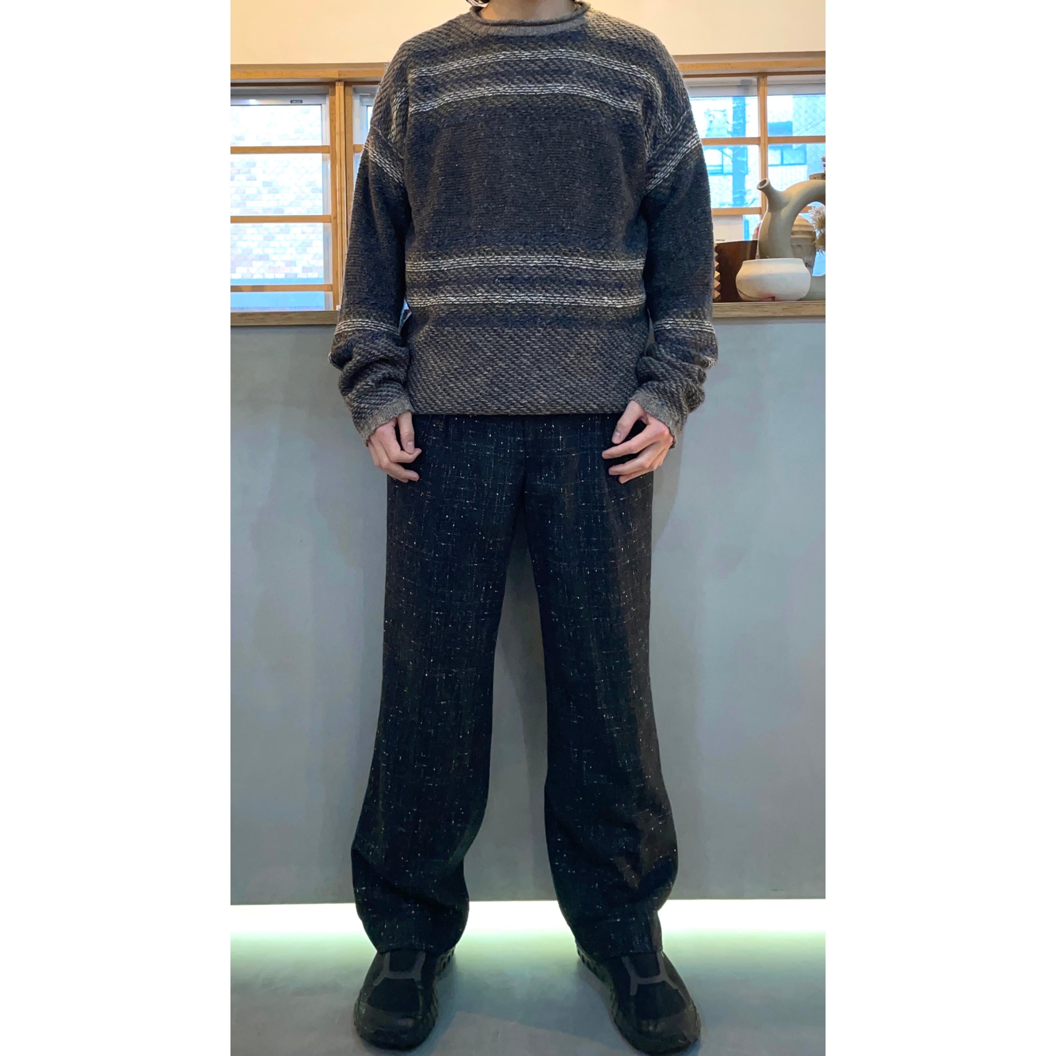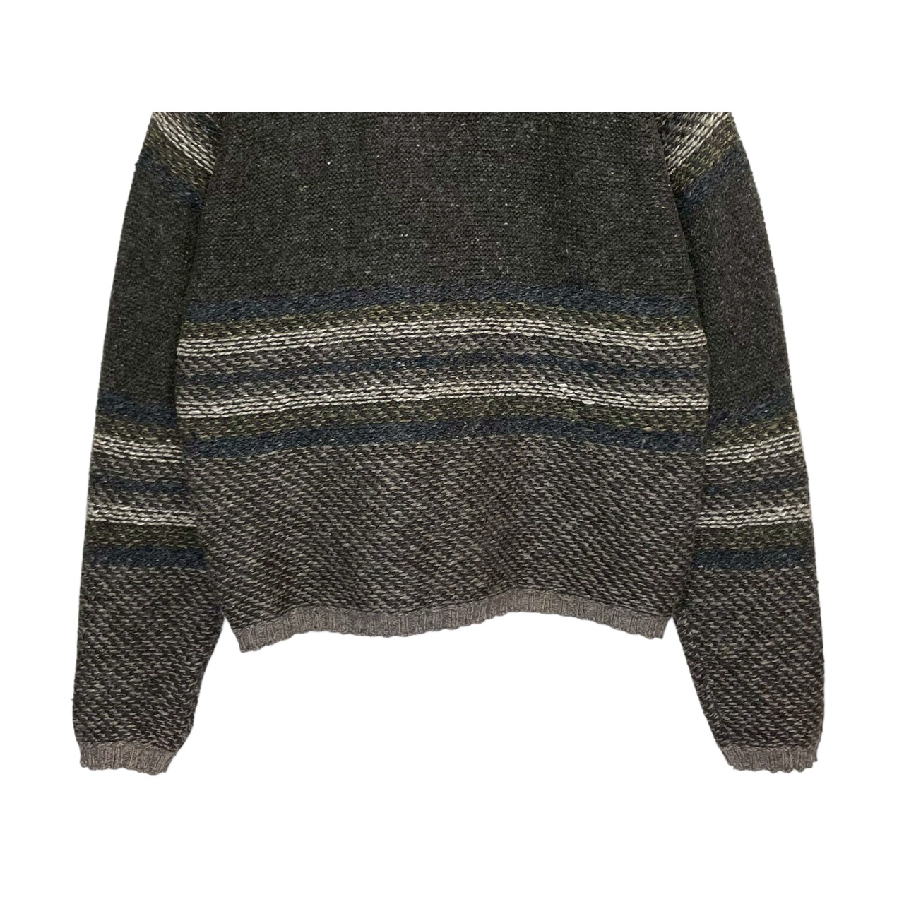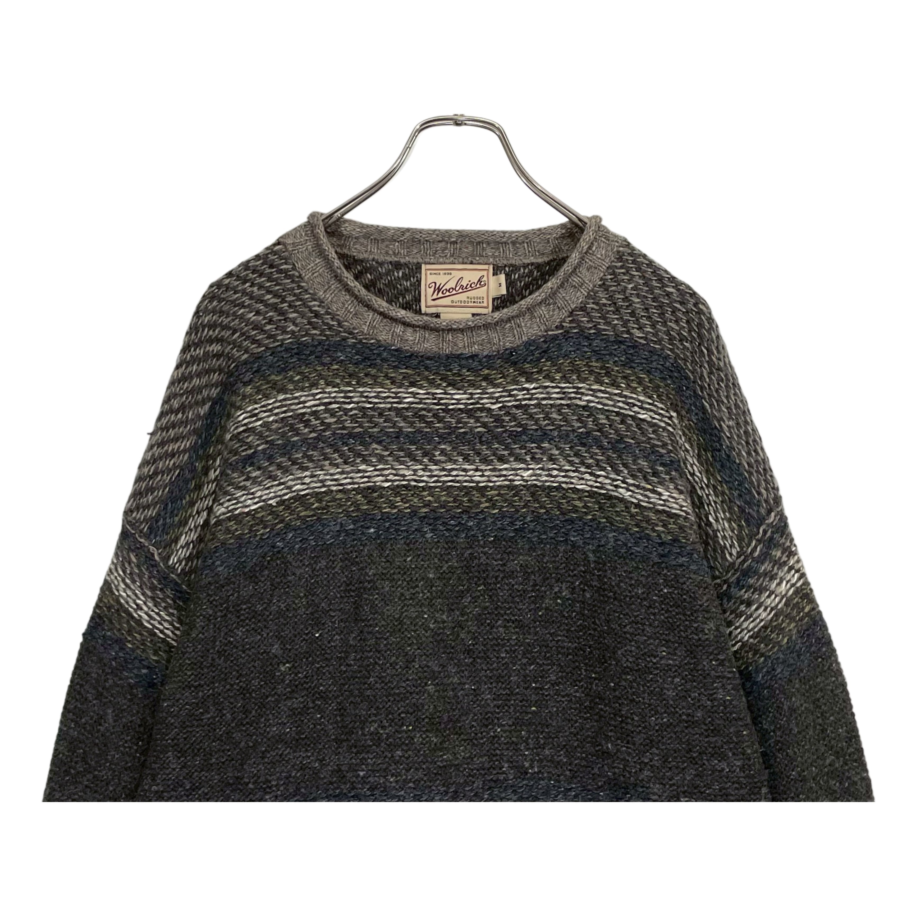 90s- woolrich mix grey stripe pattern cotton× wool crewneck pullover knit sweater