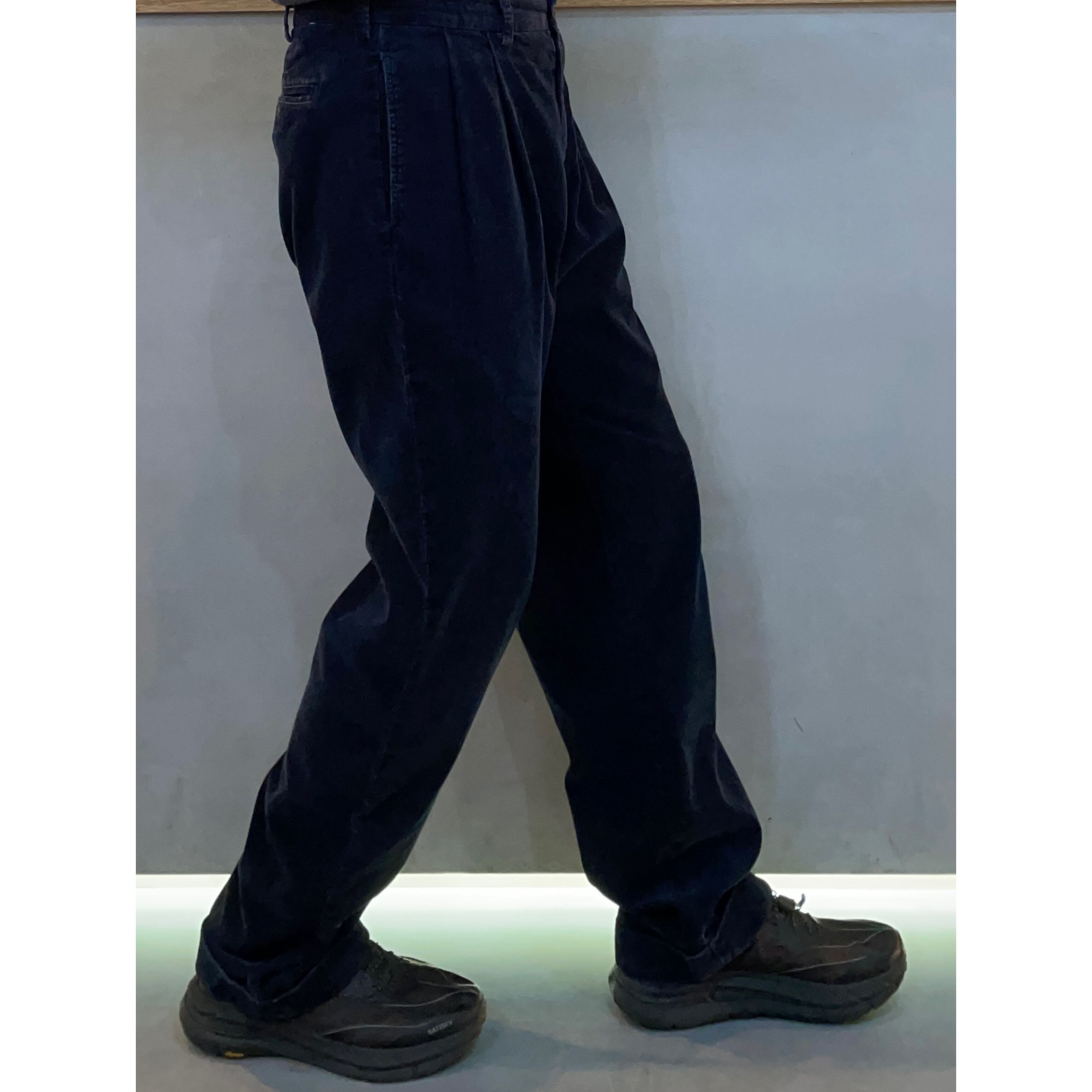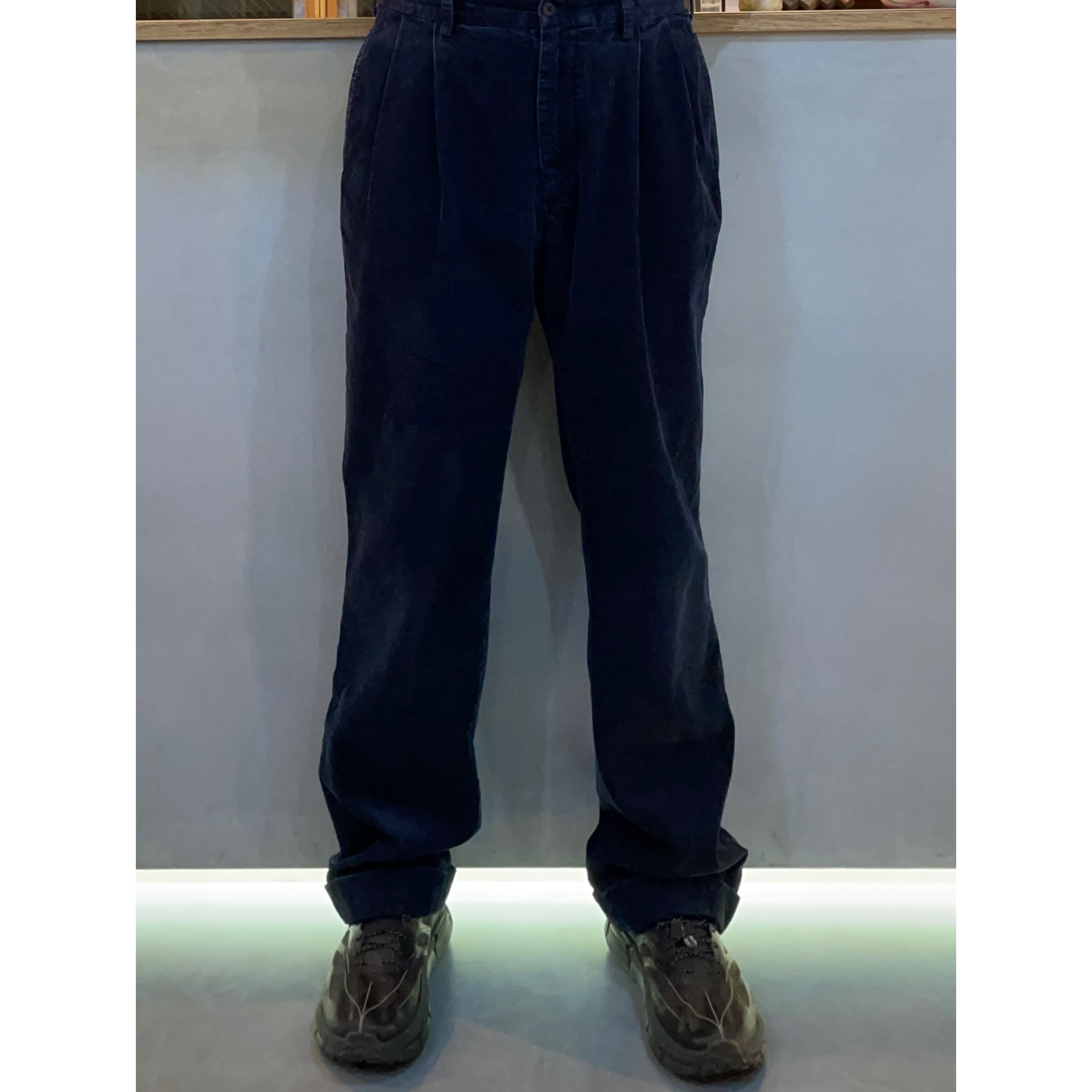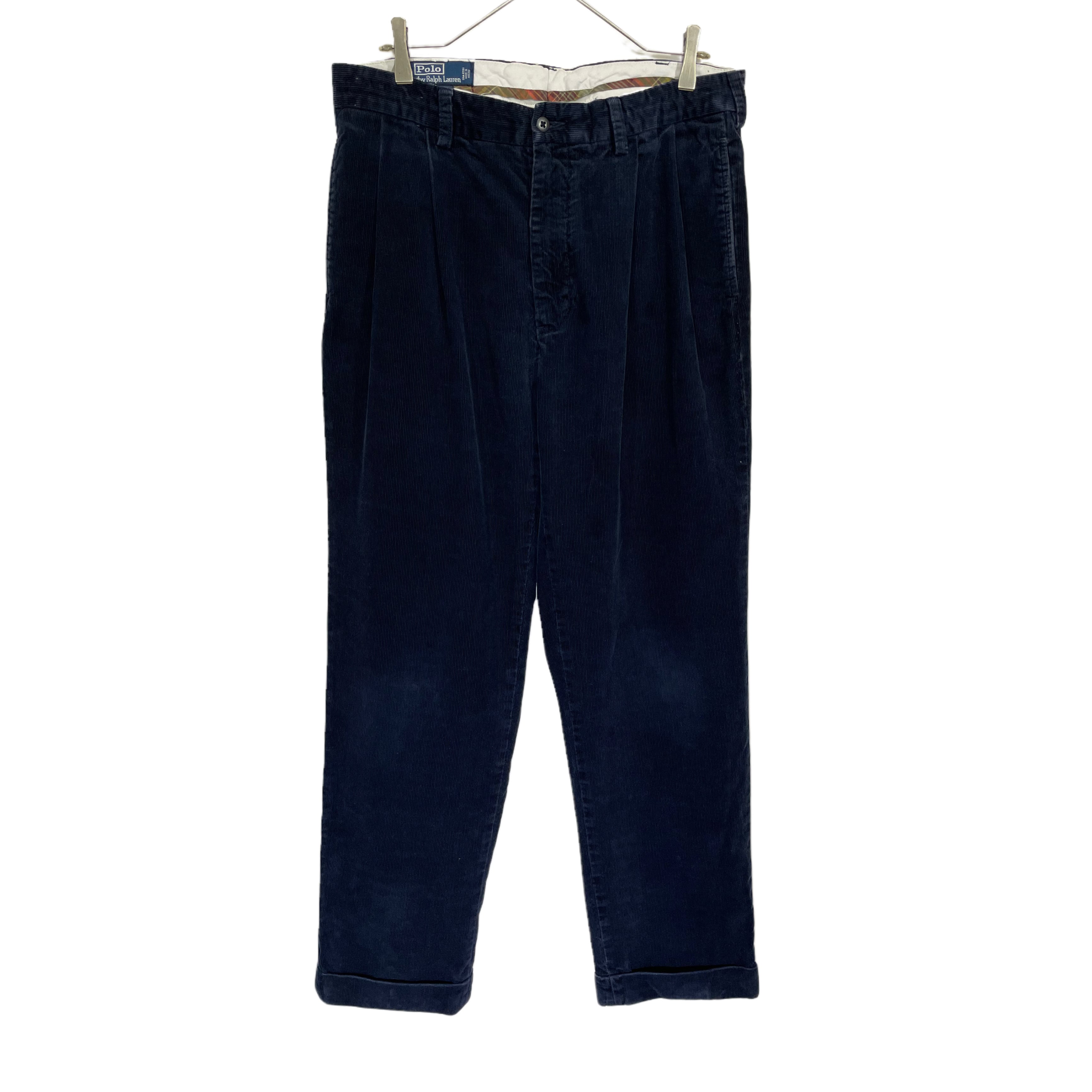 90s Polo Ralph Lauren "HAMOND PANTS" navy cotton cords tuck wide pants
