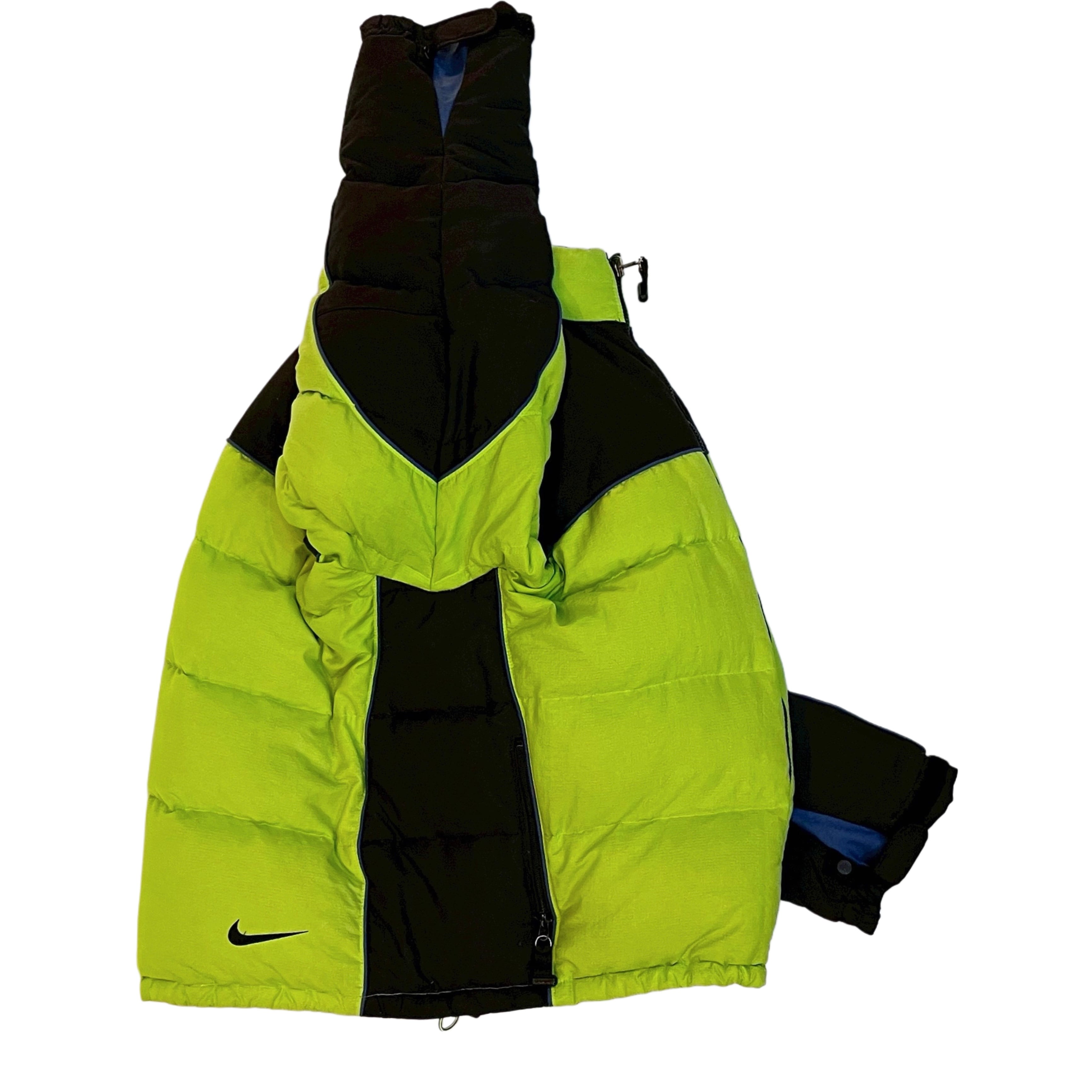 90s NIKE ACG nen green/black nylon duck down insulated hi neck zip up down jacket
