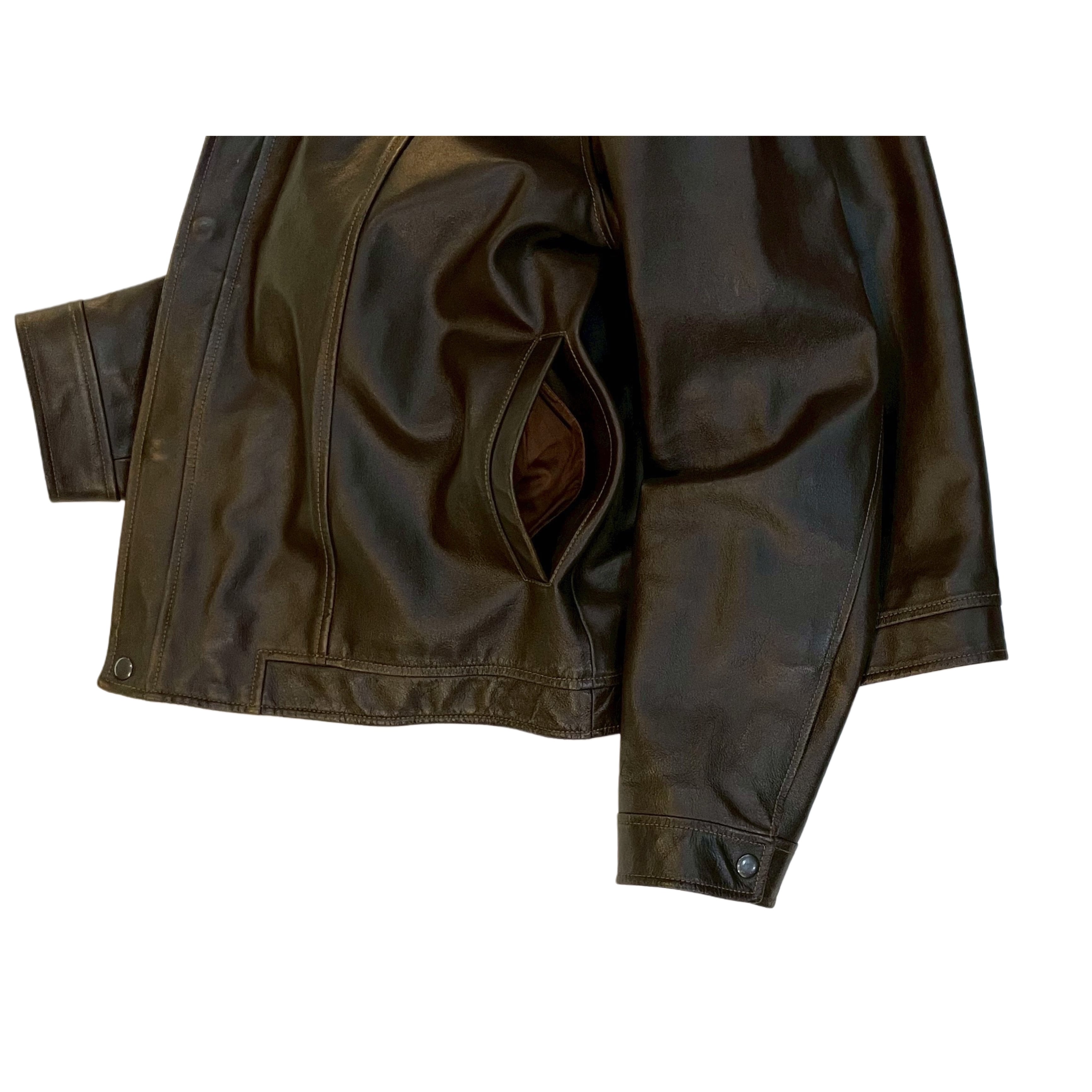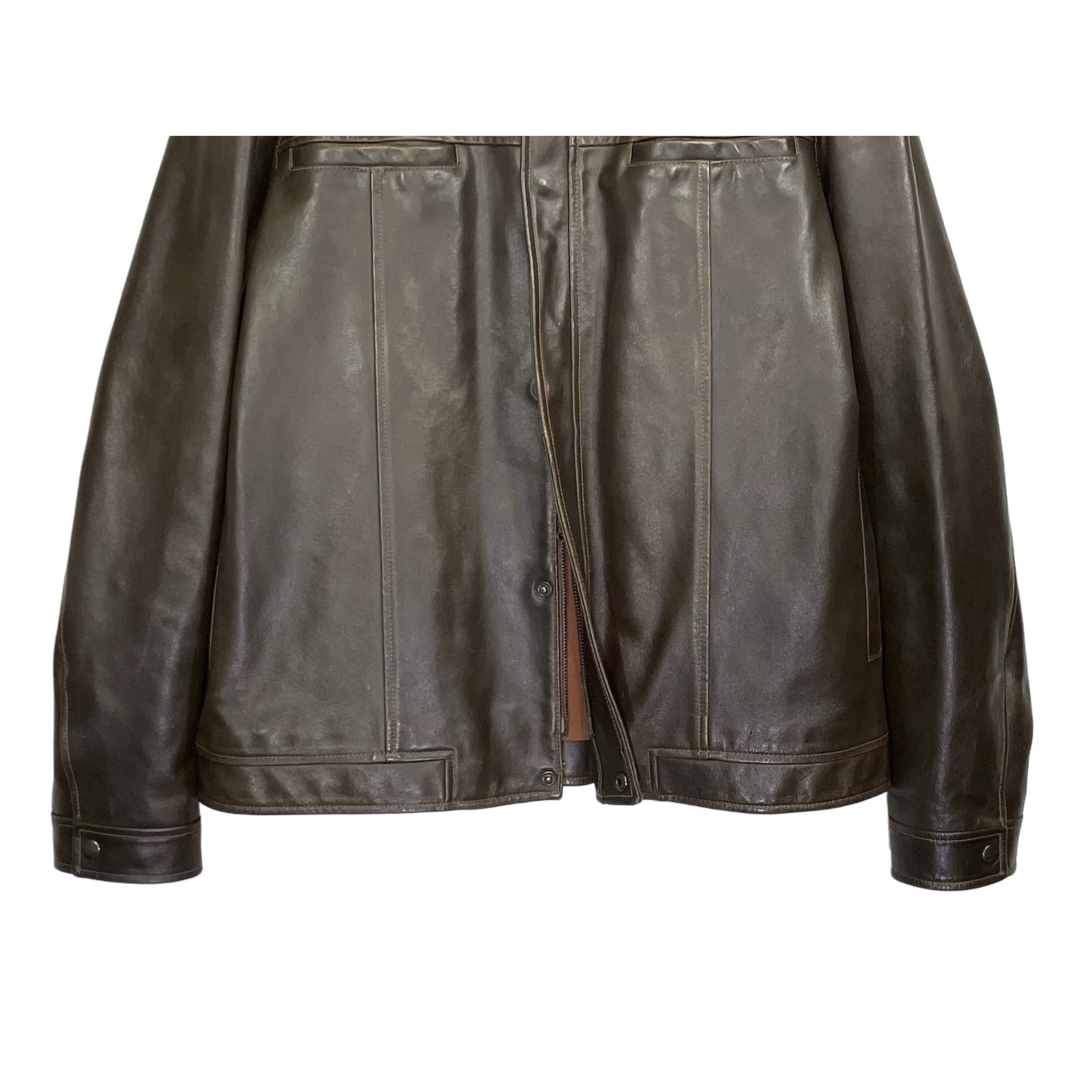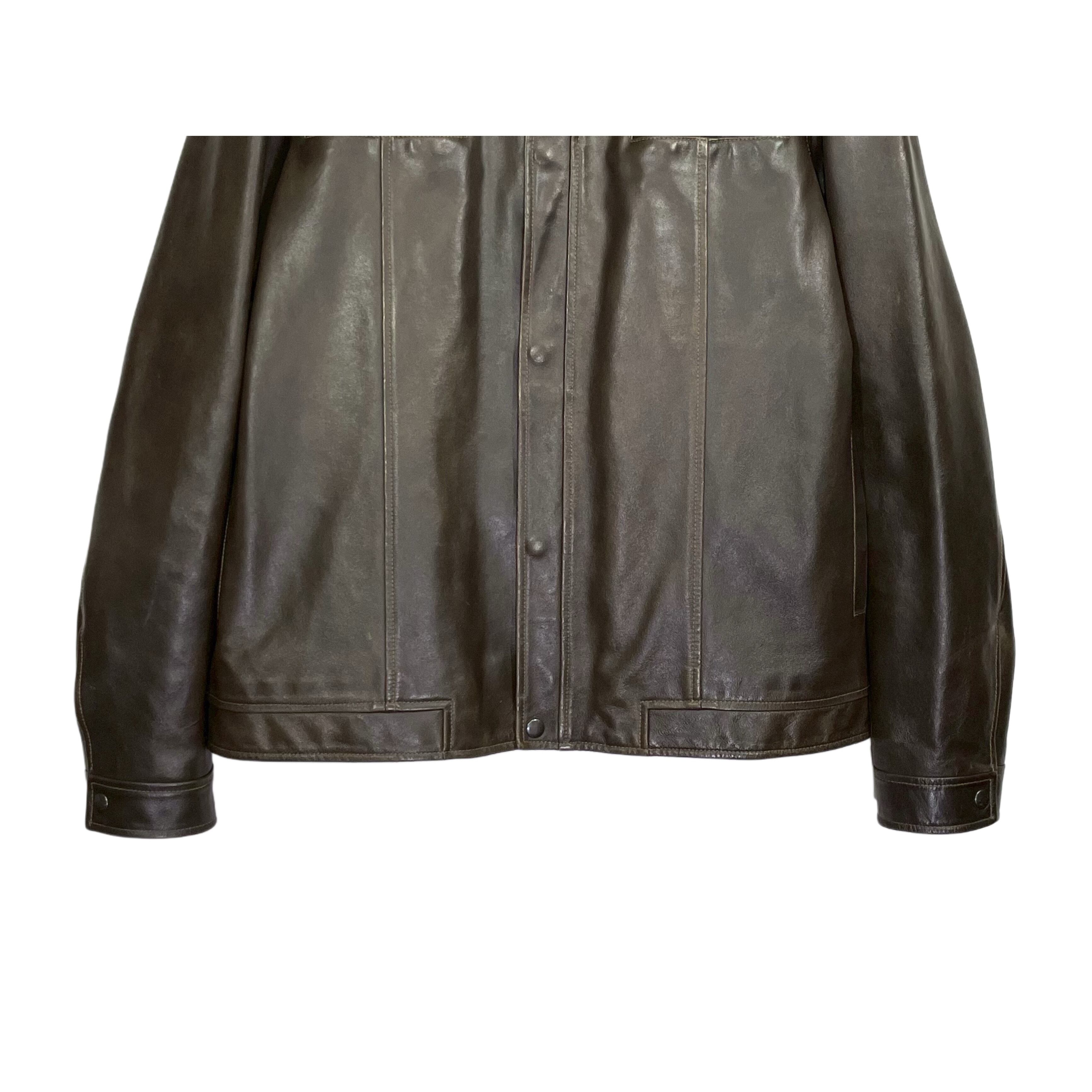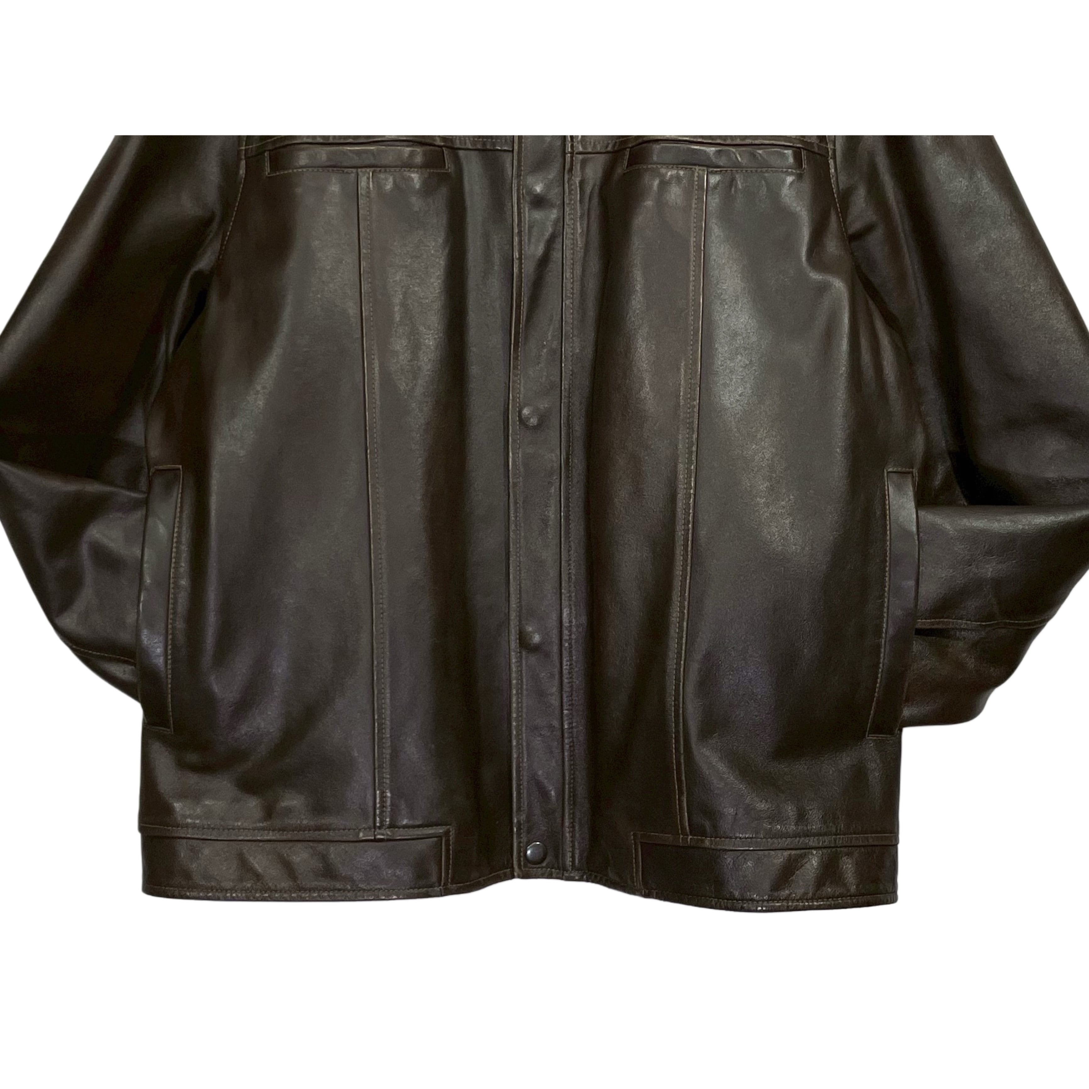 00s GAP brown cow lather cotton lined snap botton double zip fly front zip up jacket