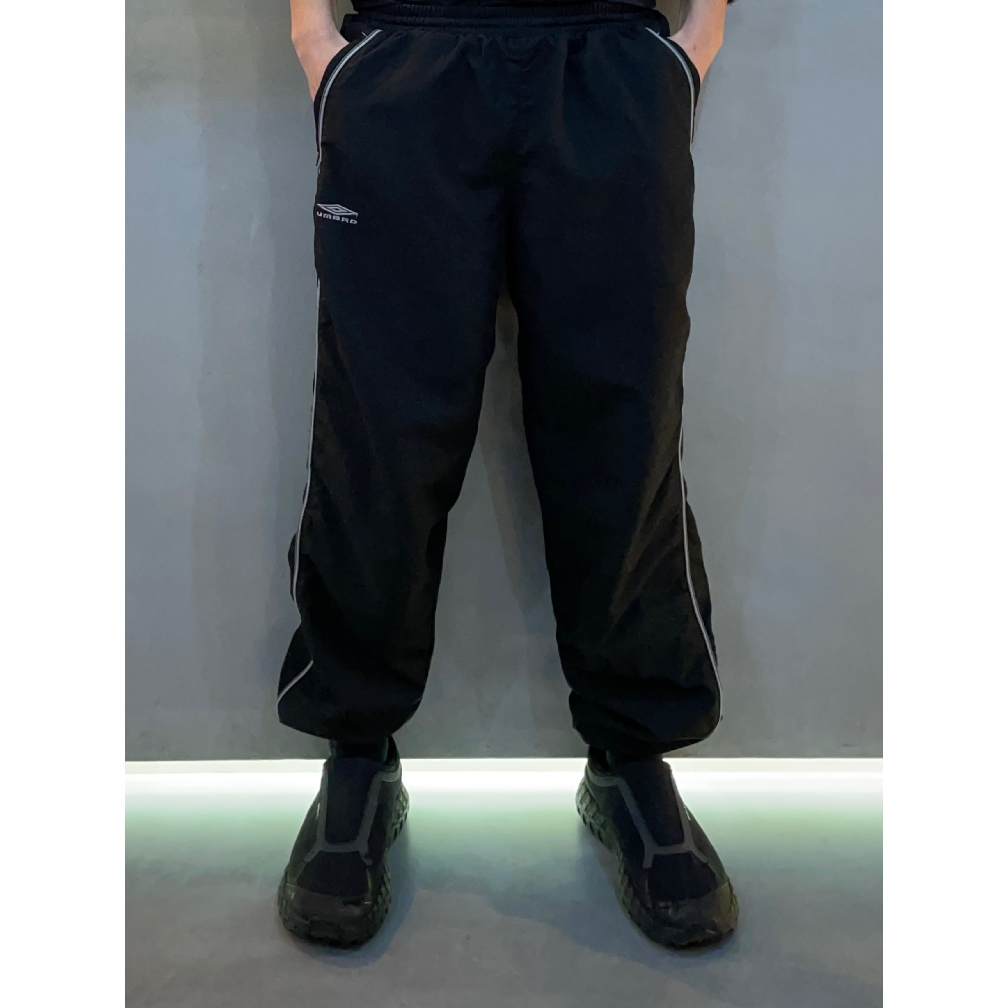UMBRO black polyester mesh lining side line embroidery logo side zip pants
