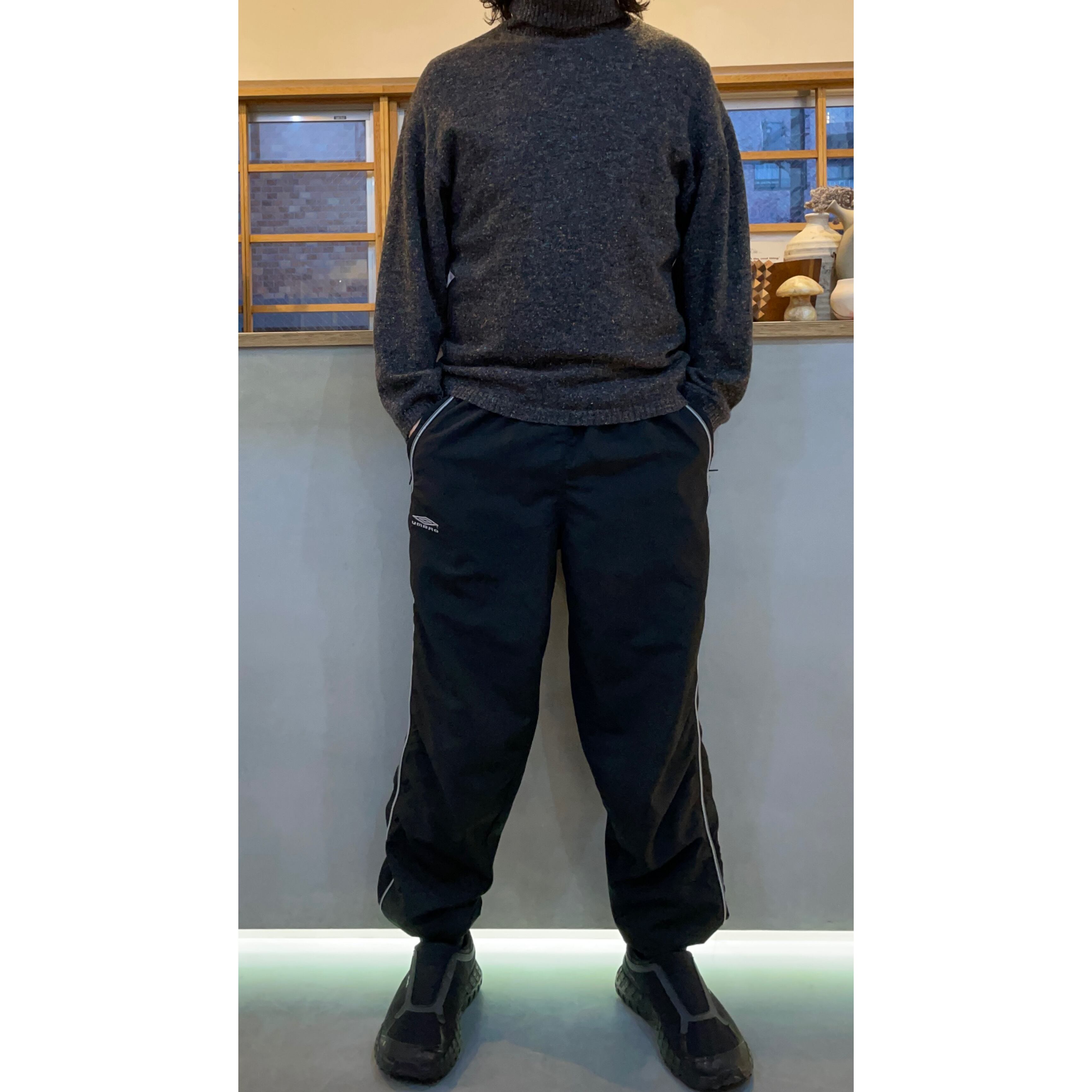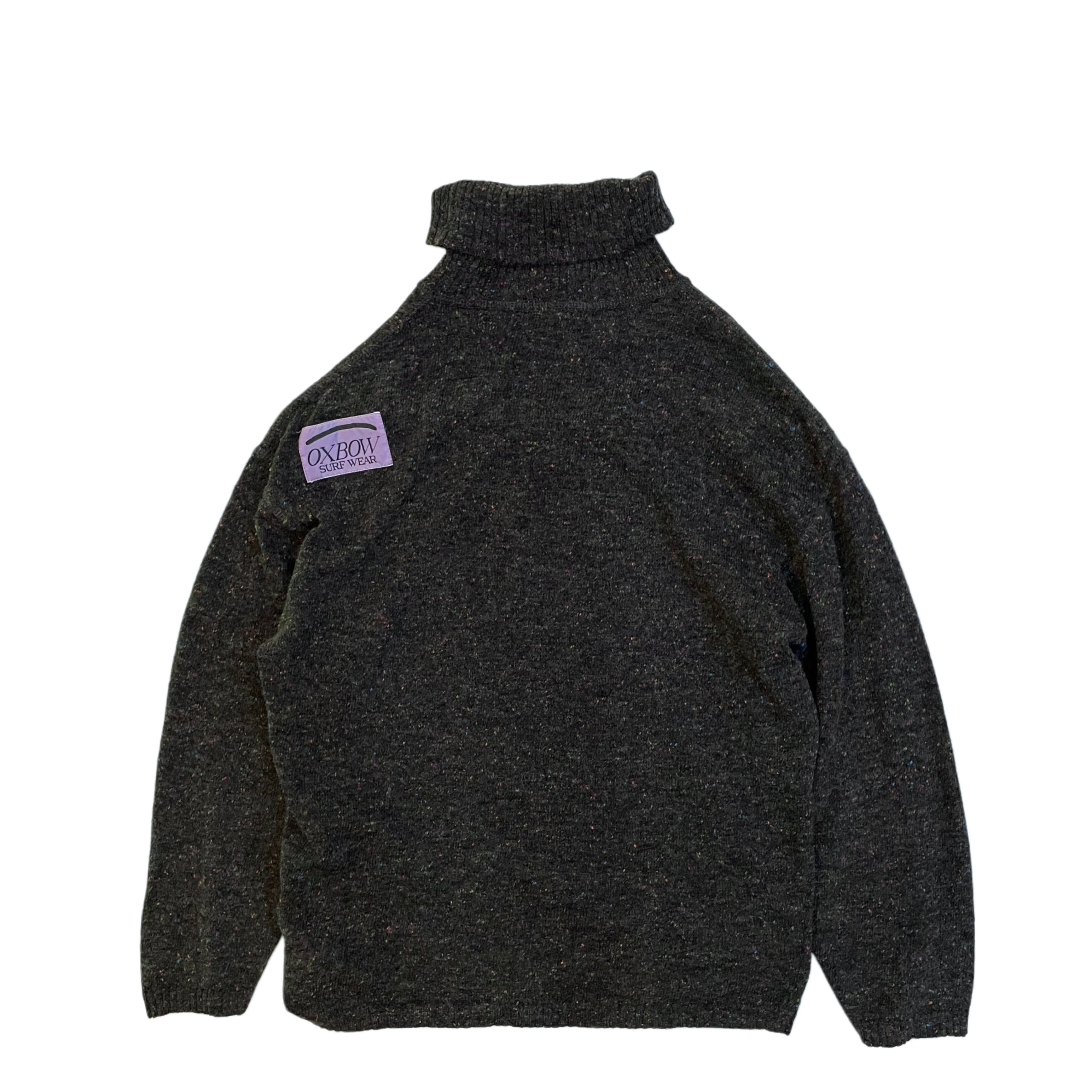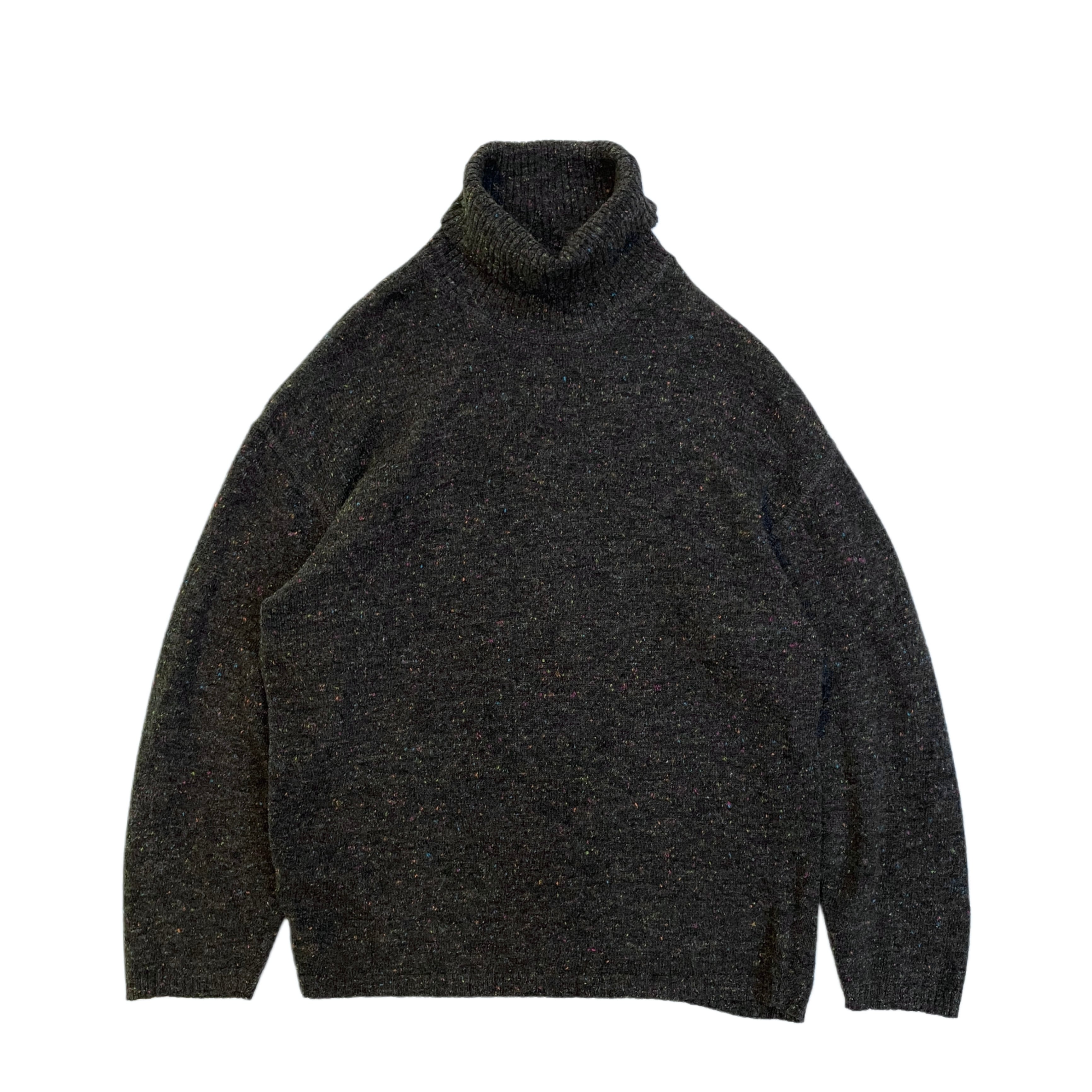 -90s OXBOW charcoal grey color nep mix wool×Acrylic turtle neck pullover knit sweater
