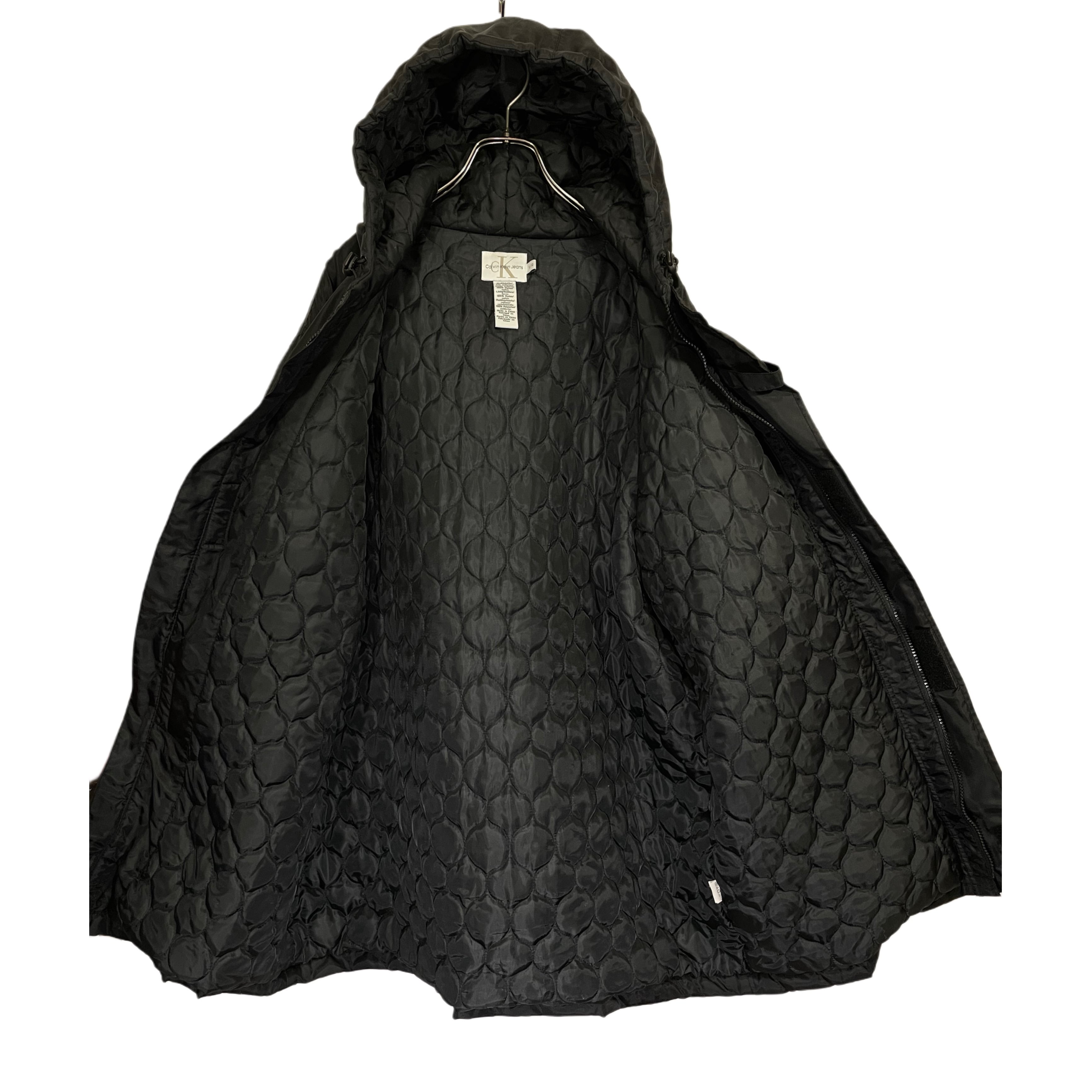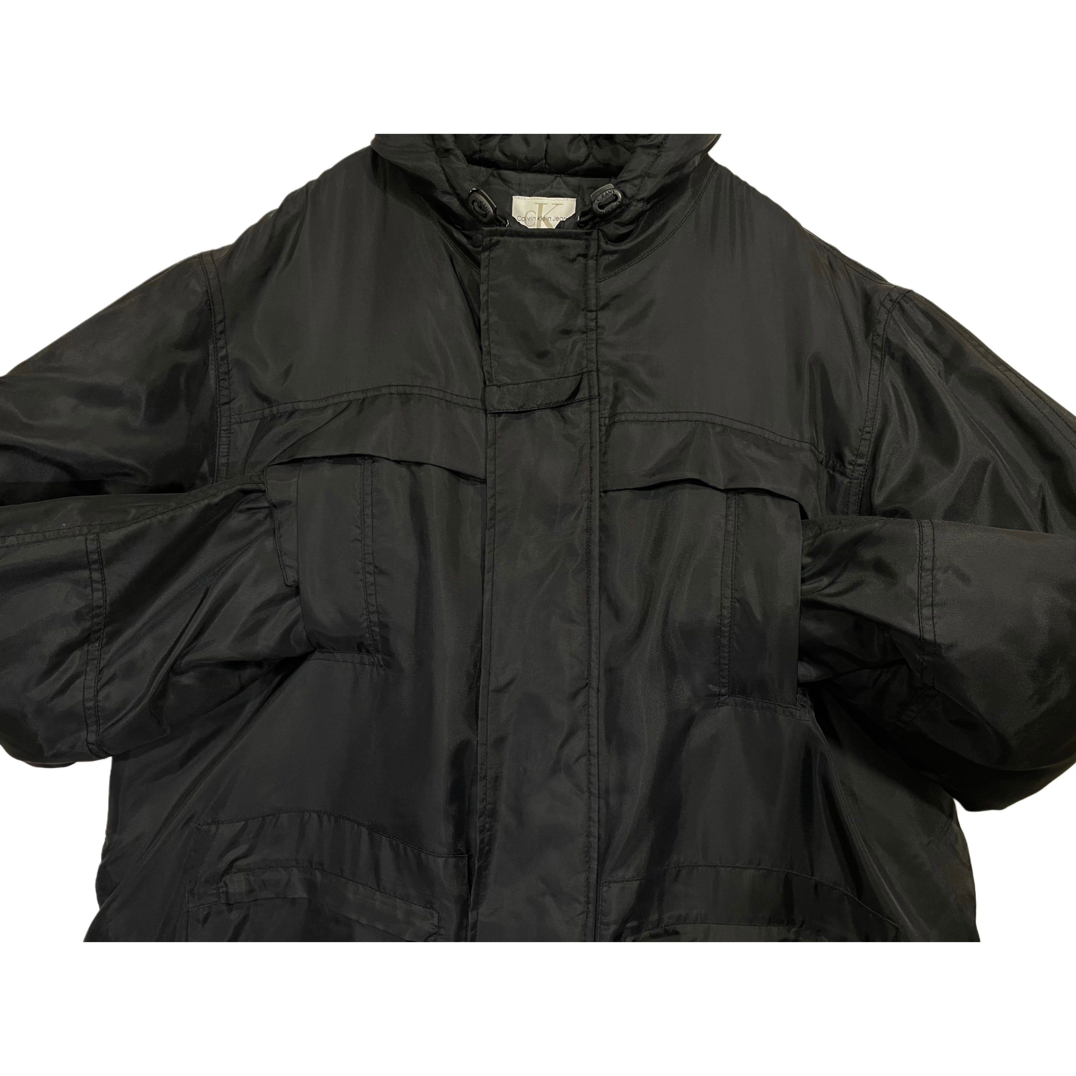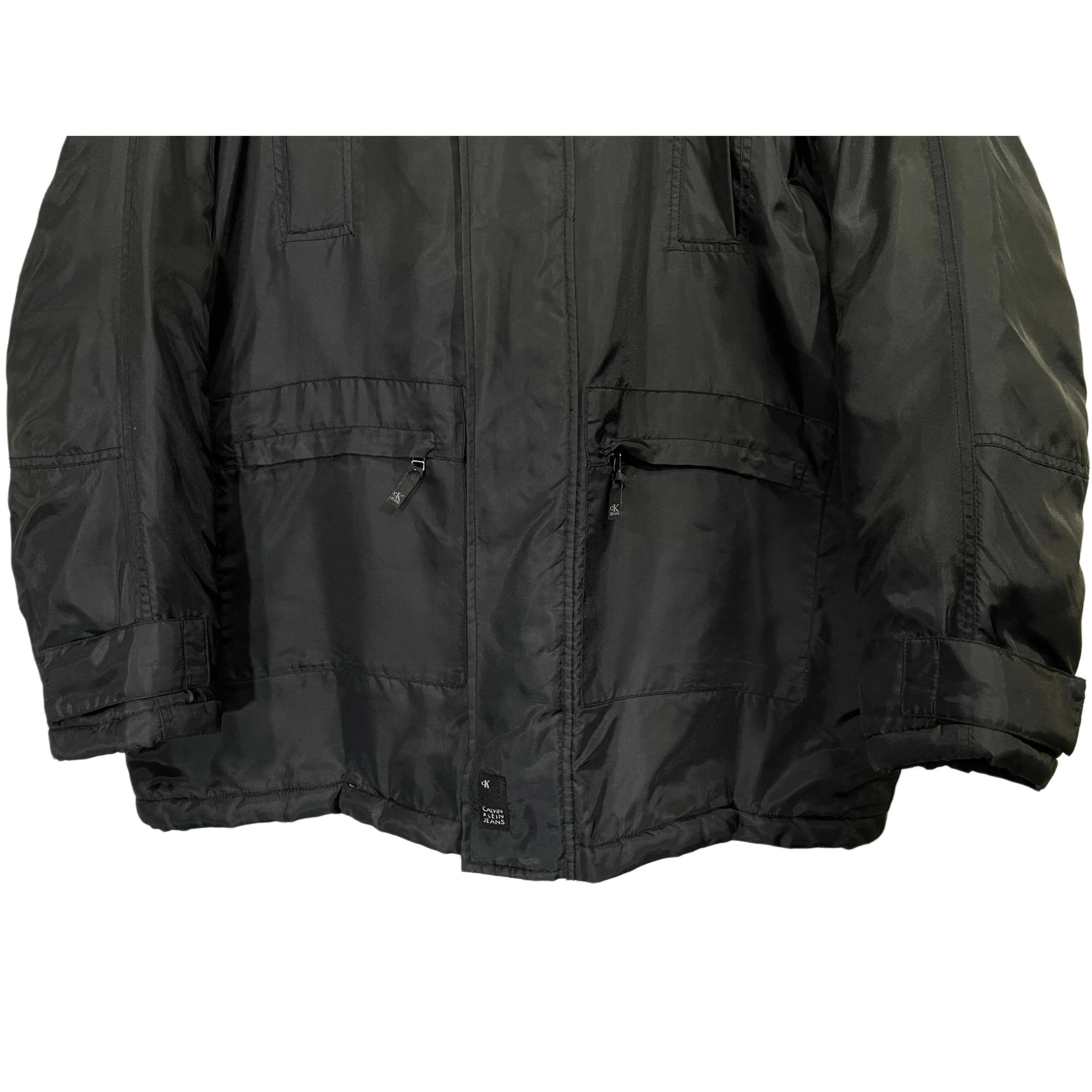 90s Calvin Klain jeans black nylon polyester quilted li ning zip up hooded jacket