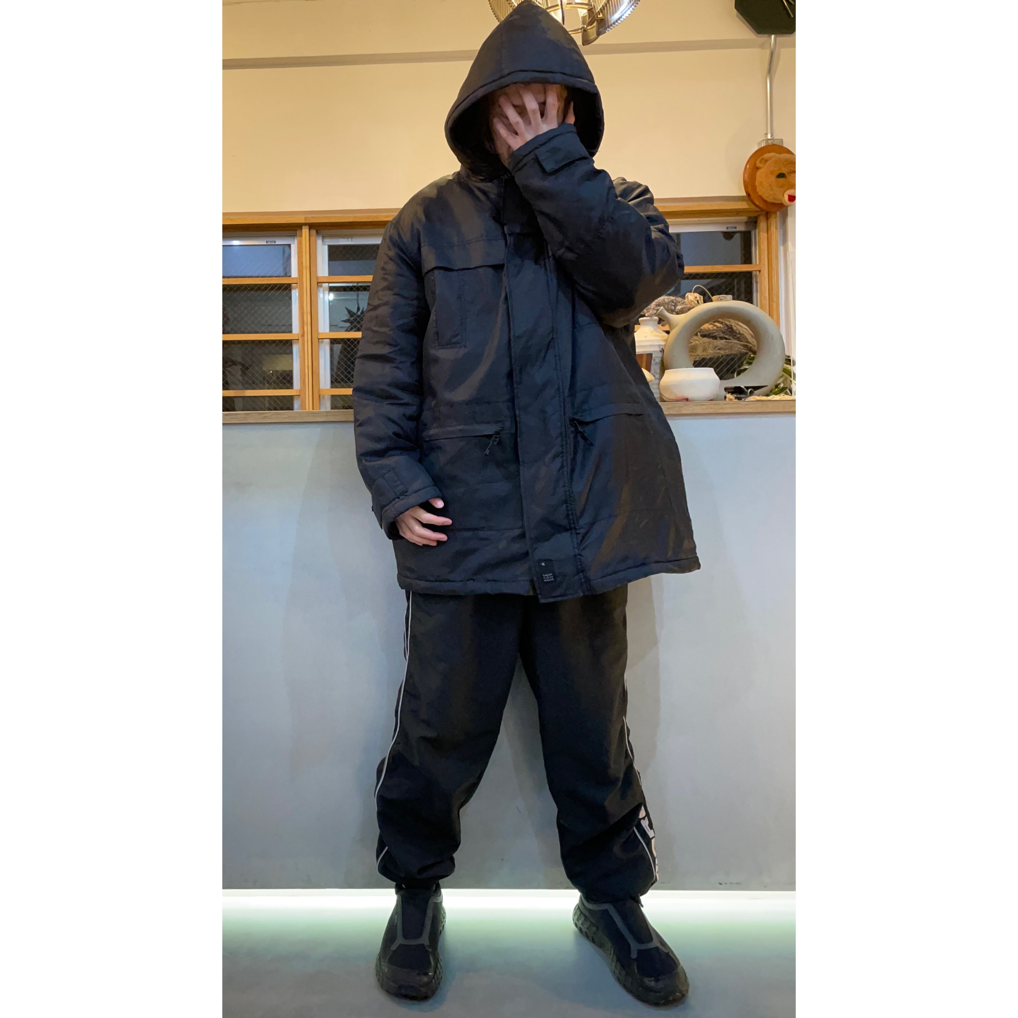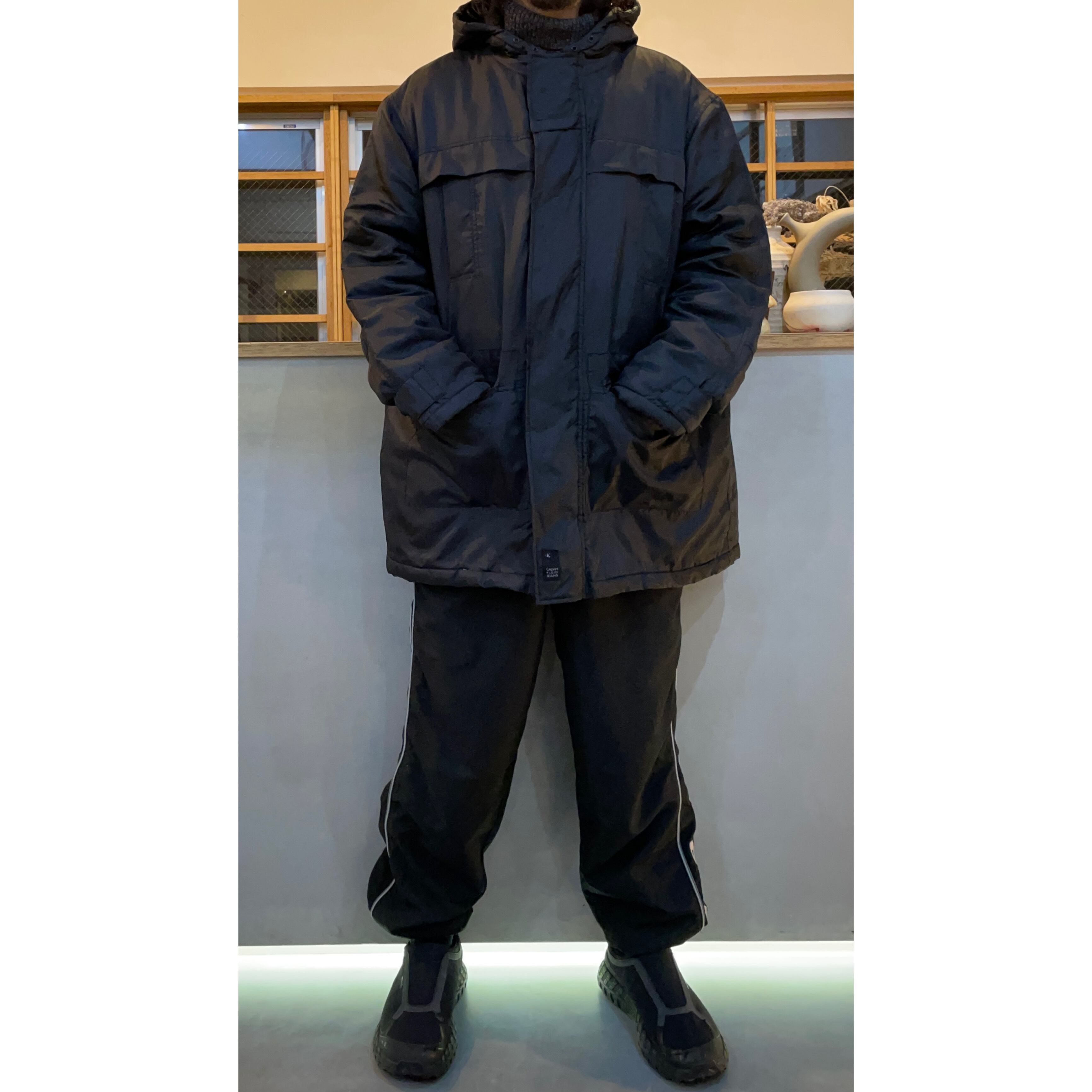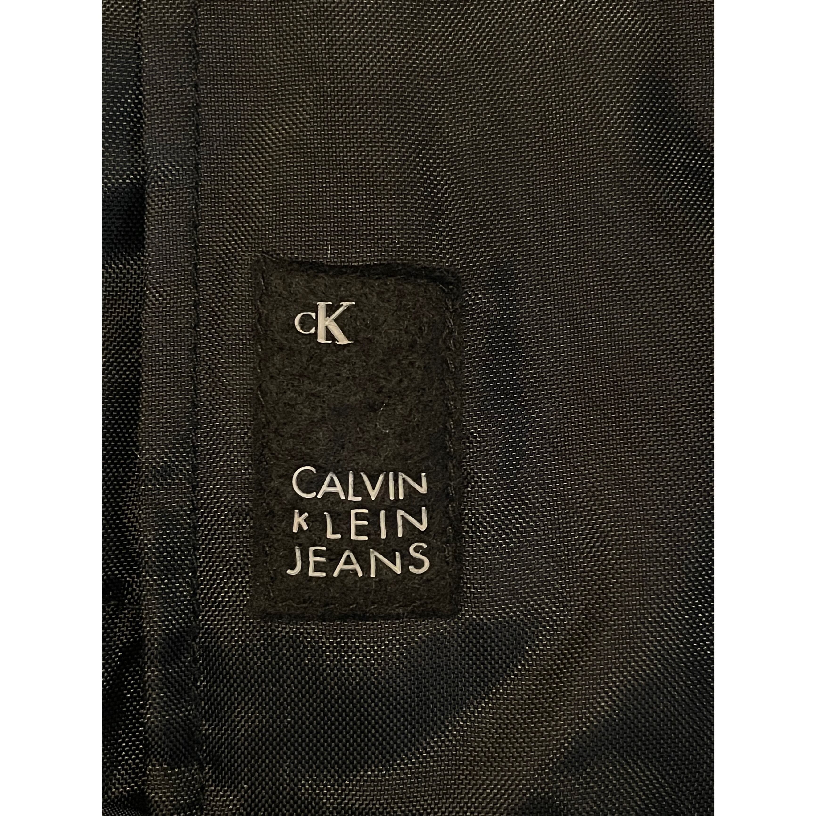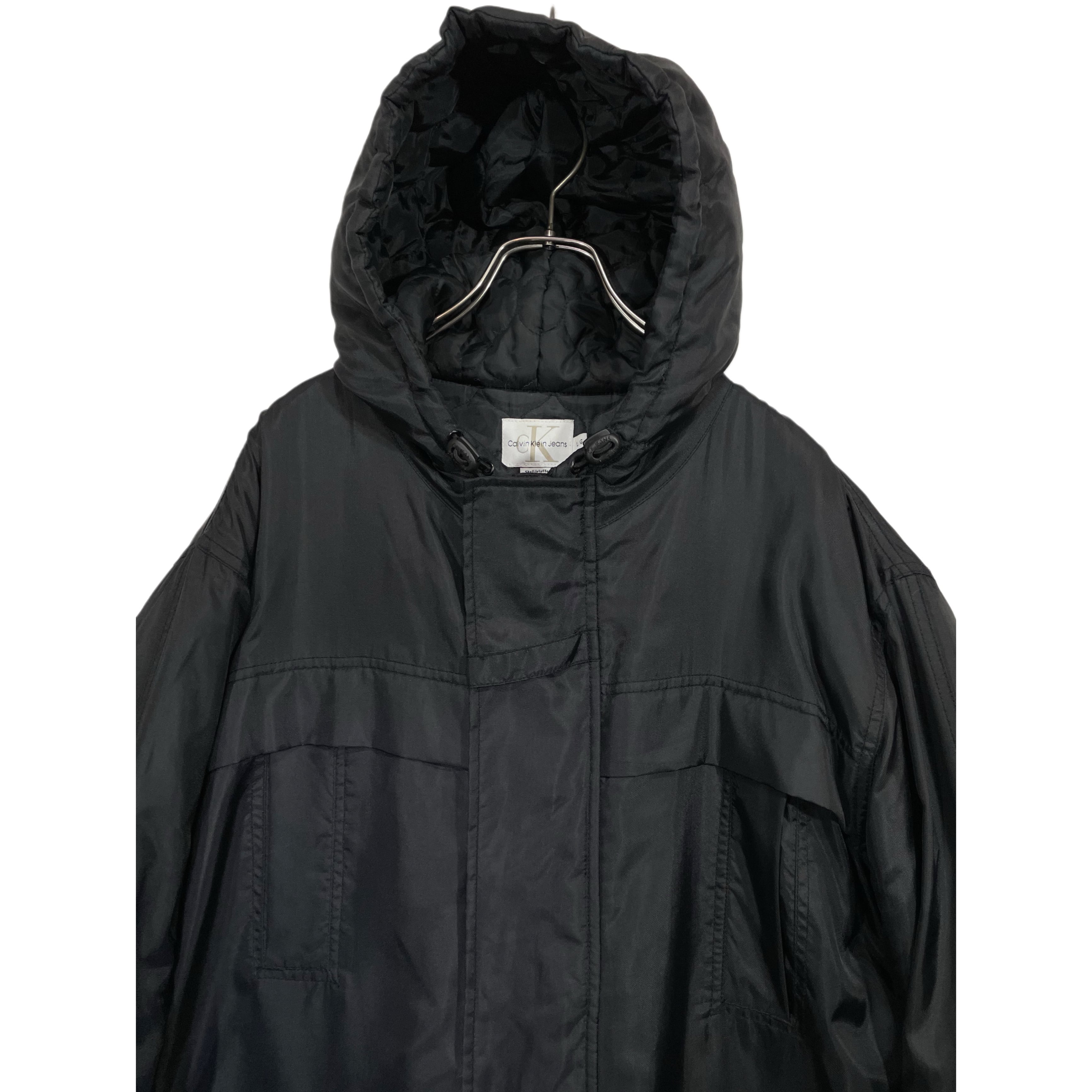 90s Calvin Klain jeans black nylon polyester quilted li ning zip up hooded jacket