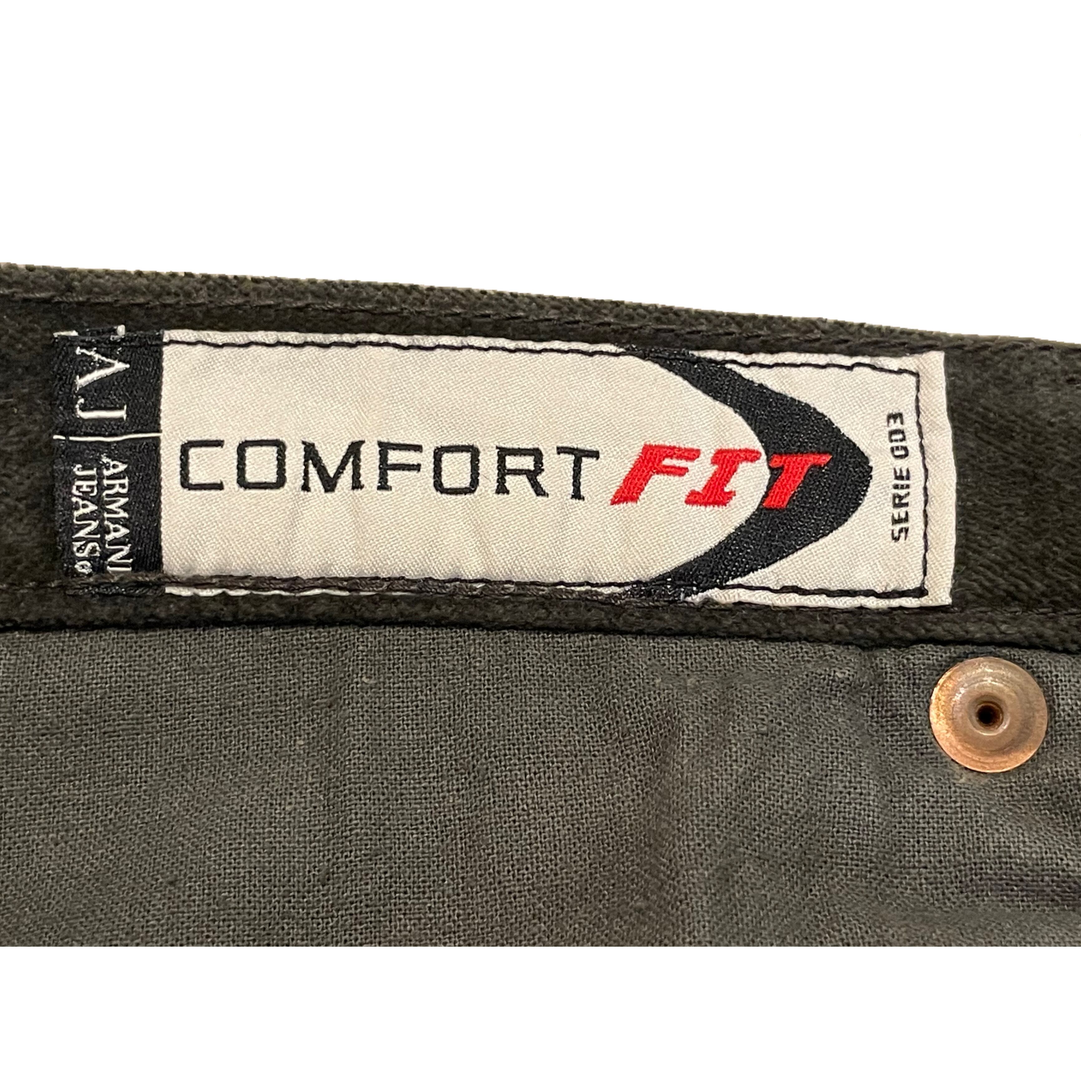 90s- ARMANI JEANS olive cotton strech velour 5 pocket pants