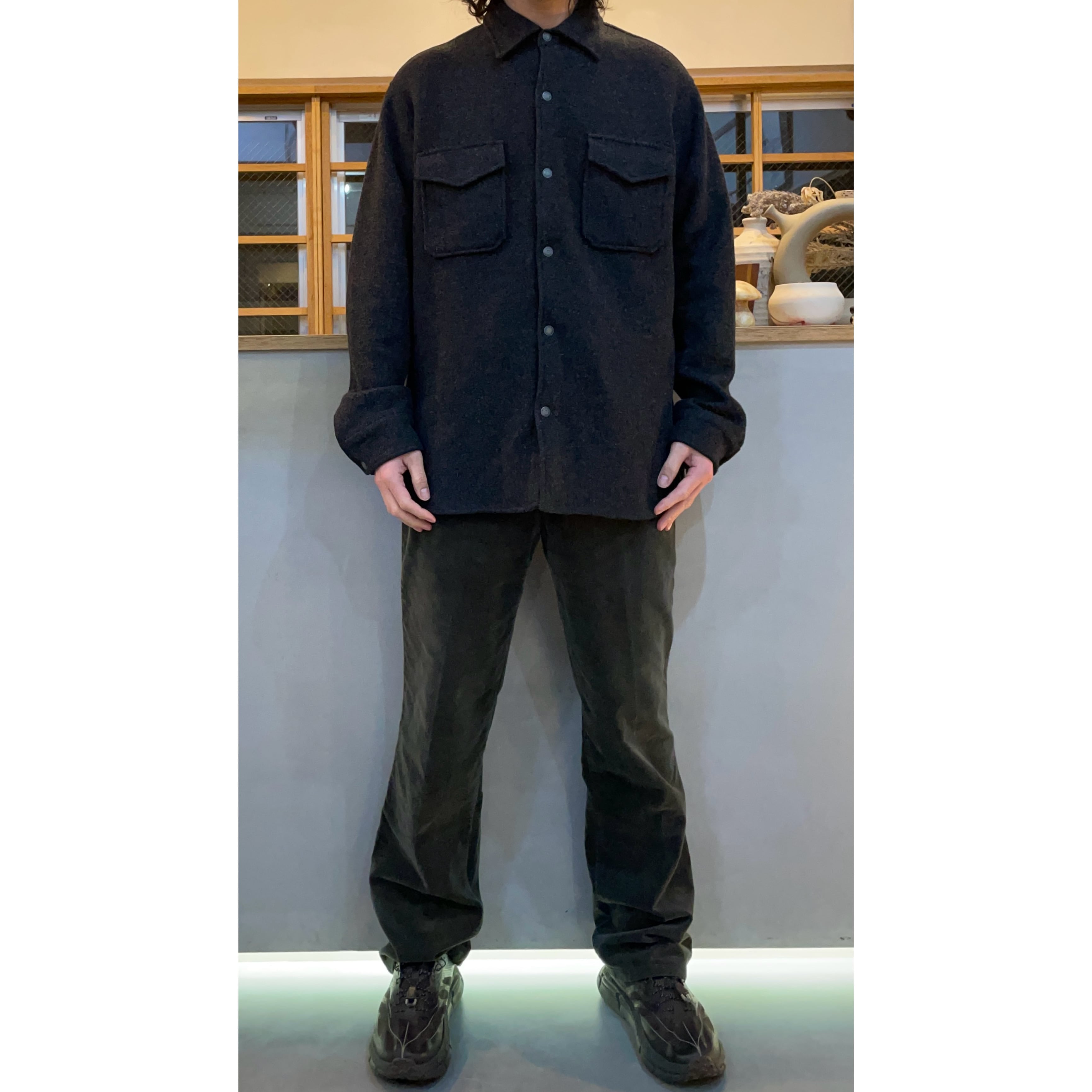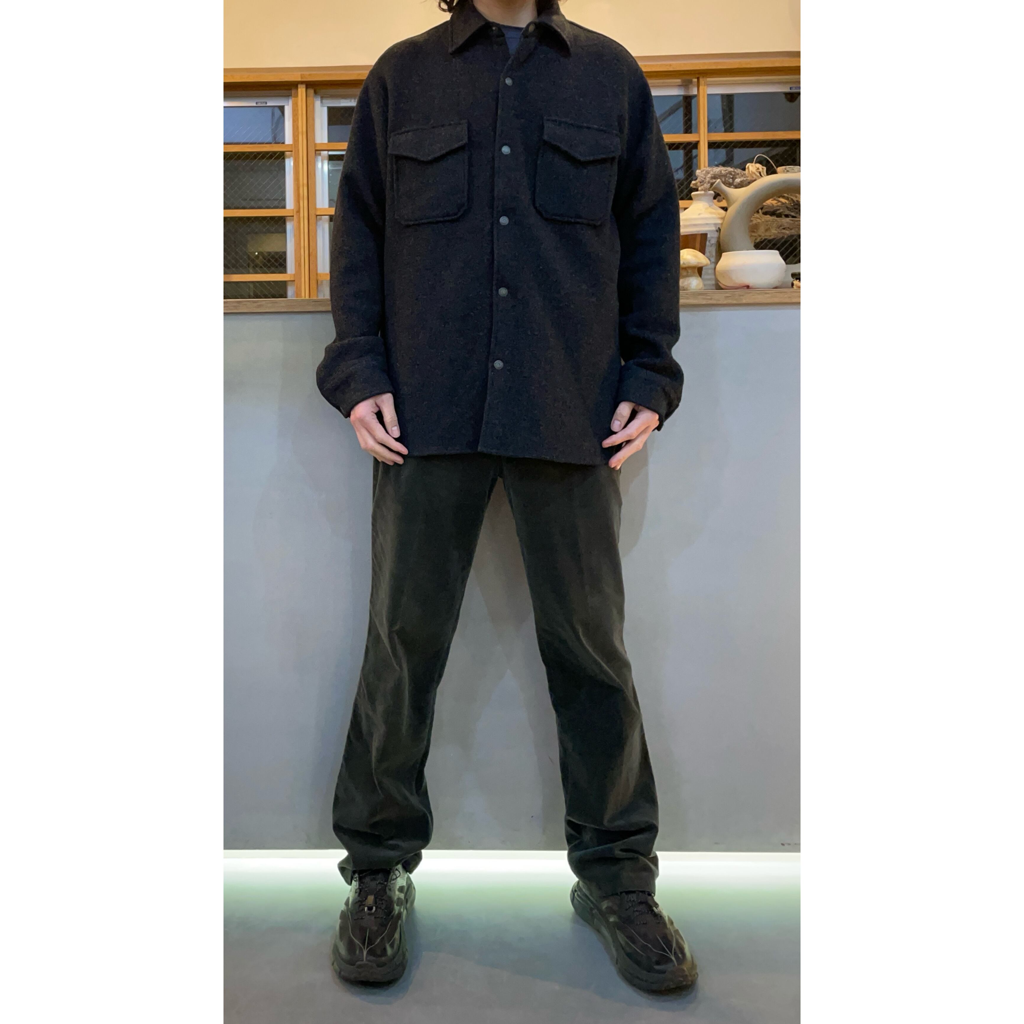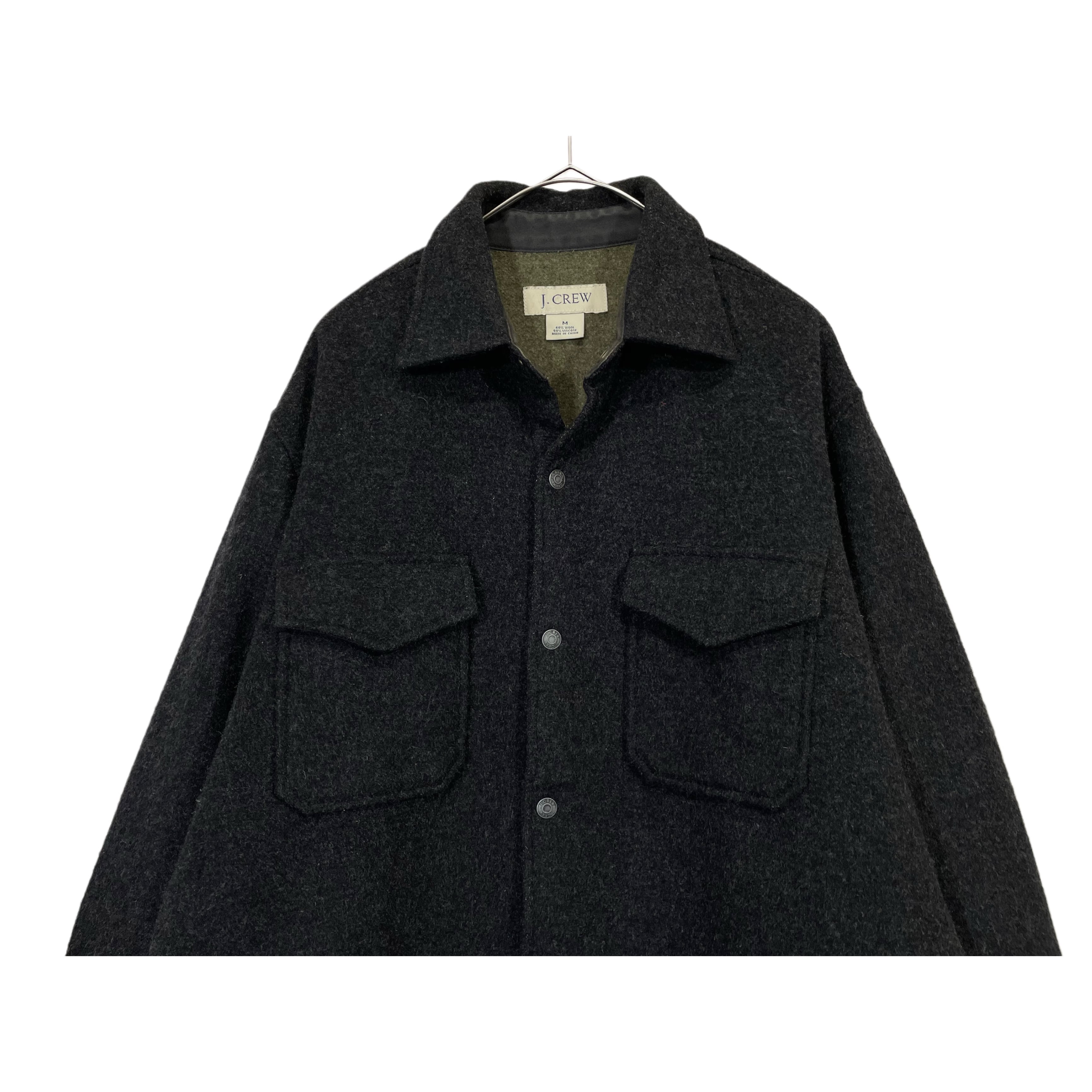 -00s J.CREW charcoal grey/olive woolxrayon snap botton CPO shirt