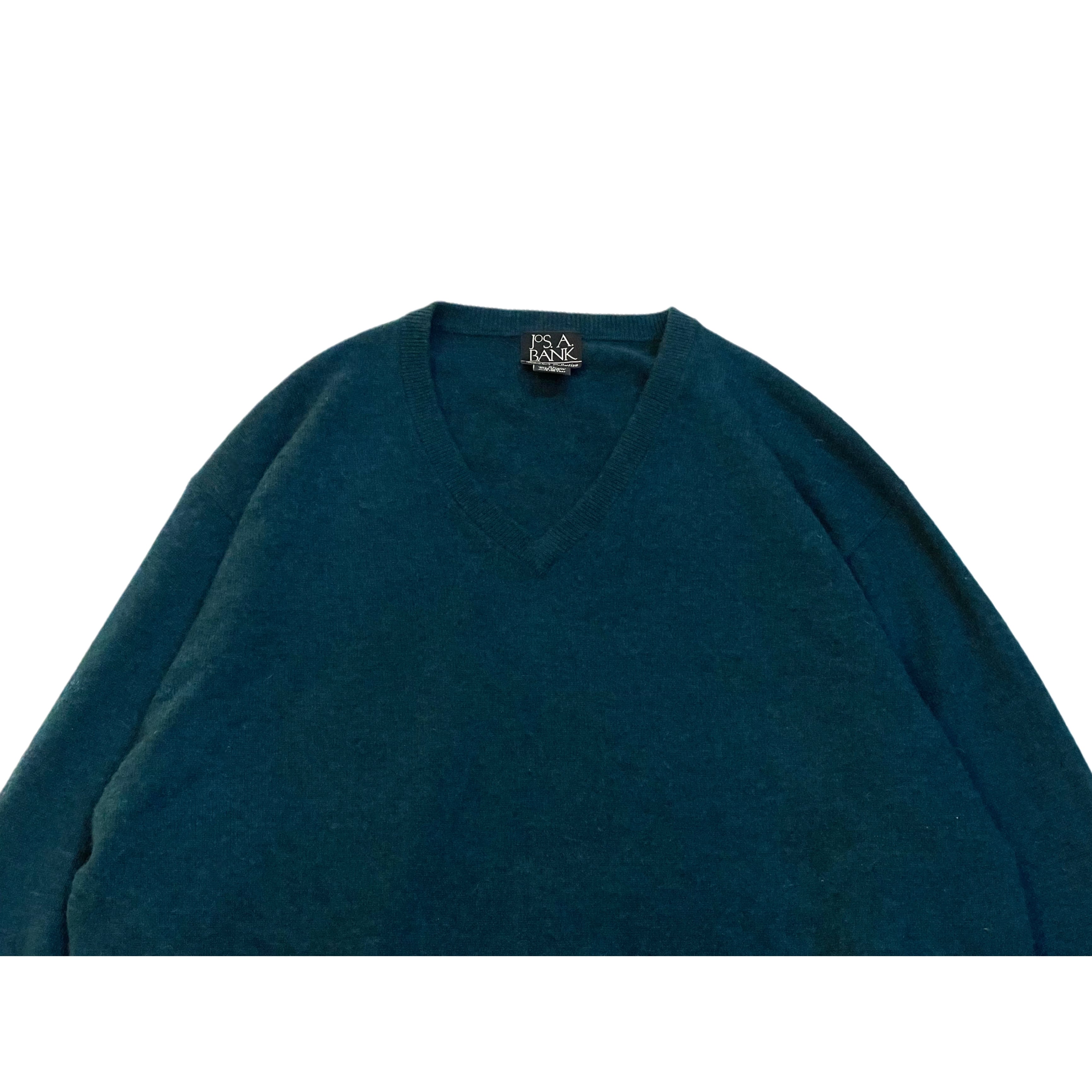Jos. A. Bank bluegreen 100% cashmere V neck pullover knit sweater