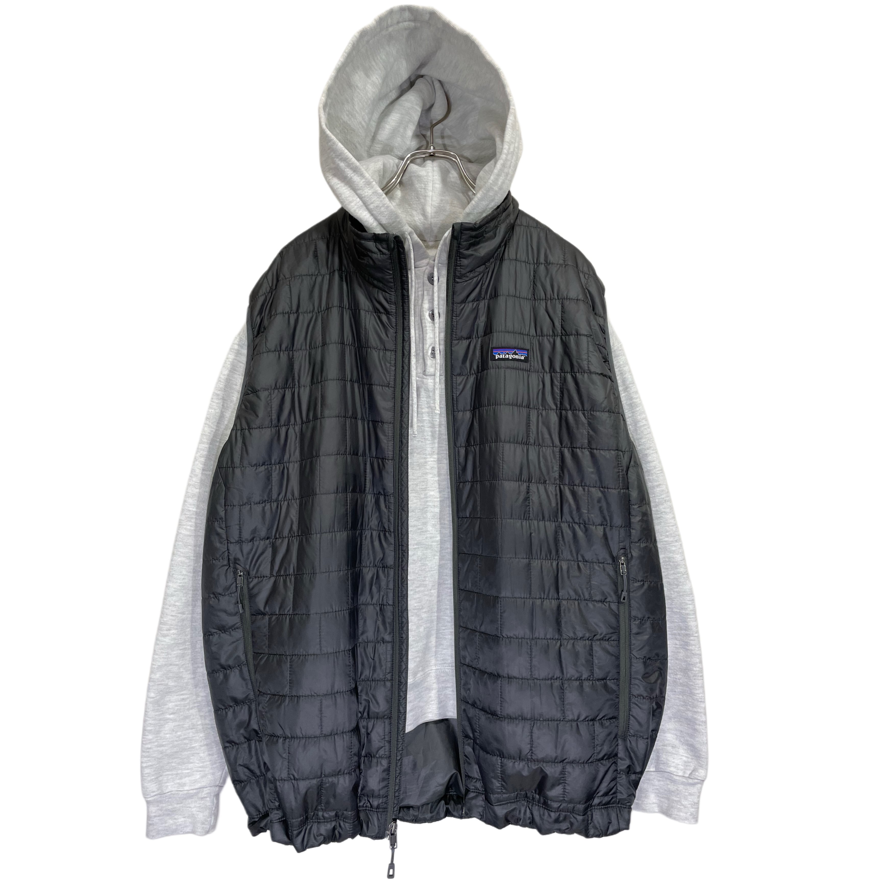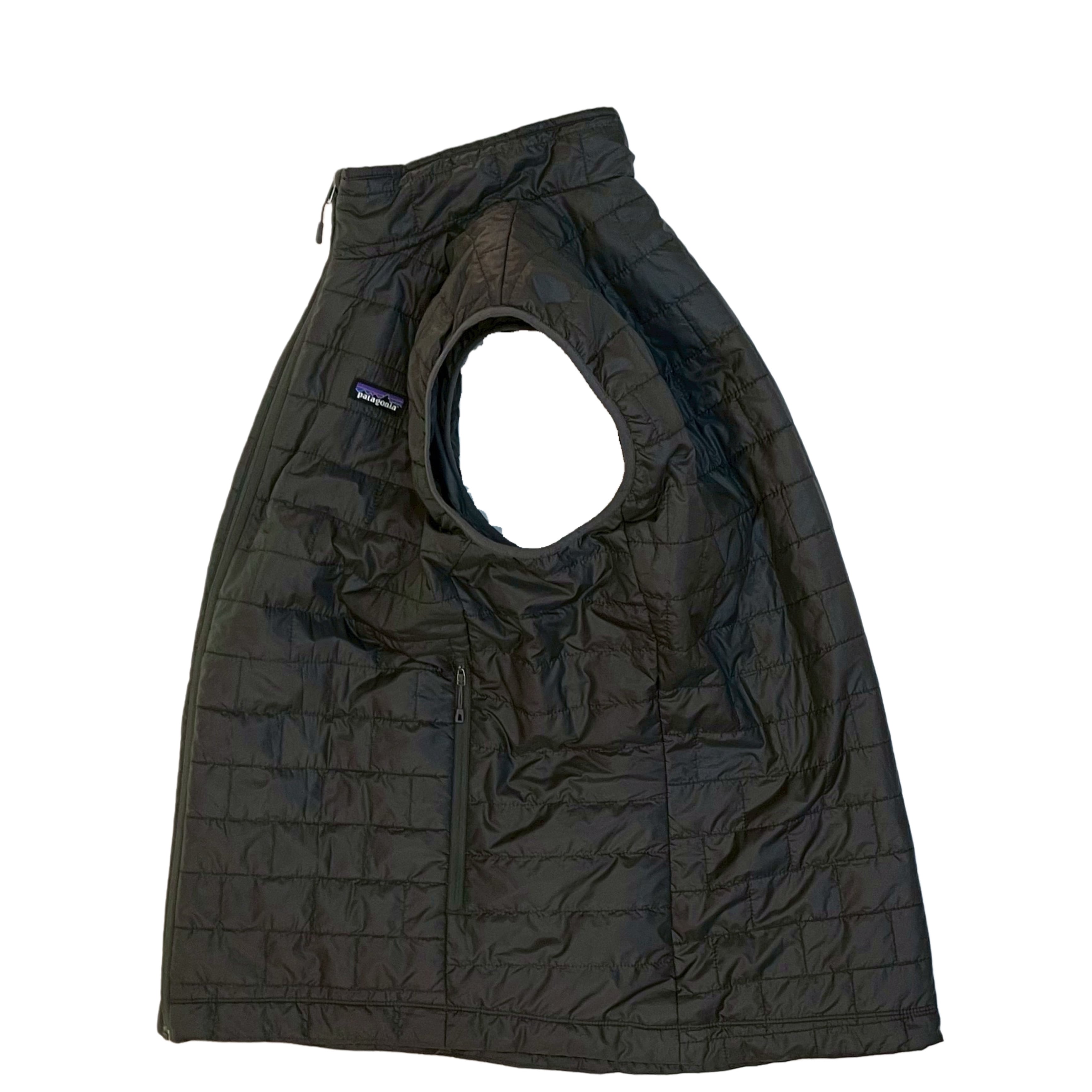 10s patagnia "nano puff vest" grey polyester primaloft insulated hi neck zip up vest