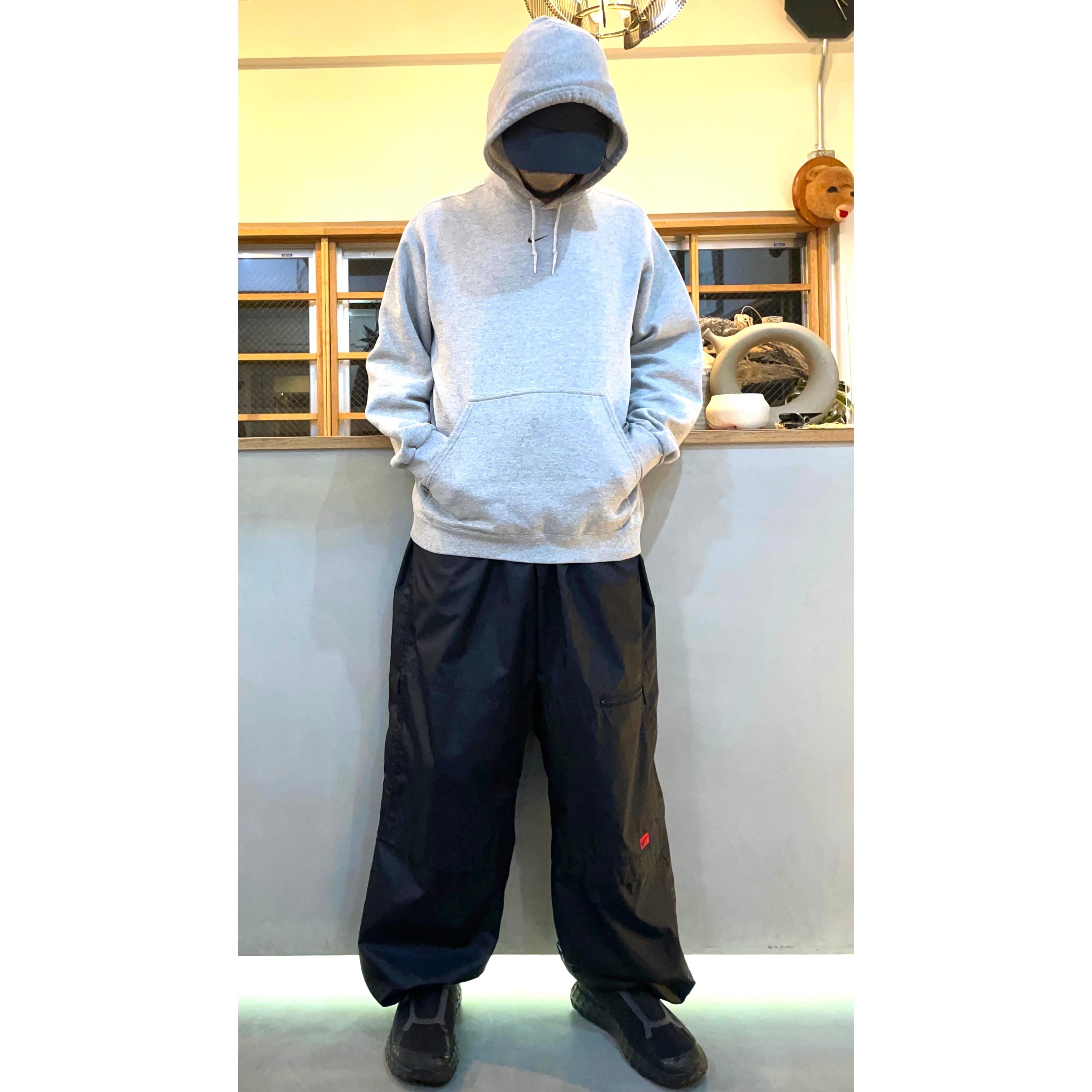 -00s NIKE heather grey cottonxpolyester center swoosh logo embroidery sweat parka
