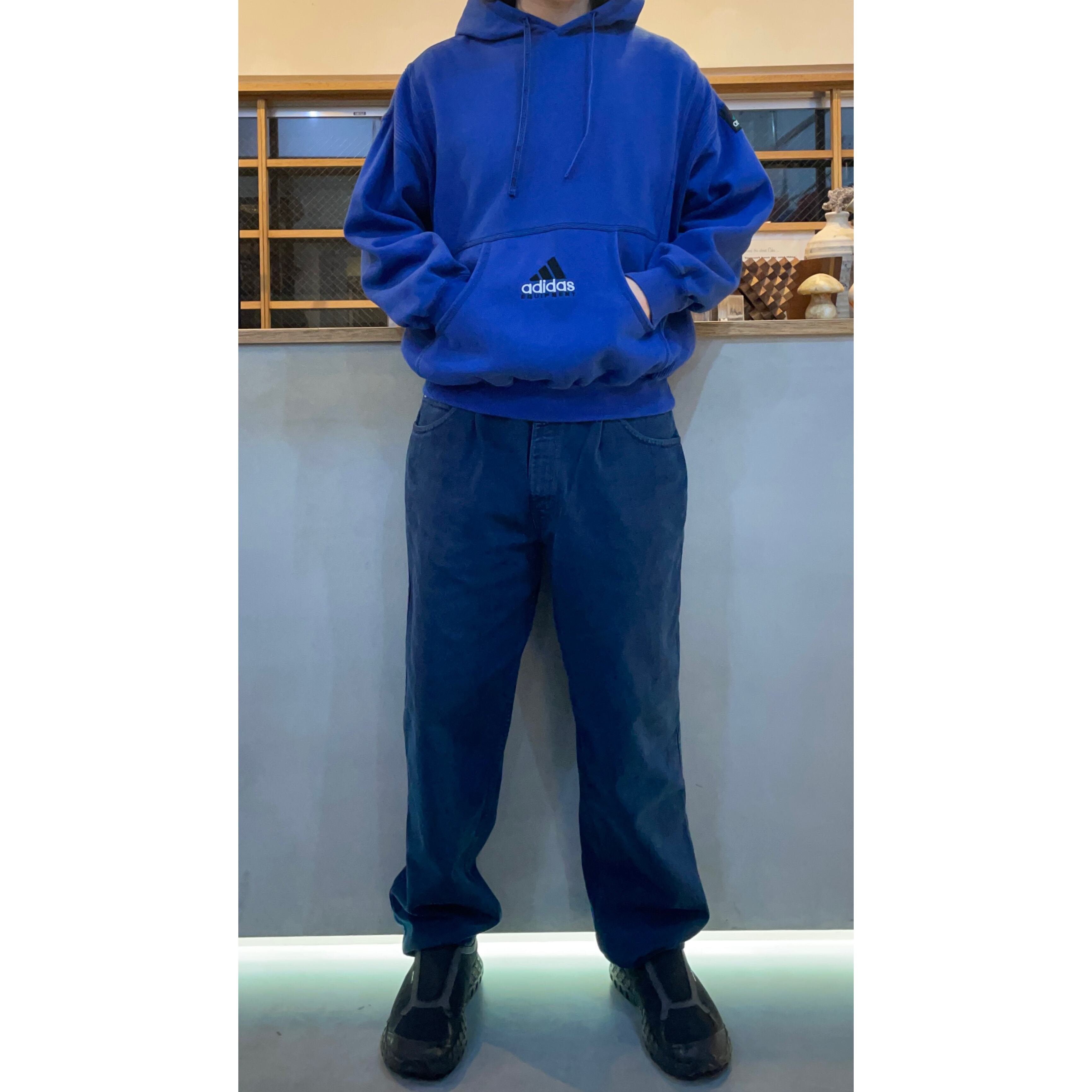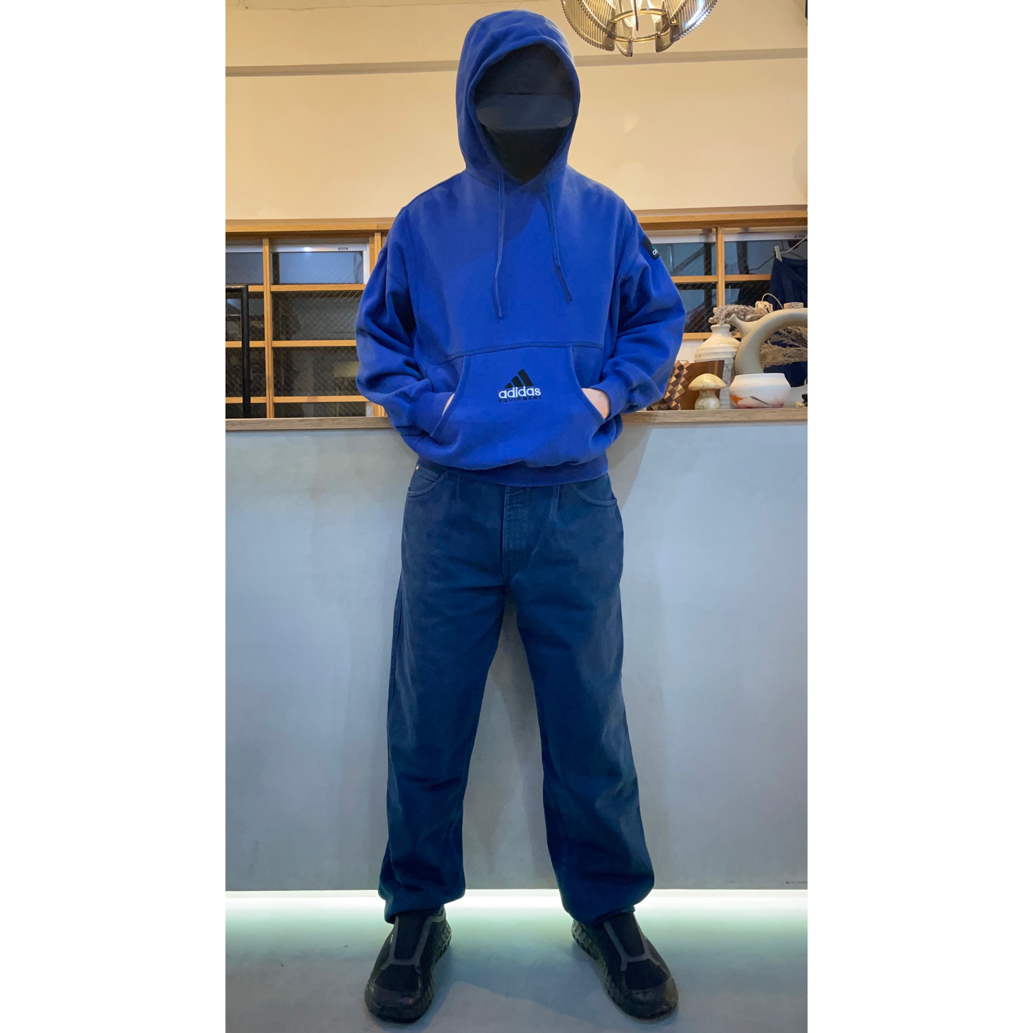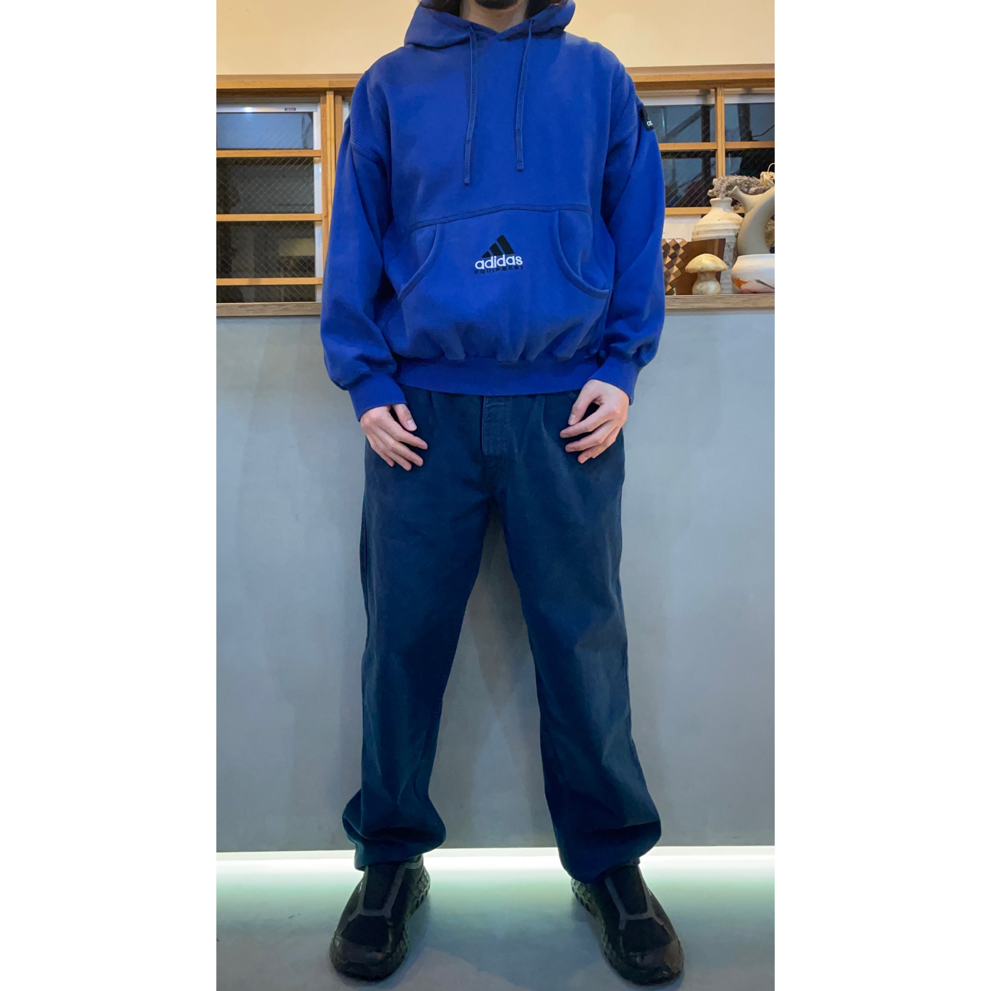 90s adidas EQUIPMENT blue cottonxpolyester performance logo embroidery and patched pullover sweat parka