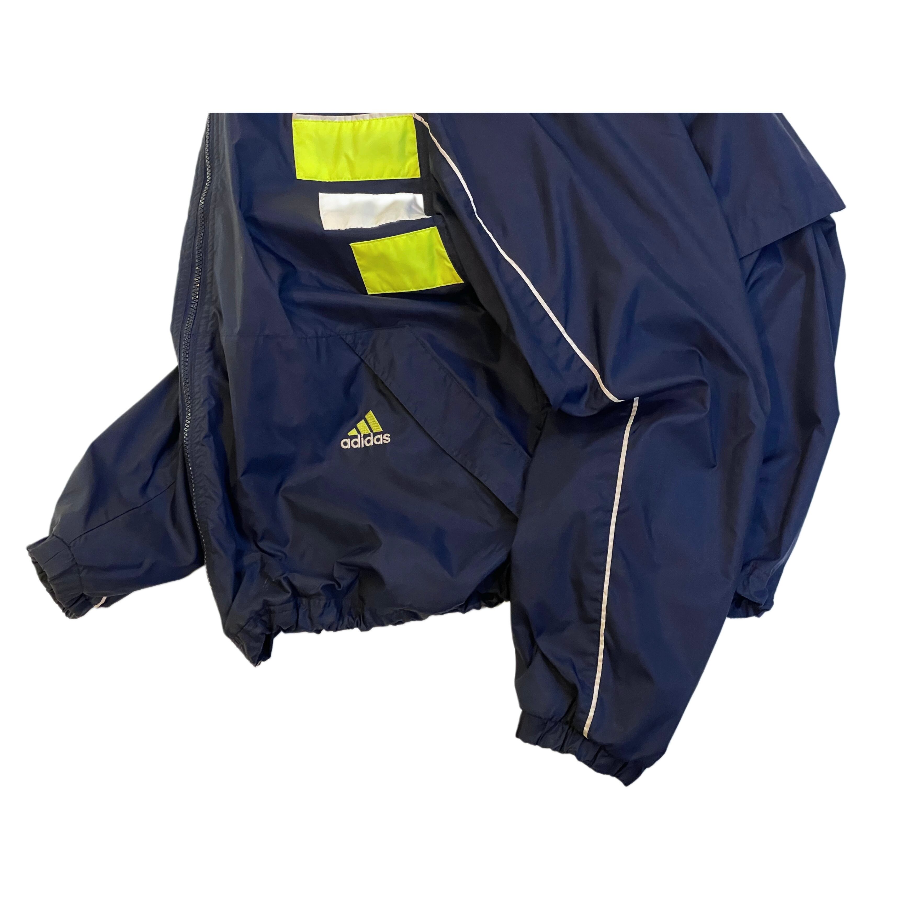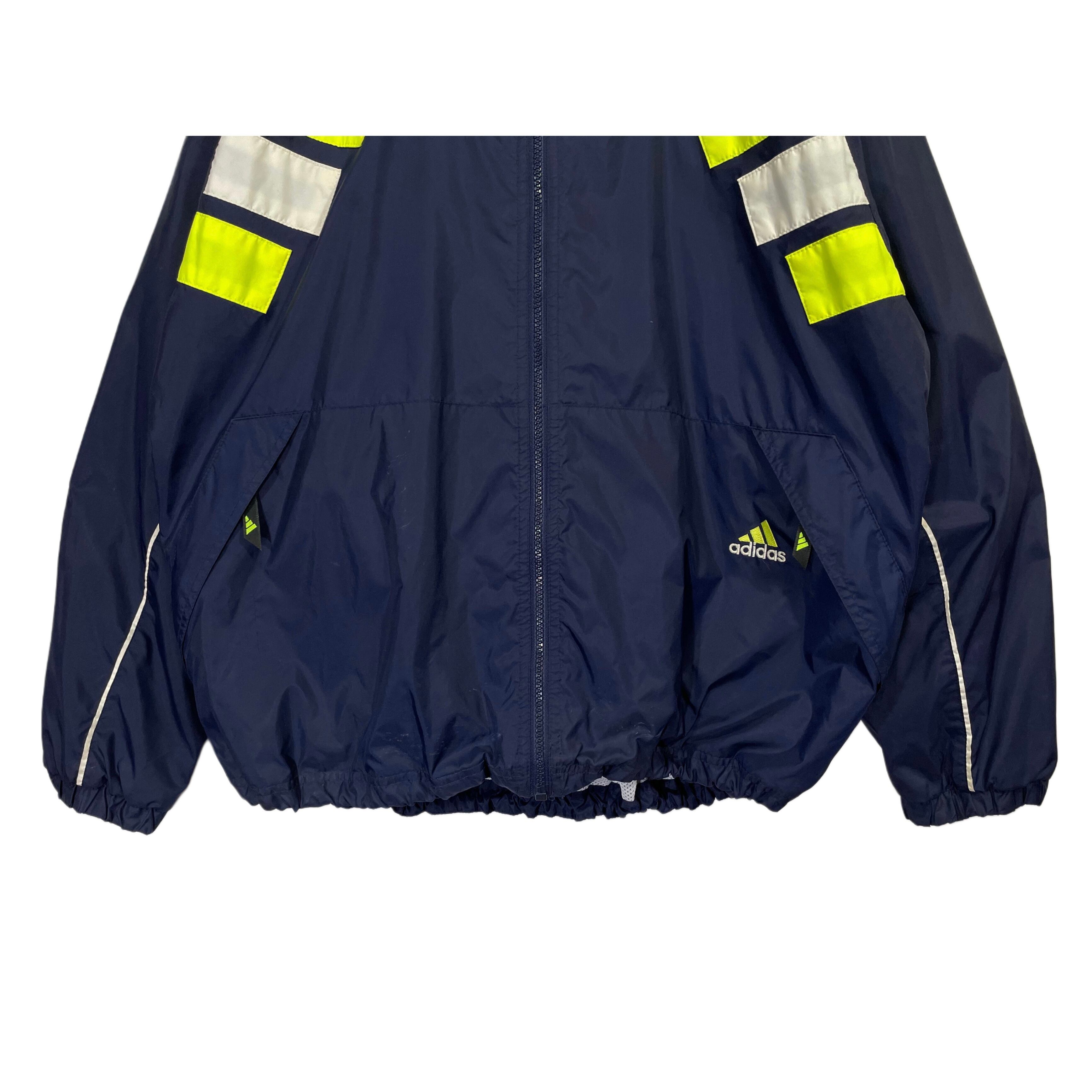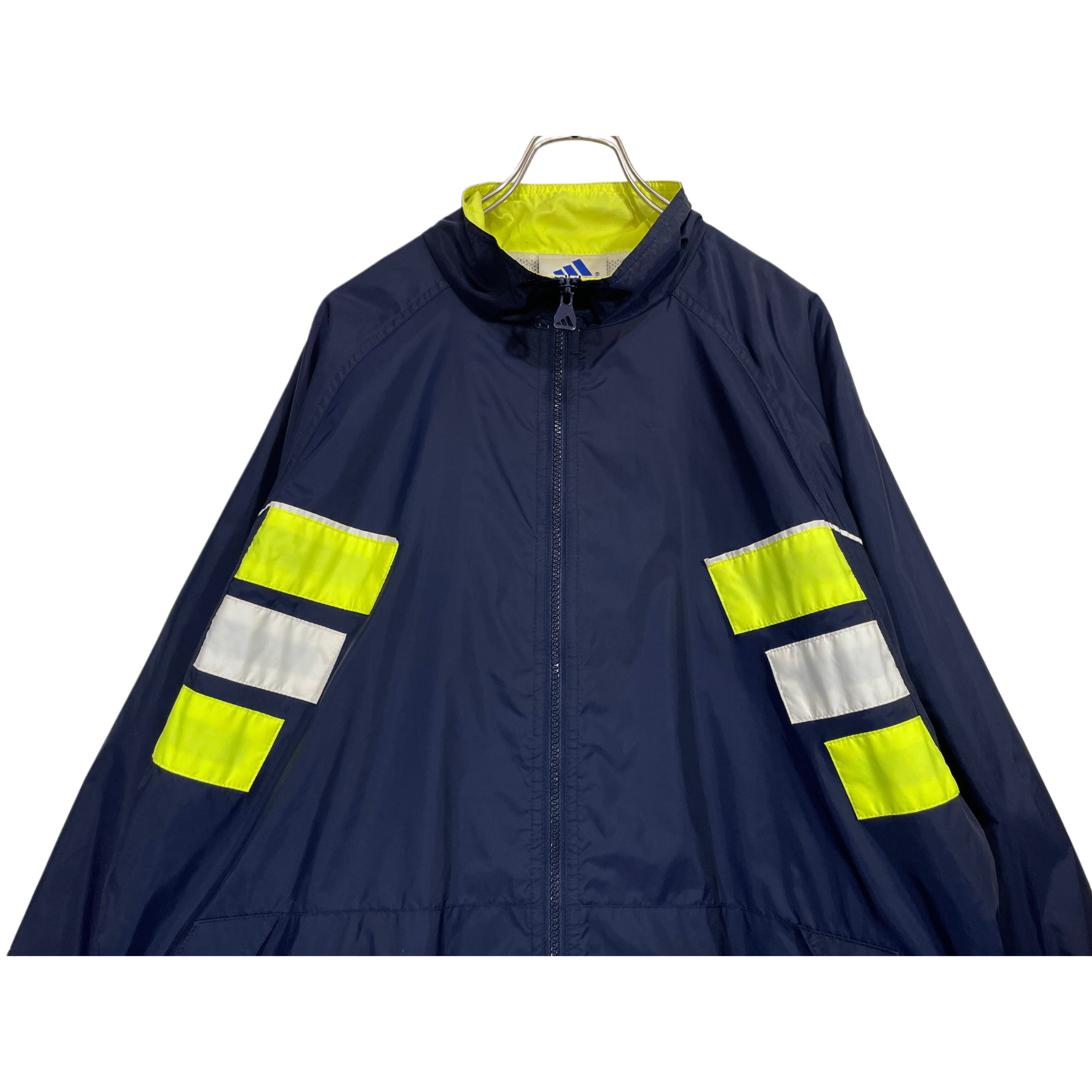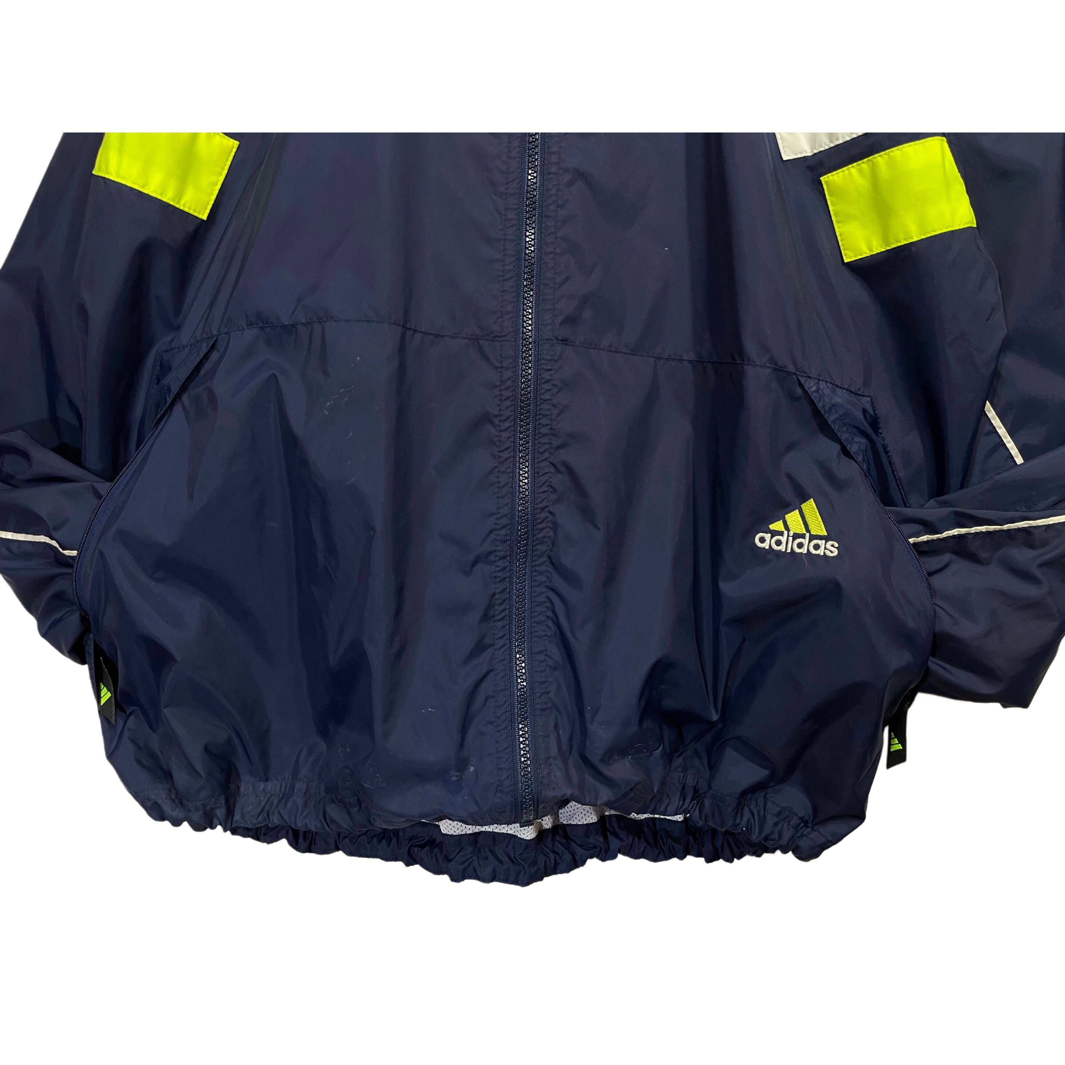 90s- adidas navy/neon yellow/white nylon parformance logo embroideried hi neck zip up jacket