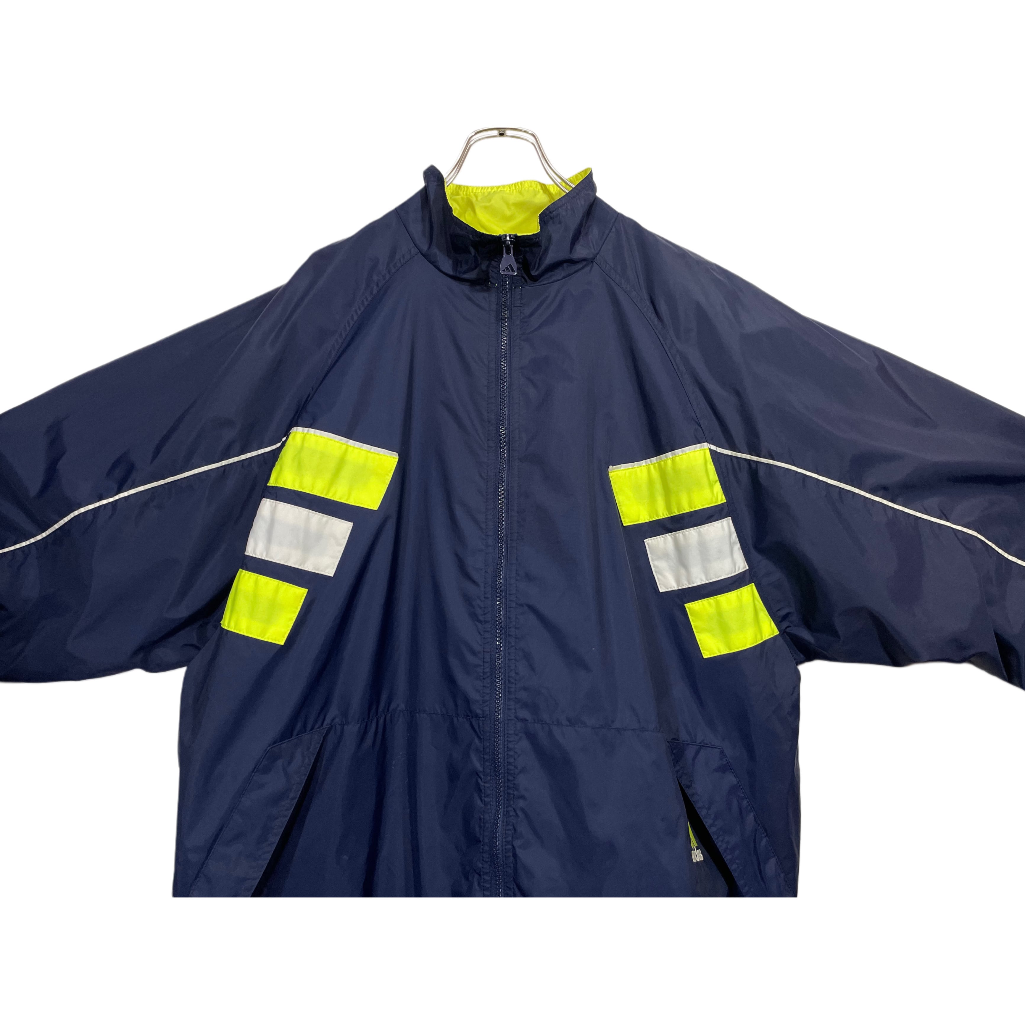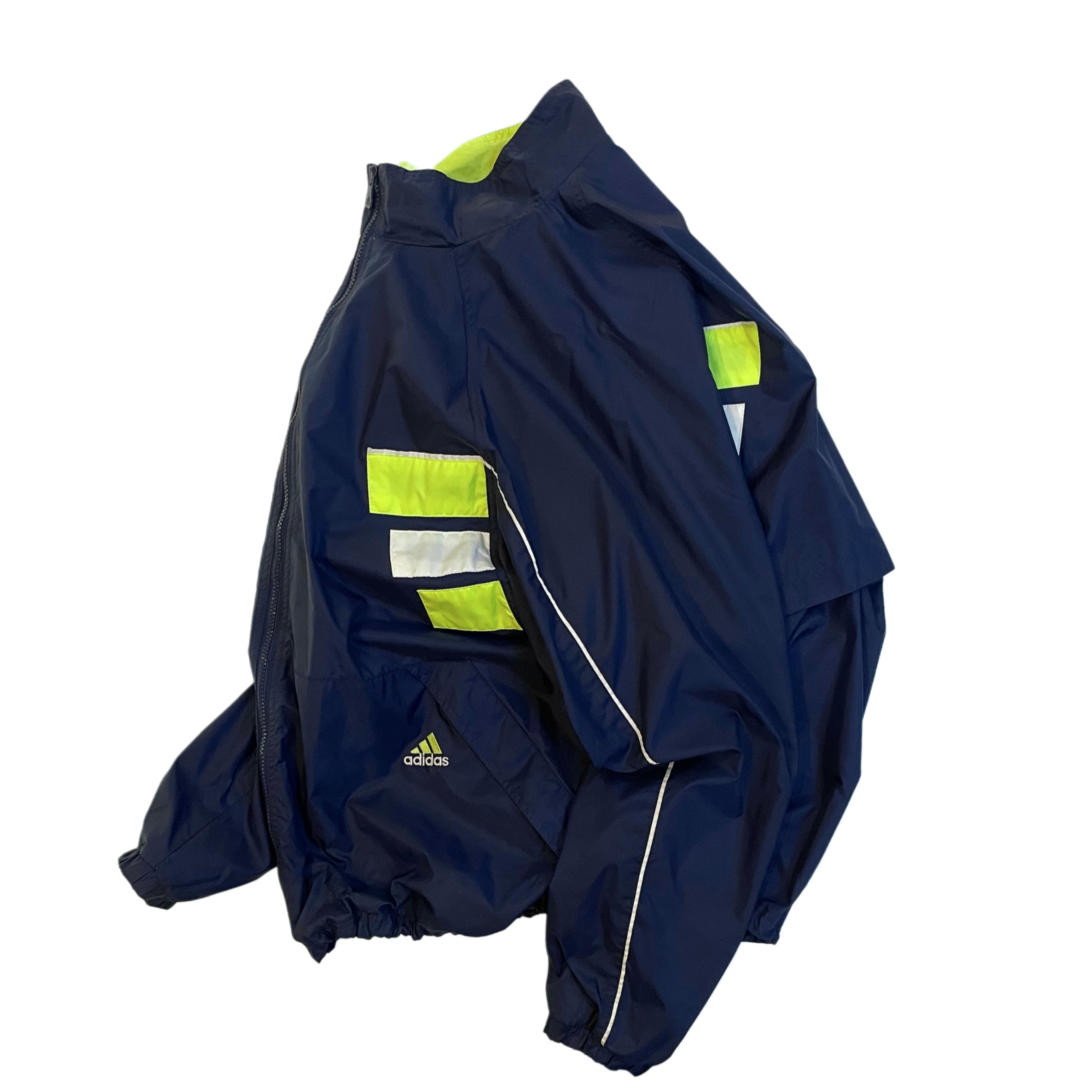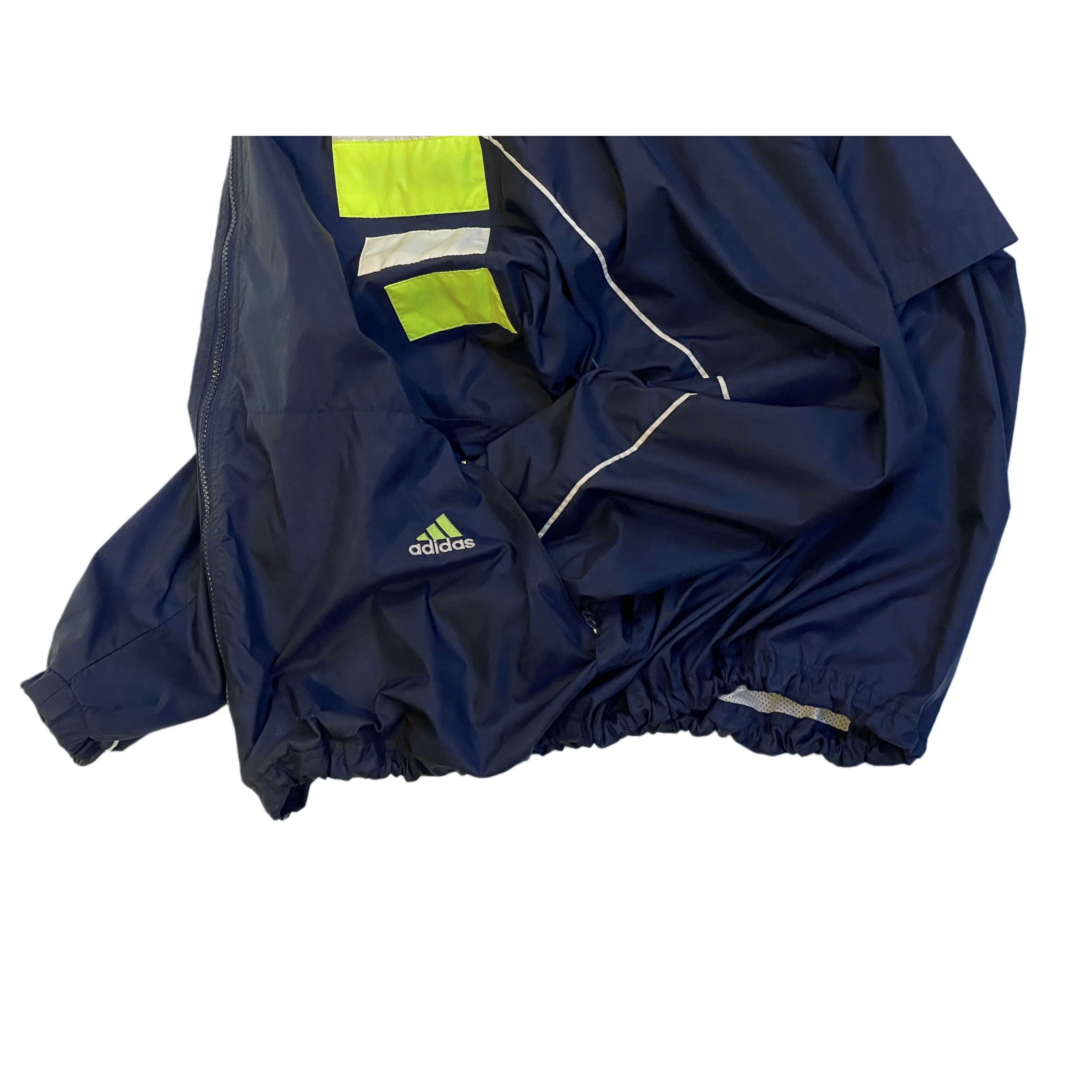 90s- adidas navy/neon yellow/white nylon parformance logo embroideried hi neck zip up jacket