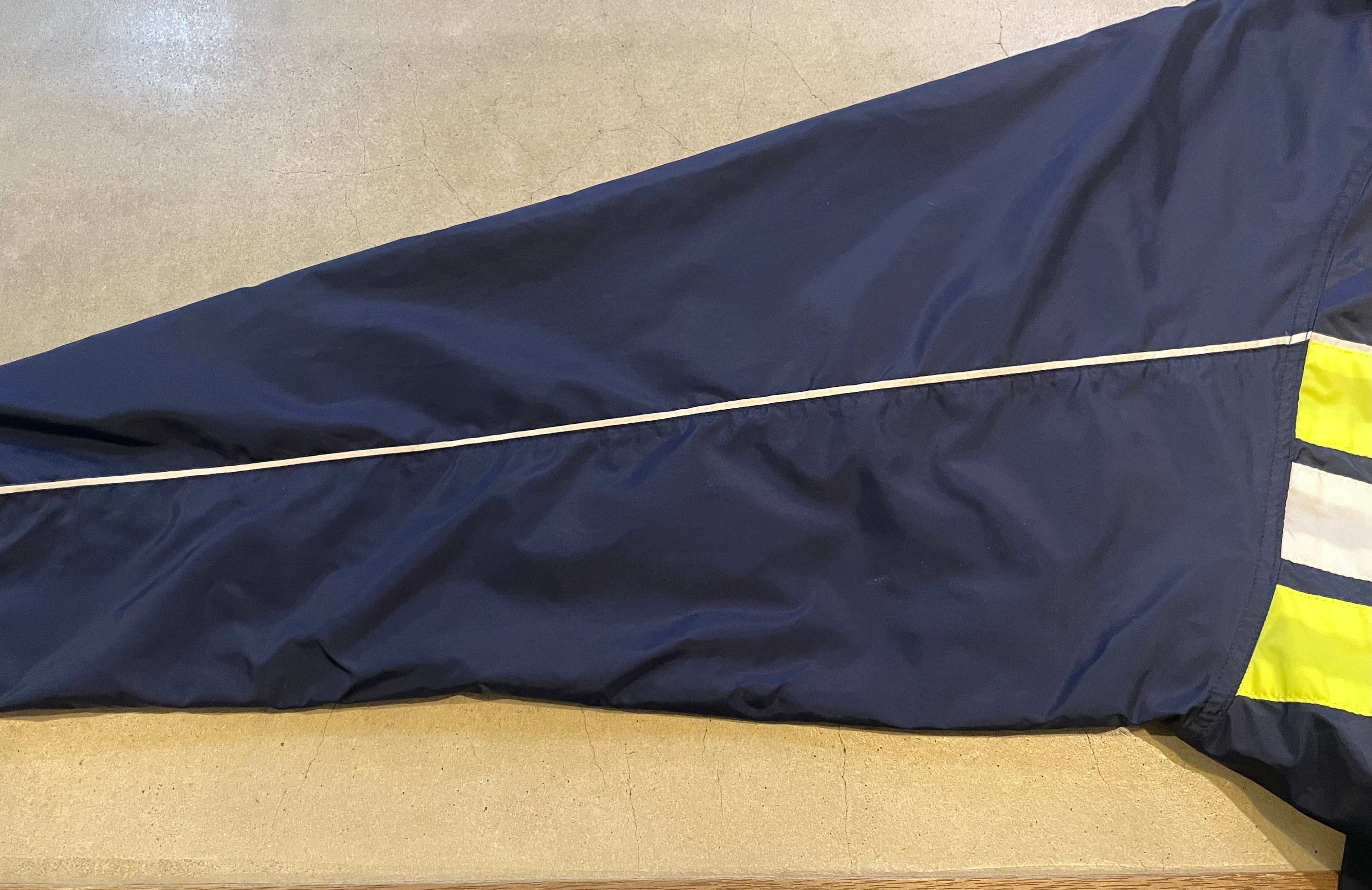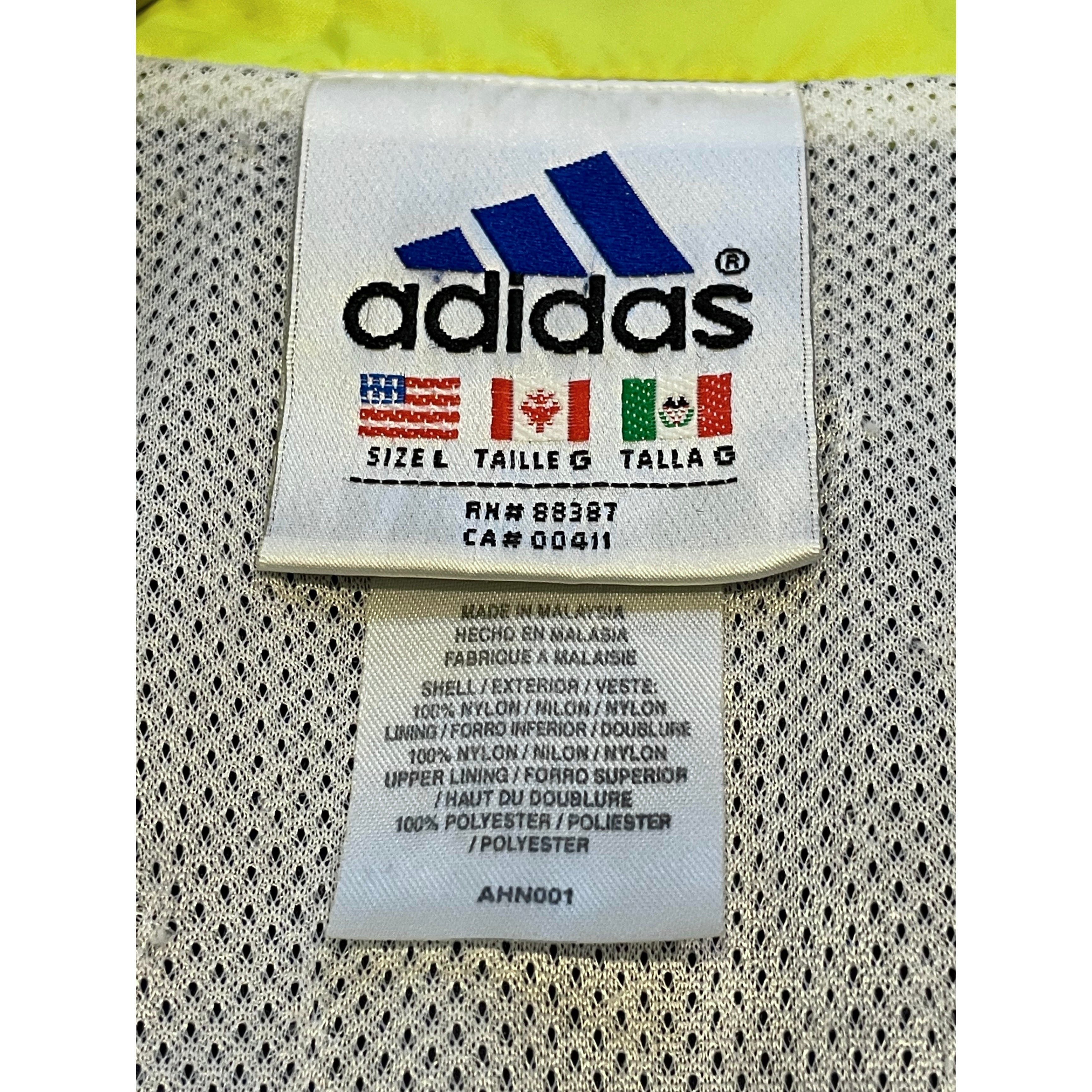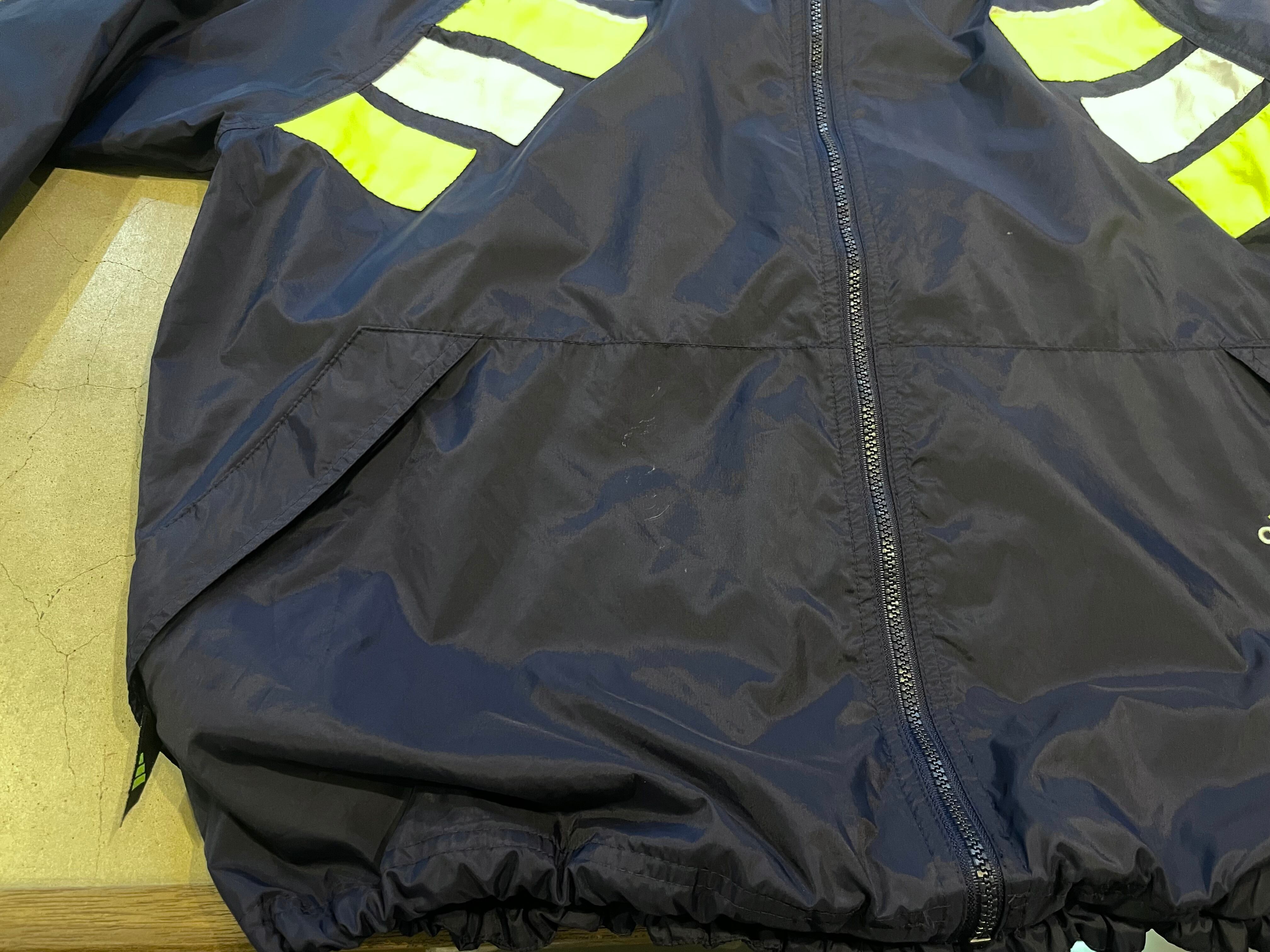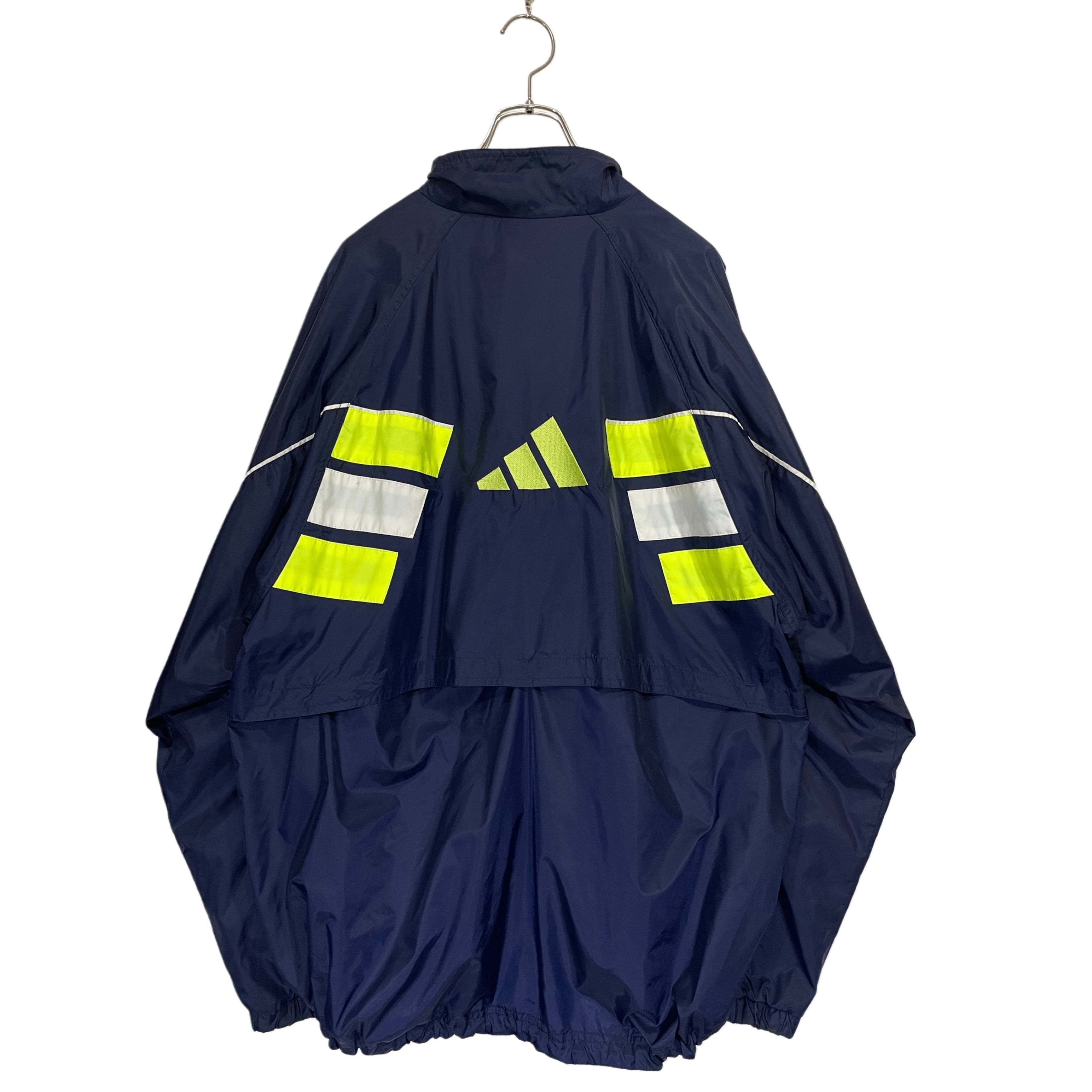 90s- adidas navy/neon yellow/white nylon parformance logo embroideried hi neck zip up jacket