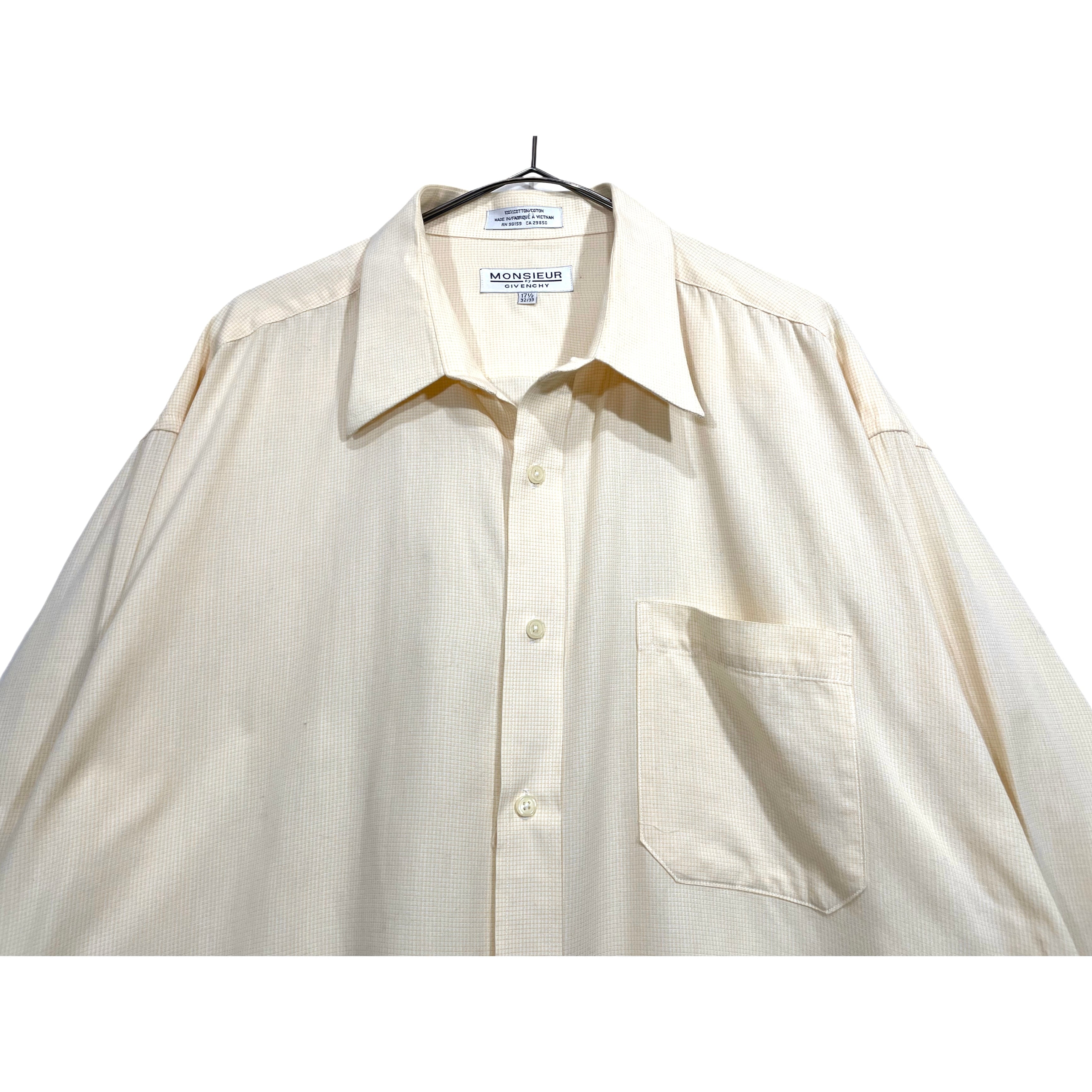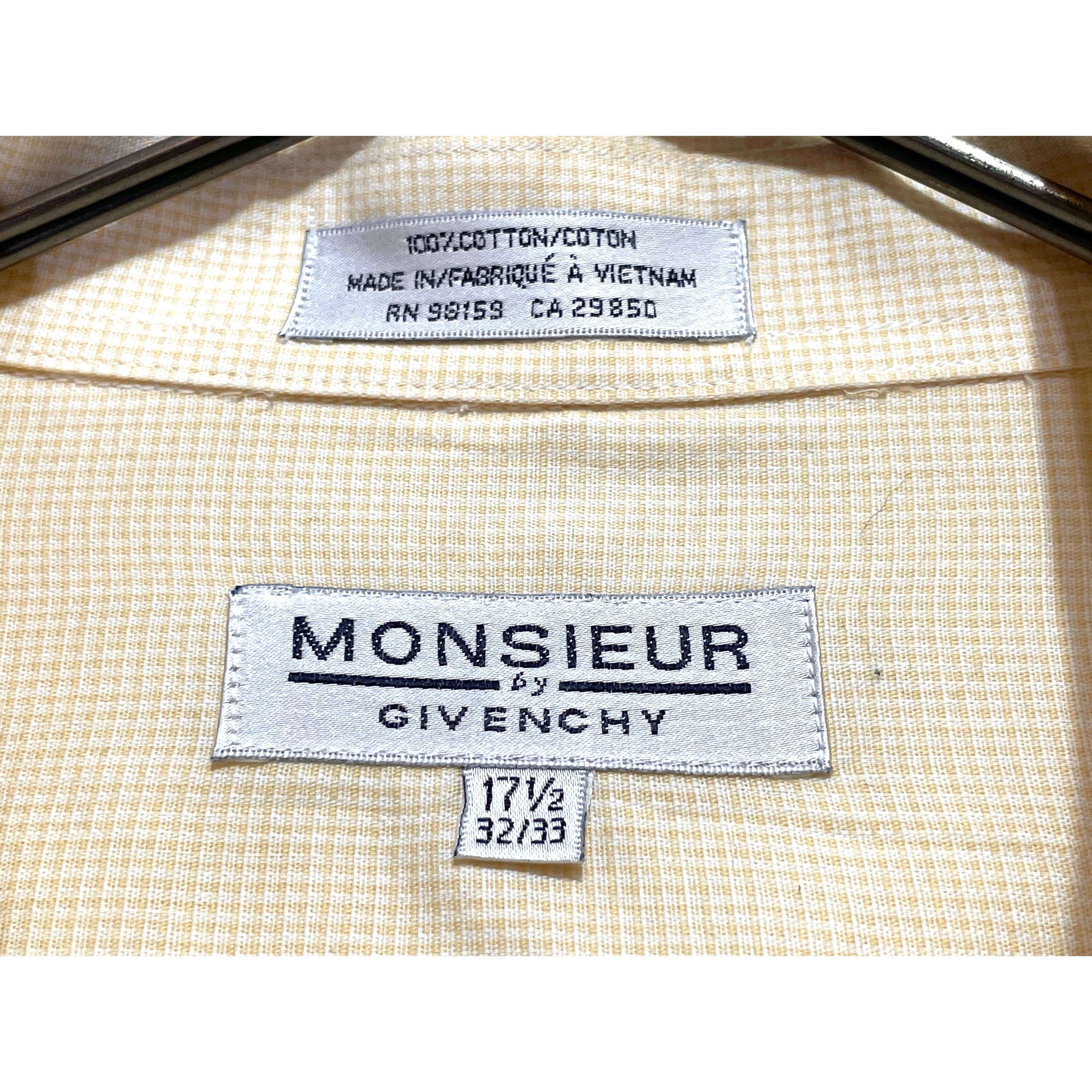 -90s GIVENCHY yellow/white plaid cotton long sleeve dress shirt