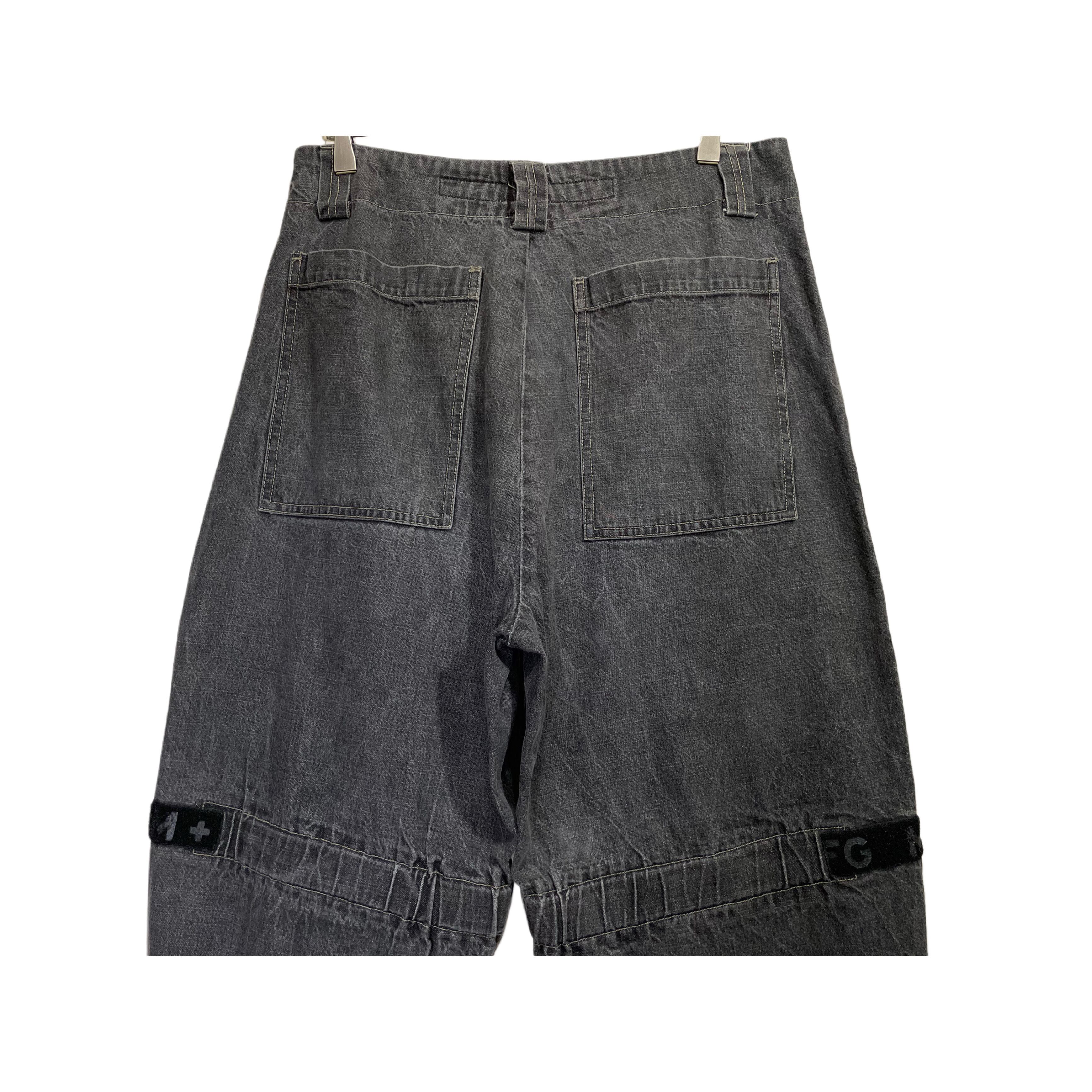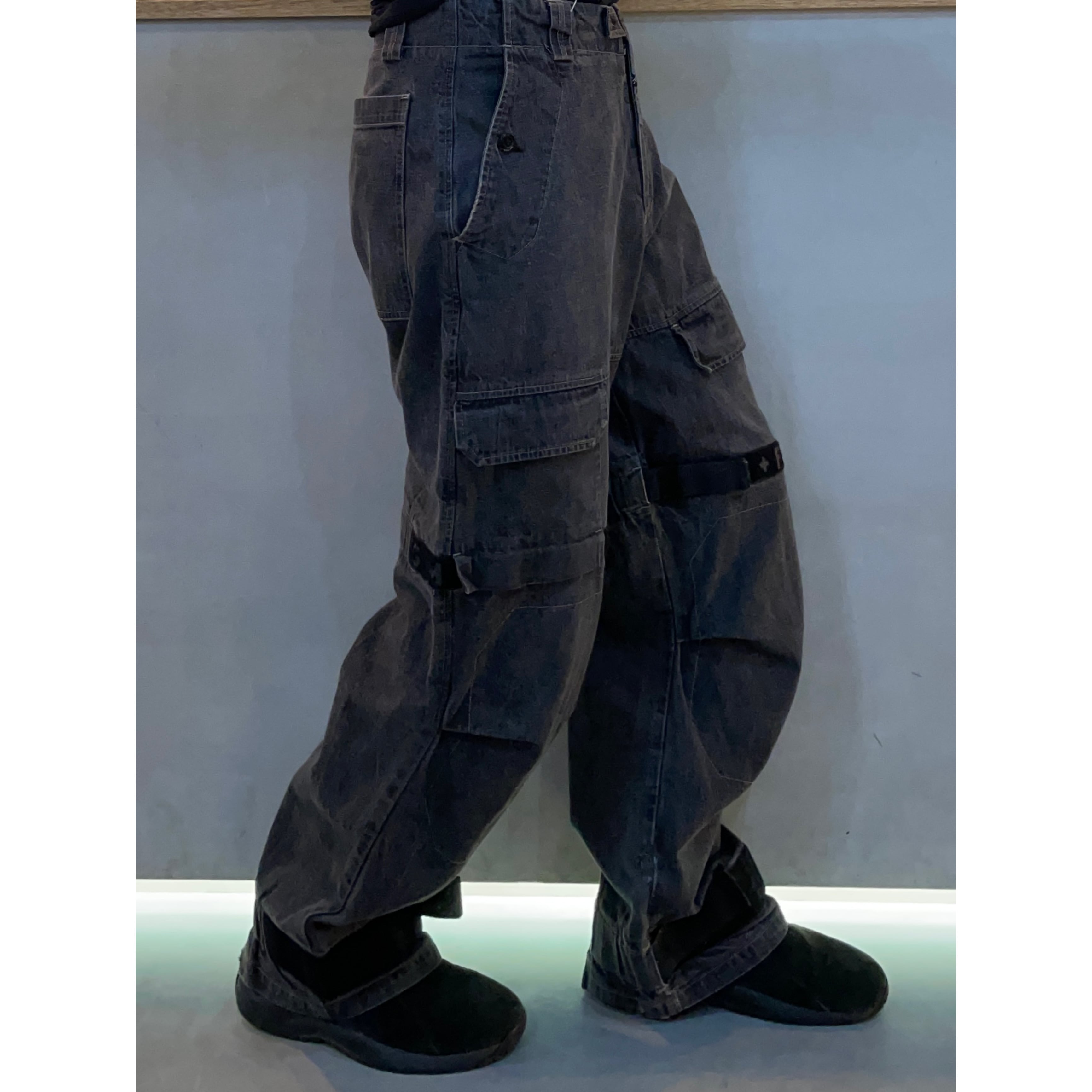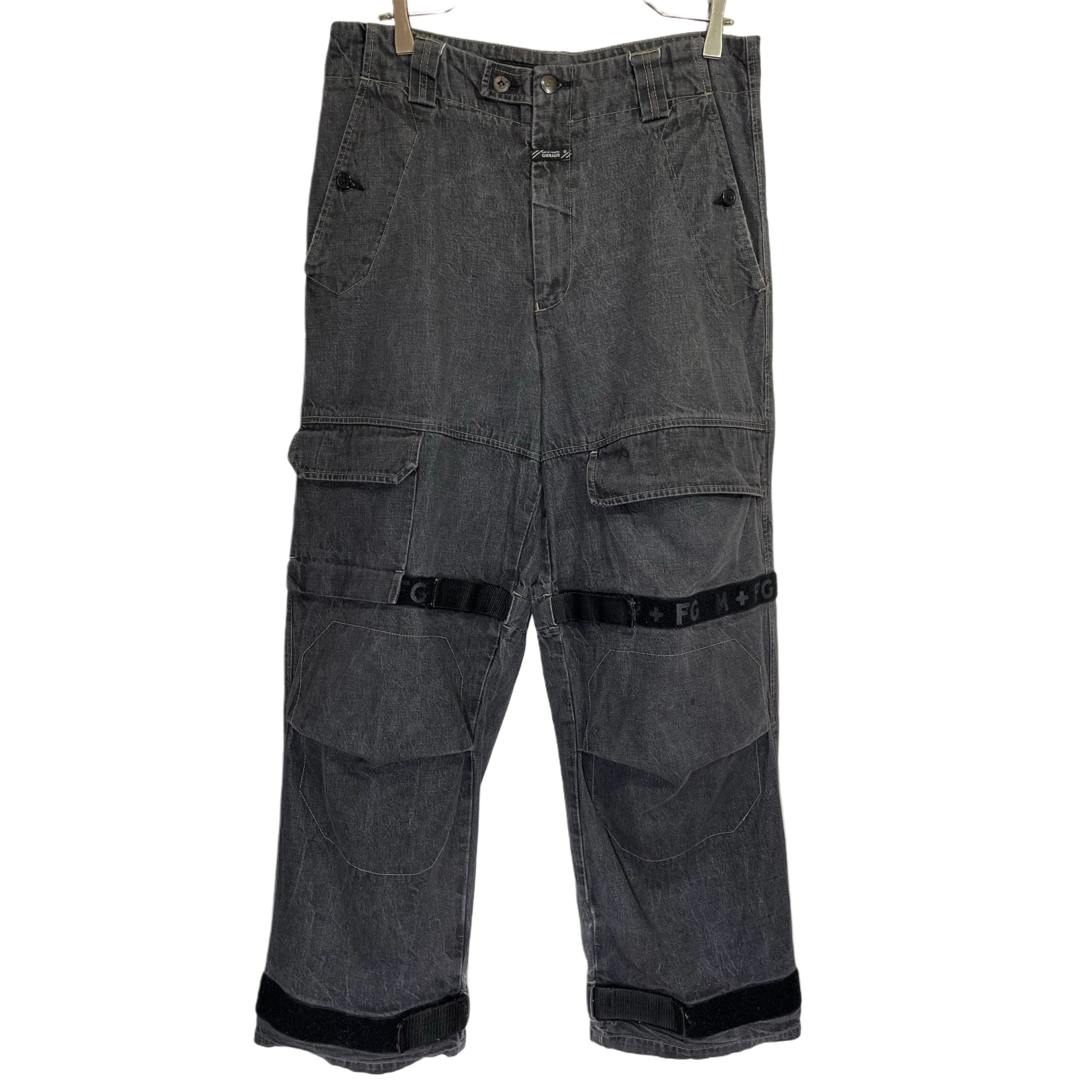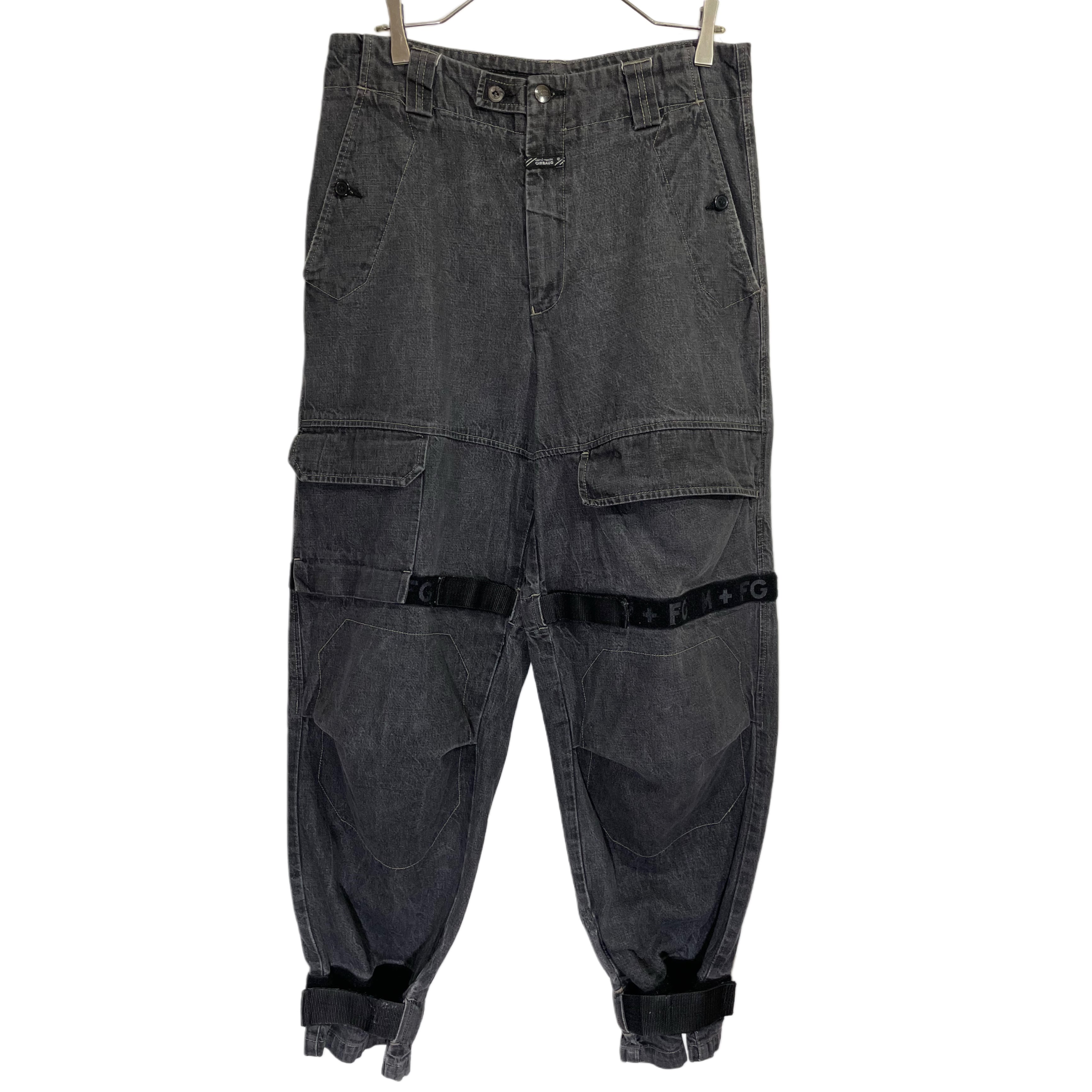90-00s Marithé François Girbaud "shuttle denim pants" black cotton yern dyed denim velcro detail buggy cargo pants