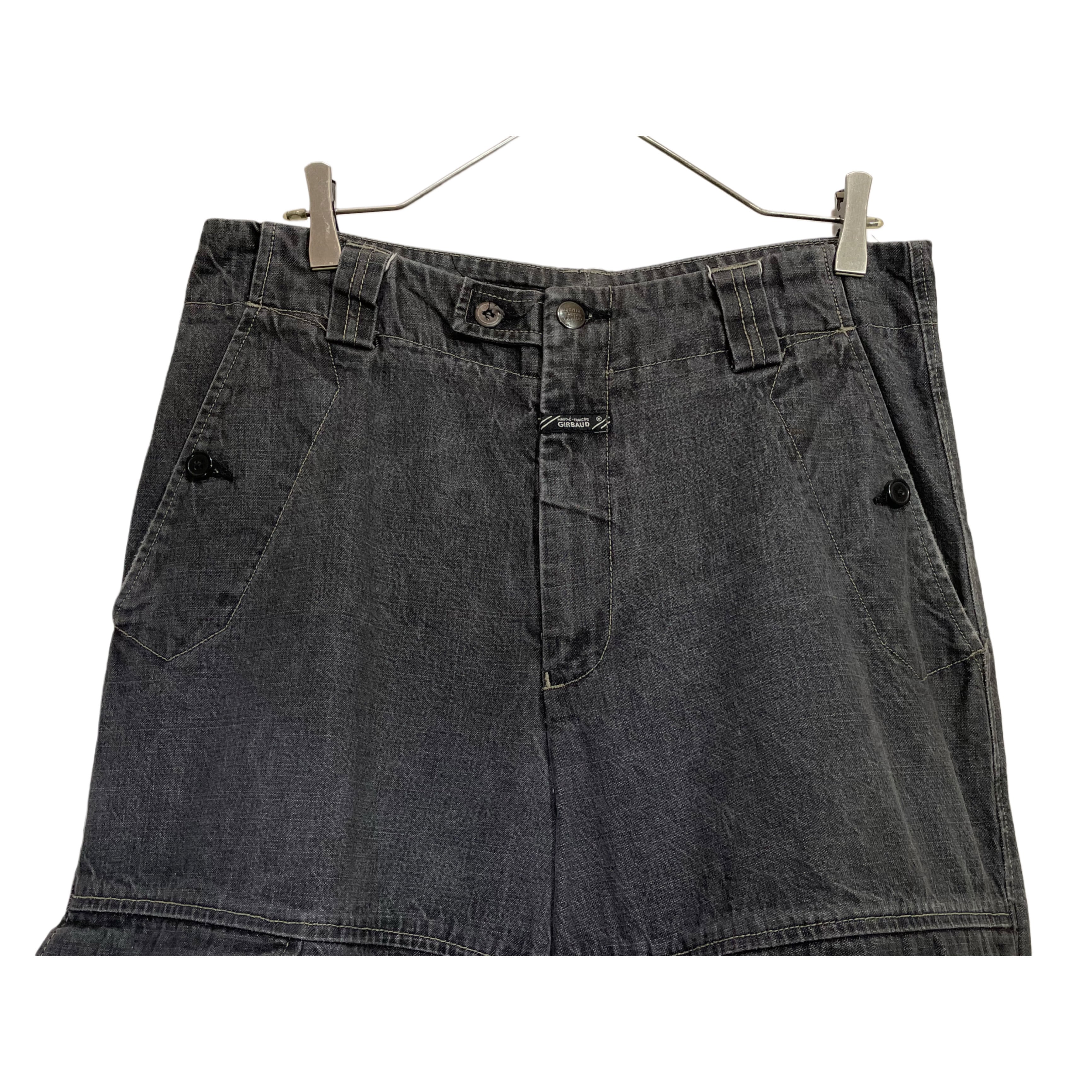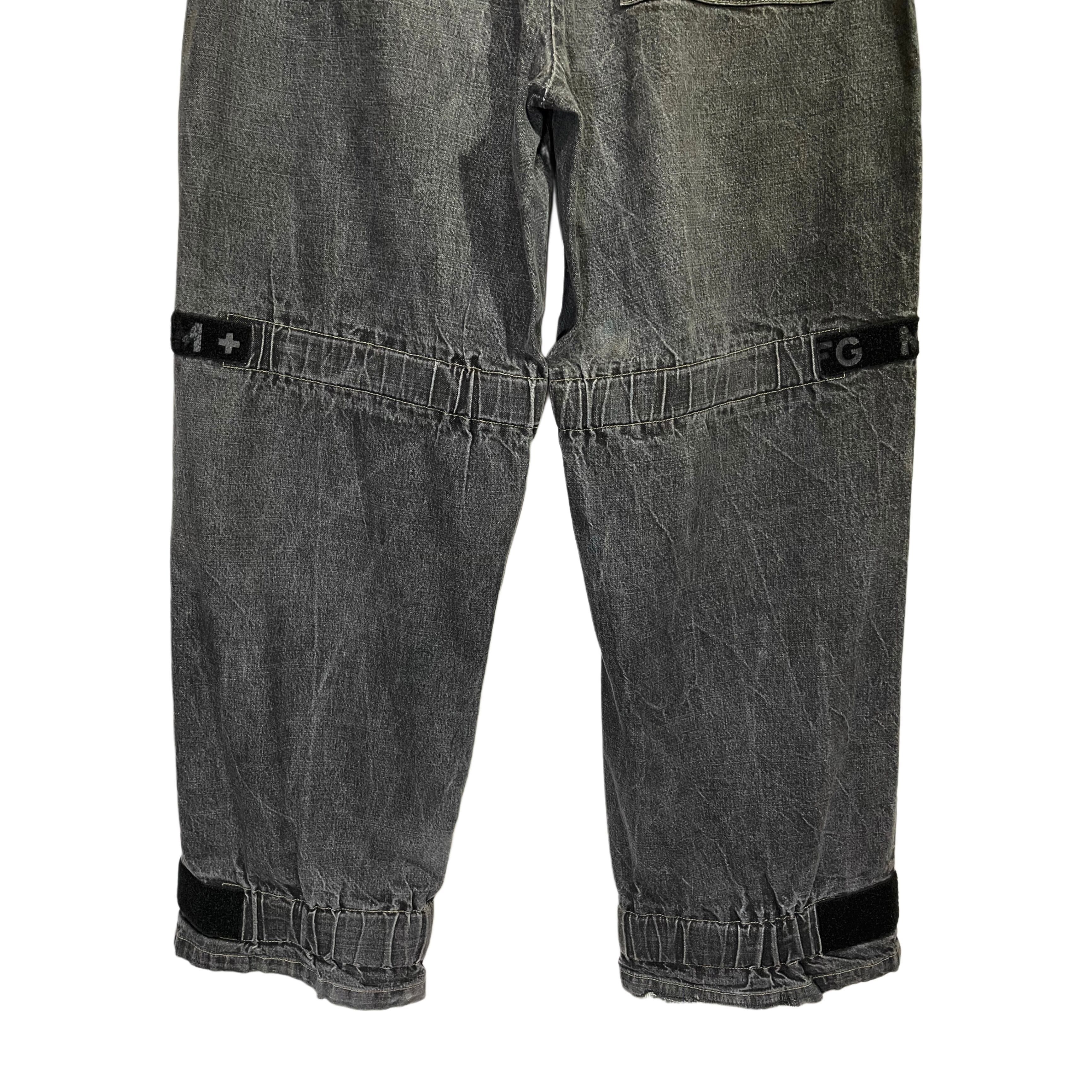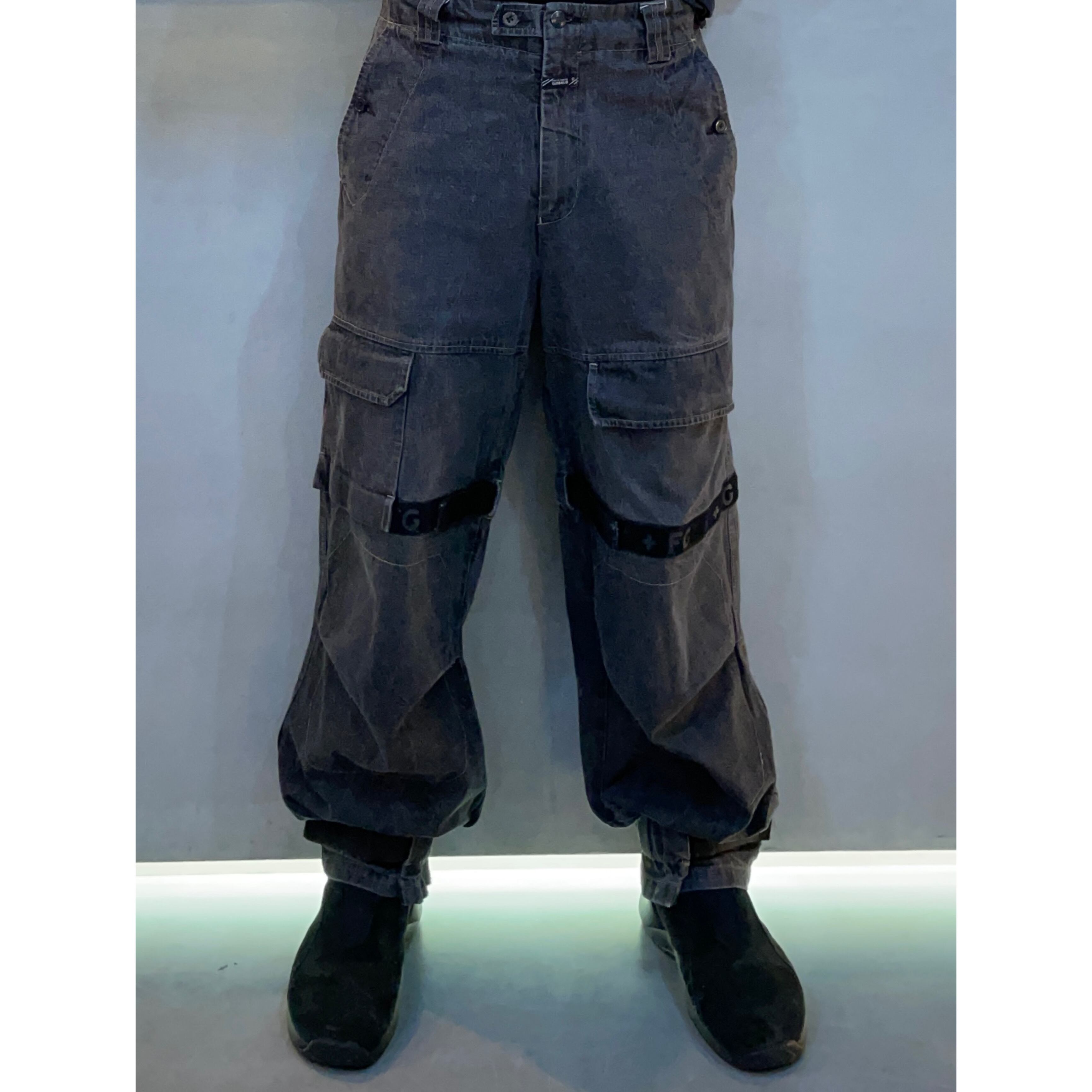 90-00s Marithé François Girbaud "shuttle denim pants" black cotton yern dyed denim velcro detail buggy cargo pants